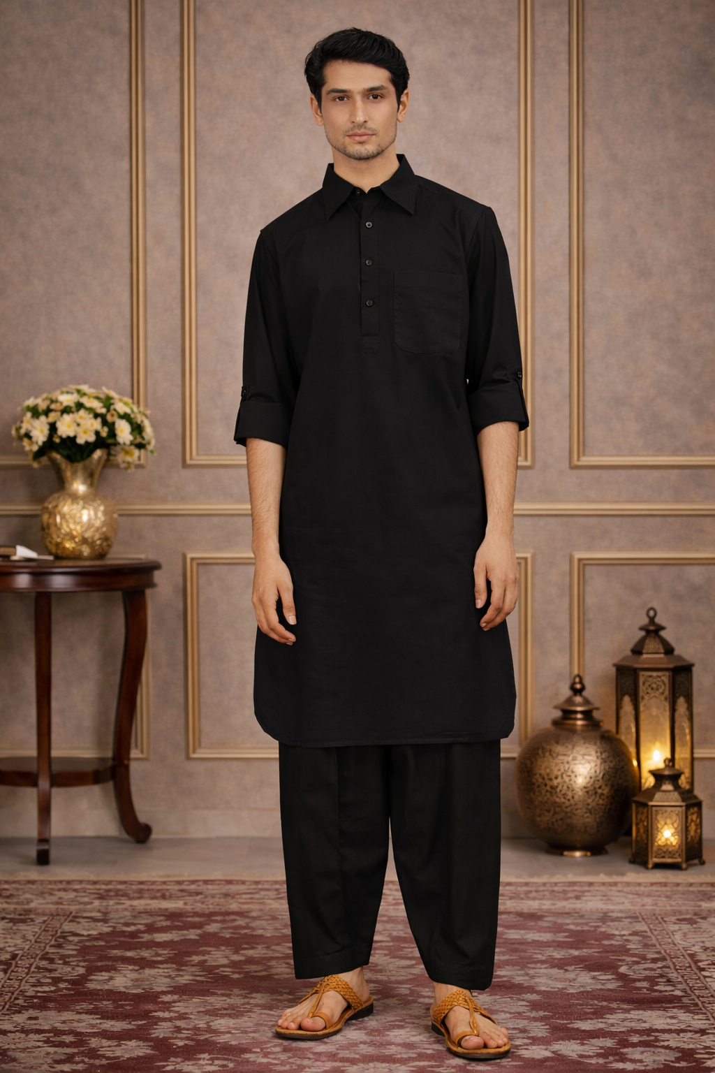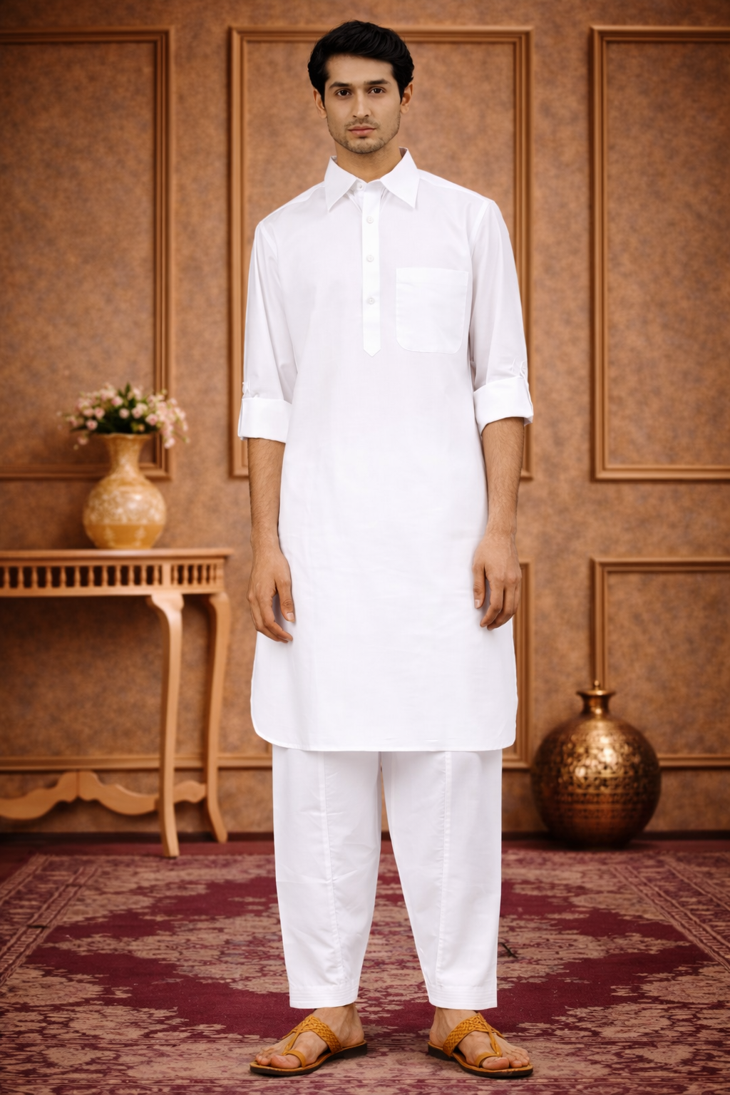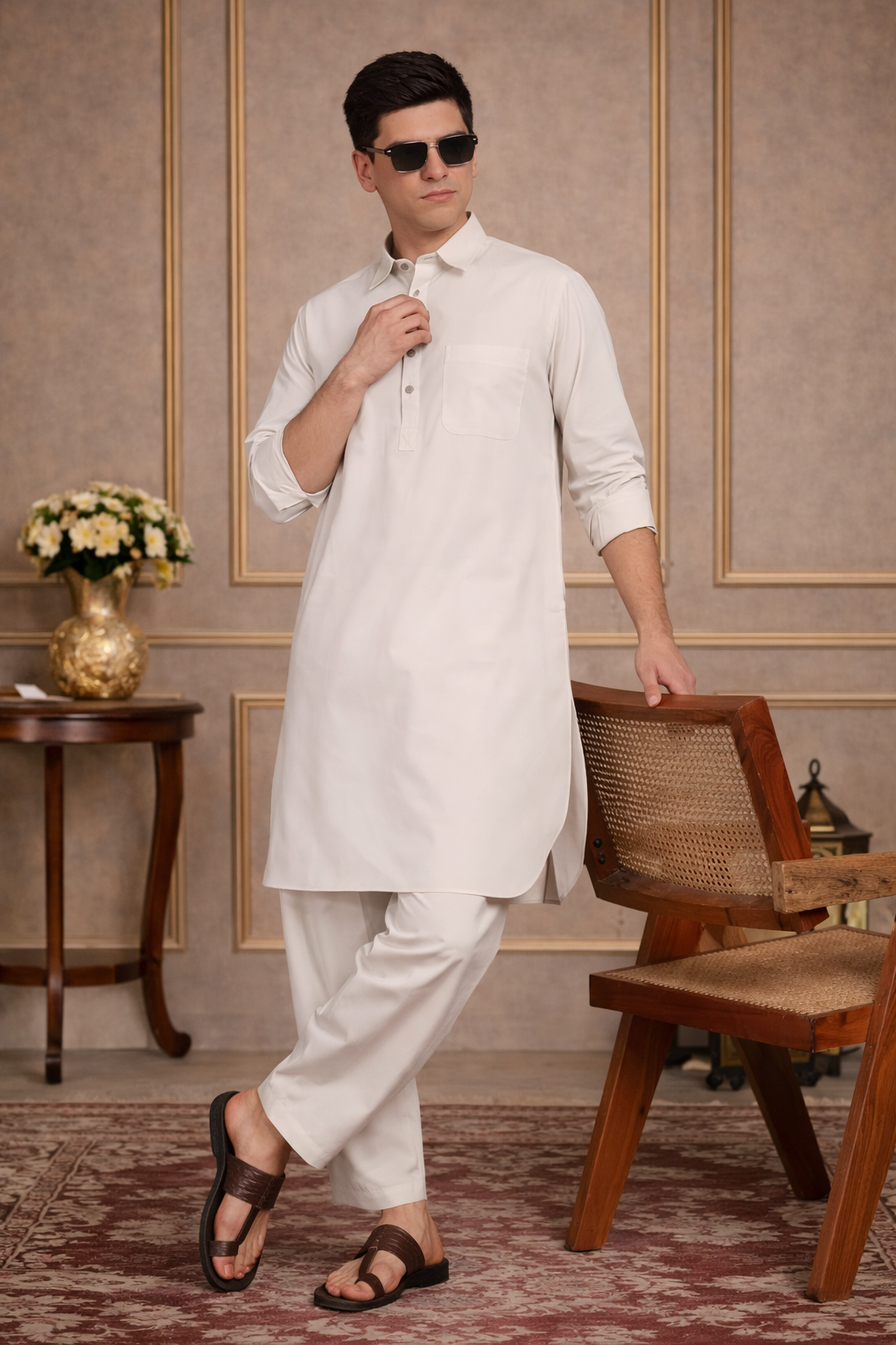 FM - Beige Cotton Linen Pathani kurta with Salwar