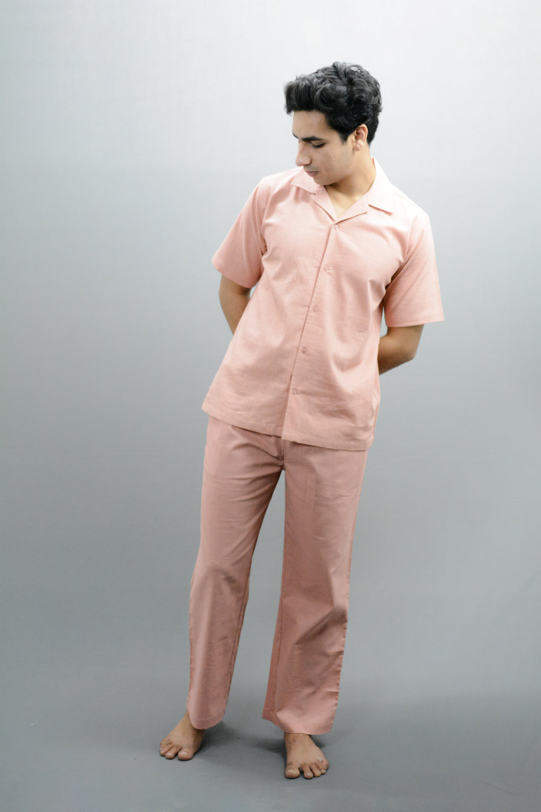 Men’s Cotton-Linen V - Co-ord Set – Peach