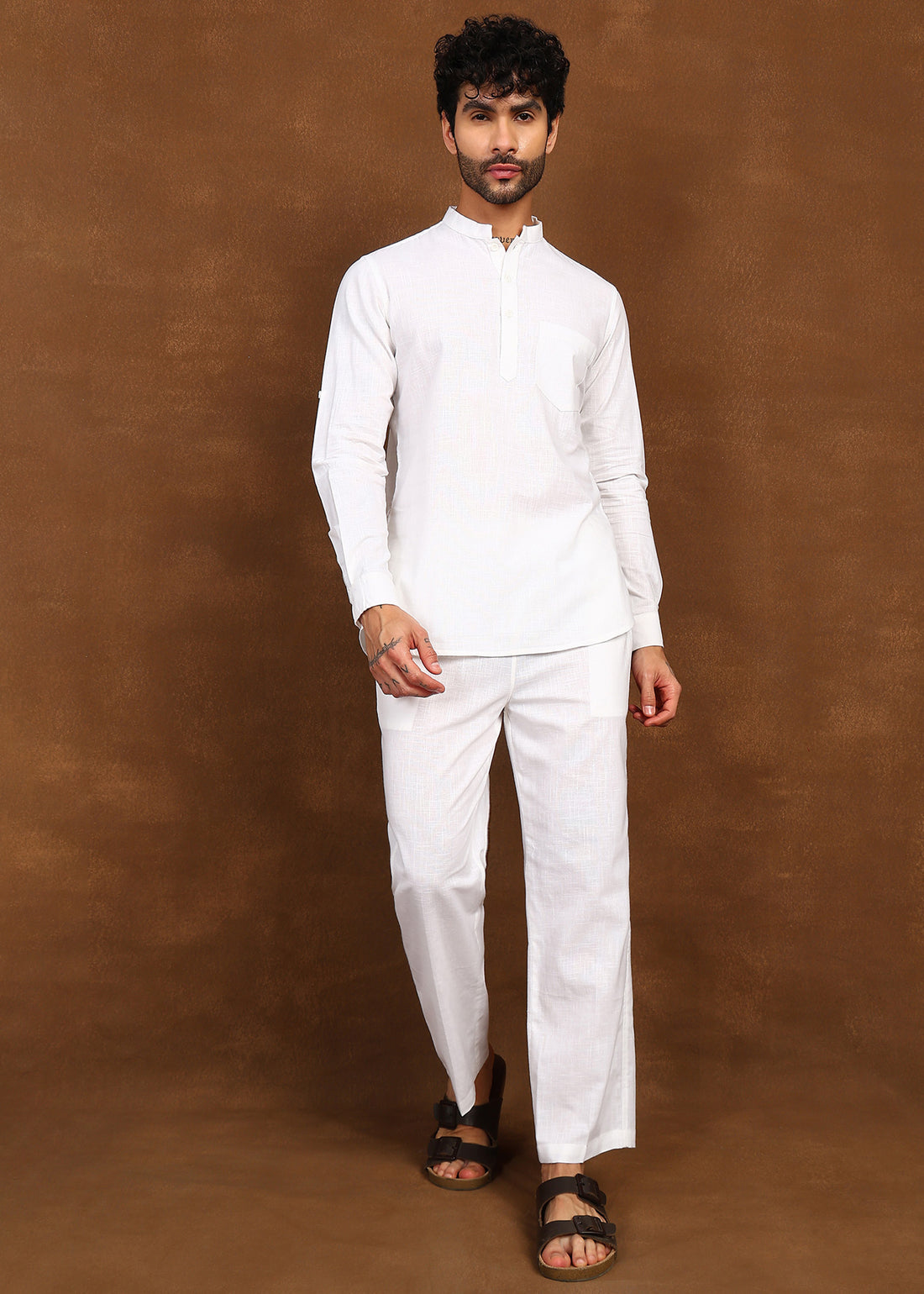 Fabmade Ivory Ease Linen Short Kurta Co-Ord Set
