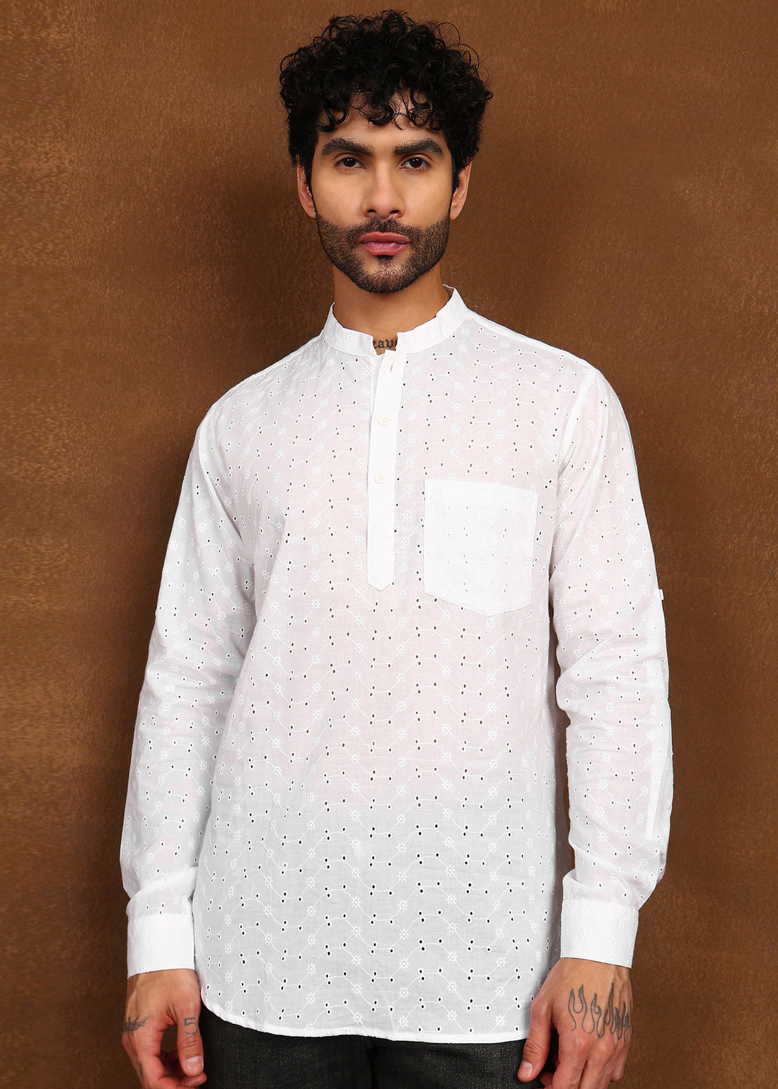 Elegant, breathable, and delicately detailed — the Fabmade Minimal Loom Linen Kurta Linen Short Kurta...