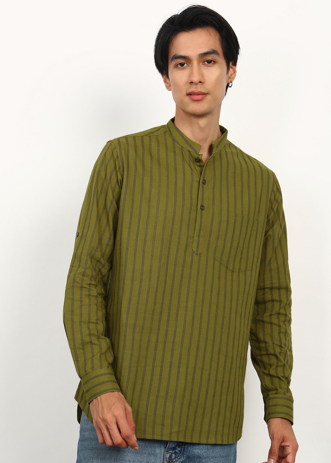 Fresh, earthy, and effortlessly stylish, the Fabmade Olive Stripe Linen Kurta is crafted from premium...