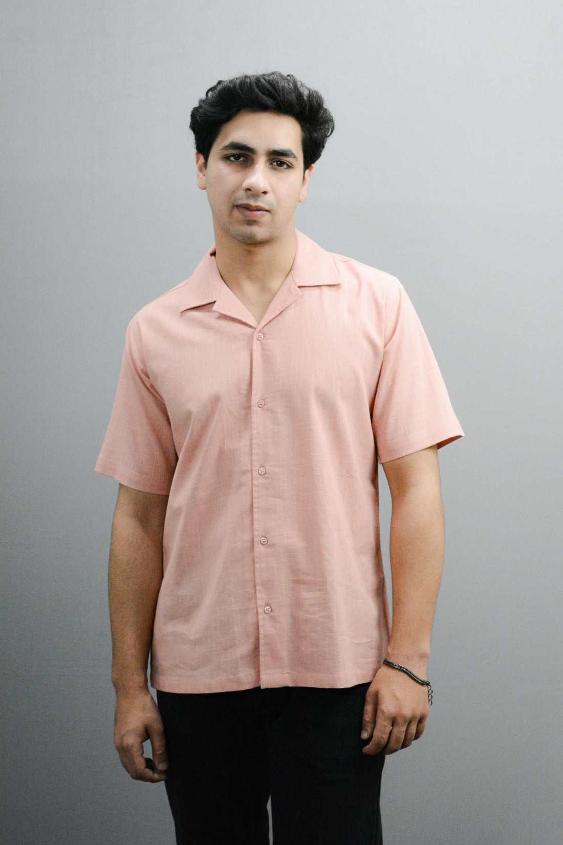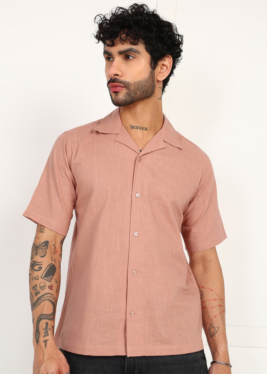 Elevate your everyday style with this men’s peach linen short-sleeve shirt, designed for effortless comfort...