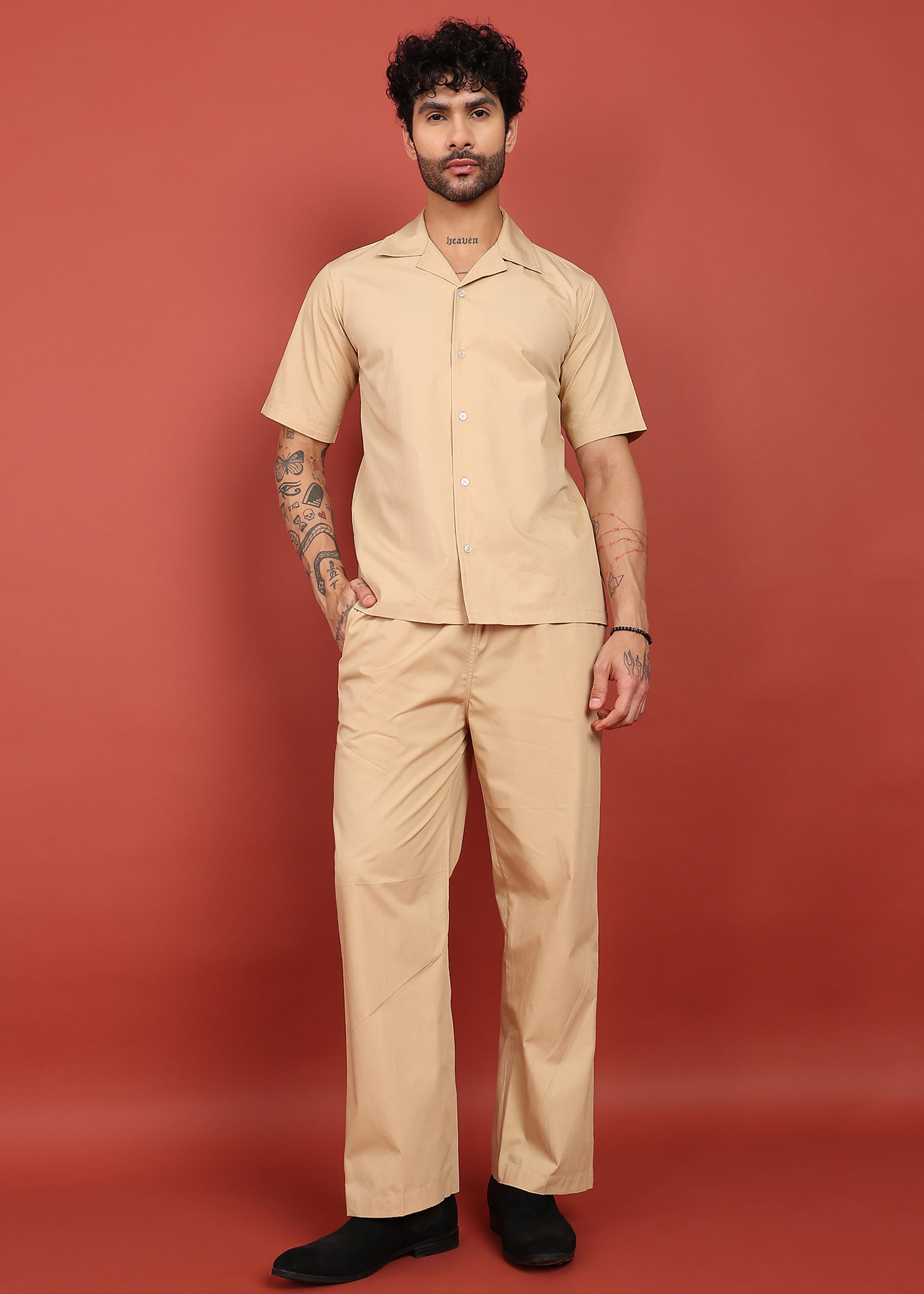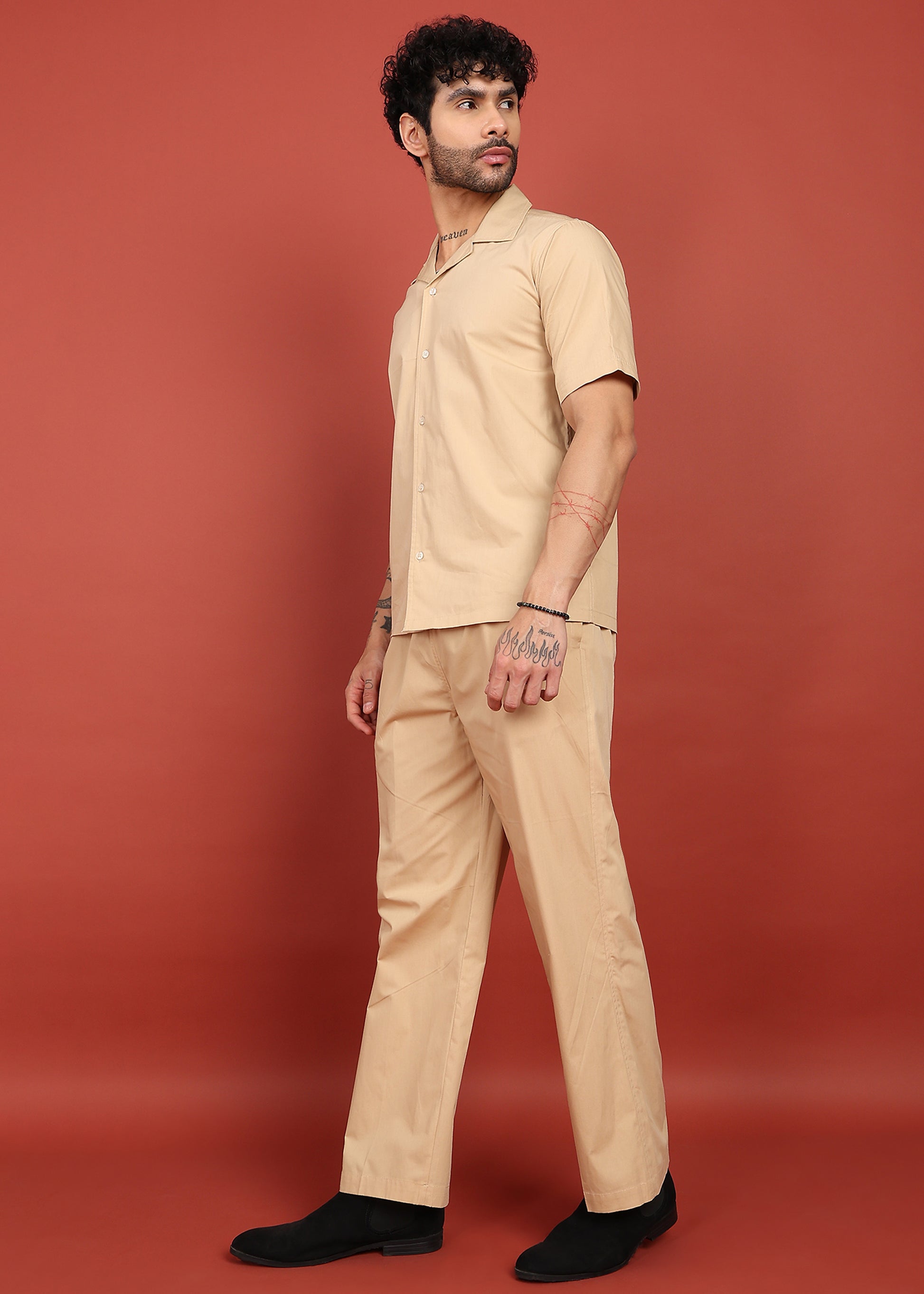The Desert Sand Classic Co-Ord Set blends minimal elegance with all-day comfort. Featuring a clean short-sleeve shirt paired with matching straight-fit pyjamas, this set is crafted from breathable, lightweight fabric that feels soft on the skin. The neutral sand tone makes it a versatile choice for casual outings, travel, relaxed evenings, or elevated everyday wear.