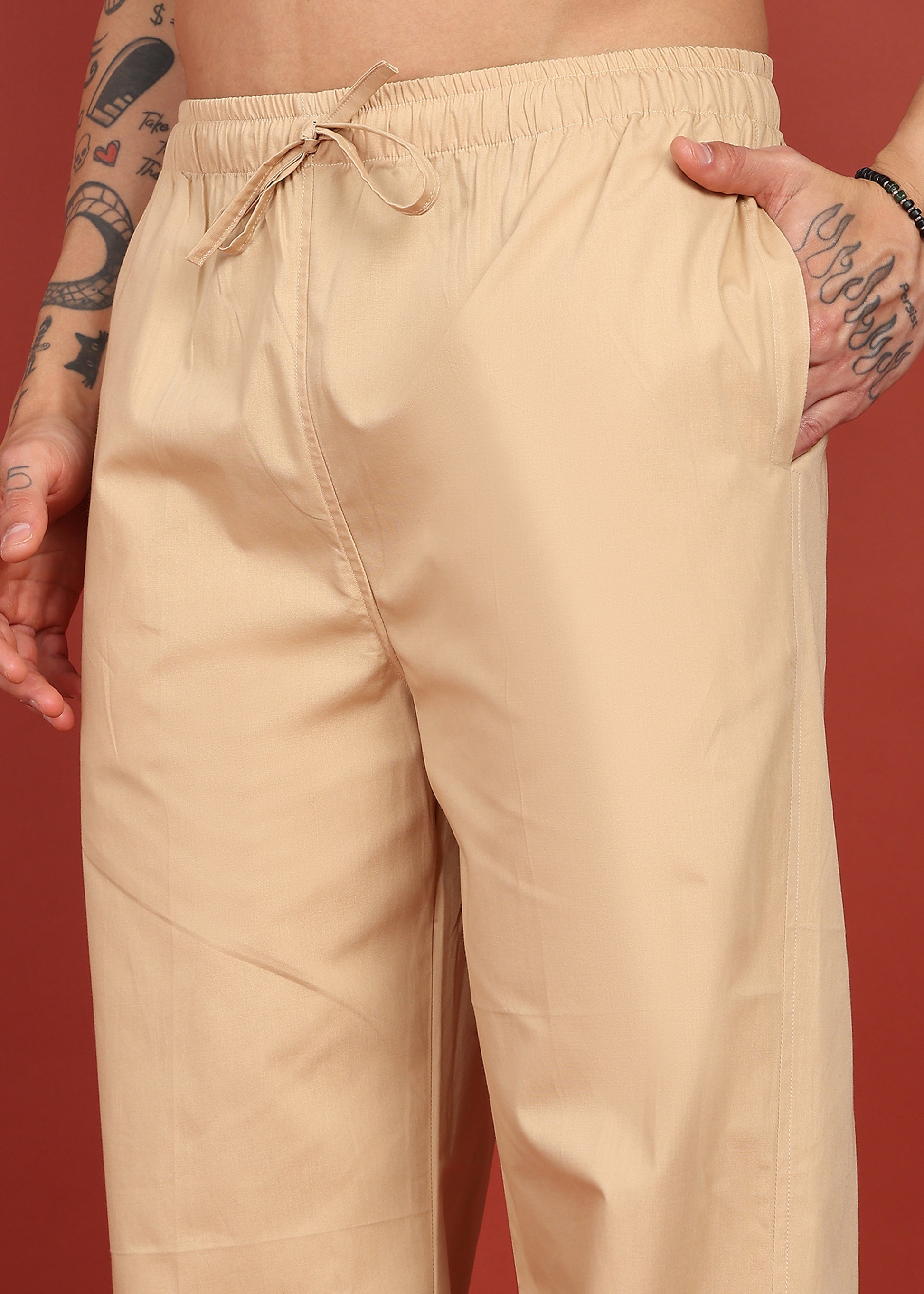 Designed for comfort without compromising style, the Desert Sand Relaxed Fit Pyjama features a straight silhouette and breathable fabric for all-day ease. The minimal solid tone makes it a versatile essential that pairs effortlessly with kurtas, shirts, or co-ord tops. Perfect for casual wear, lounging, or relaxed festive styling.