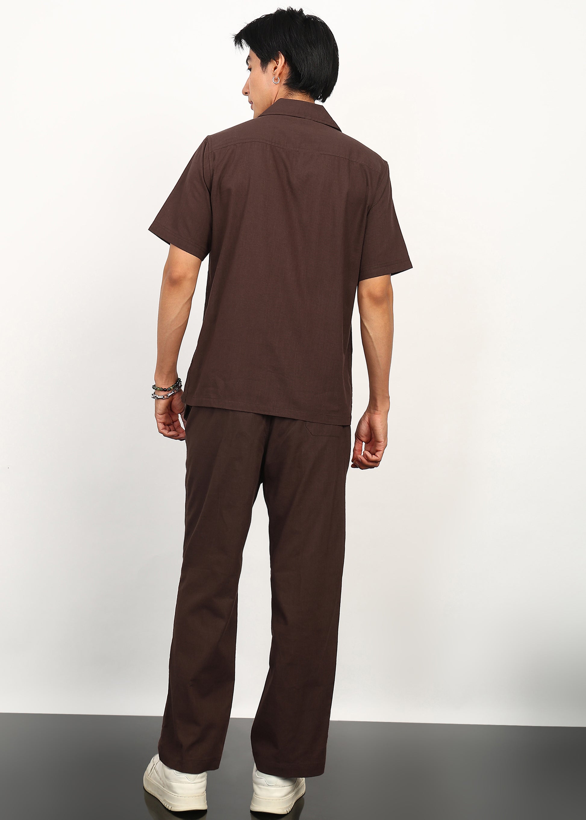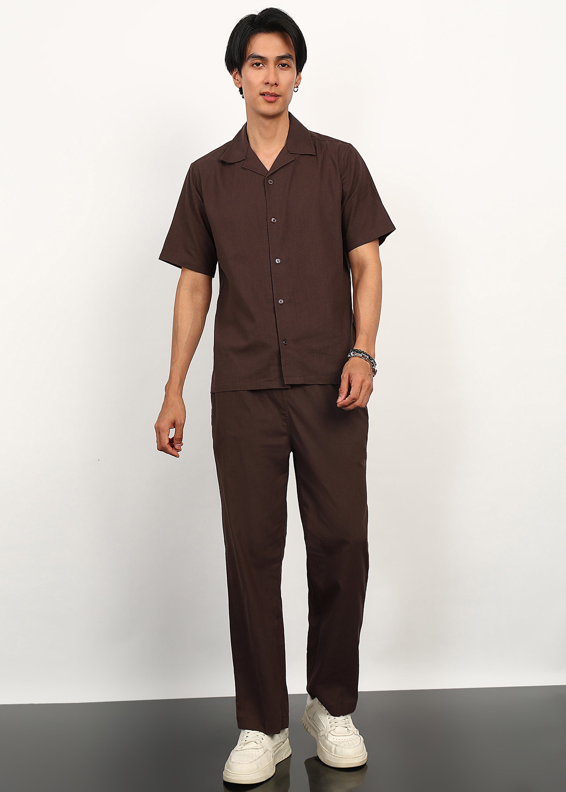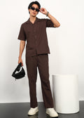 The short-sleeve button-down shirt offers a relaxed, tailored balance, while the matching straight-fit trousers complete the look with understated structure and comfort. Crafted from breathable, lightweight fabric, Cocoa Drift is ideal for summer days, travel styling, casual evenings, and elevated everyday wear.