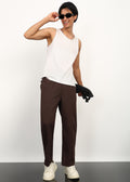 The rich cocoa-brown tone adds warmth and versatility, pairing perfectly with tanks, shirts, or layered looks. Lightweight and airy, this piece is a timeless essential for modern wardrobes.