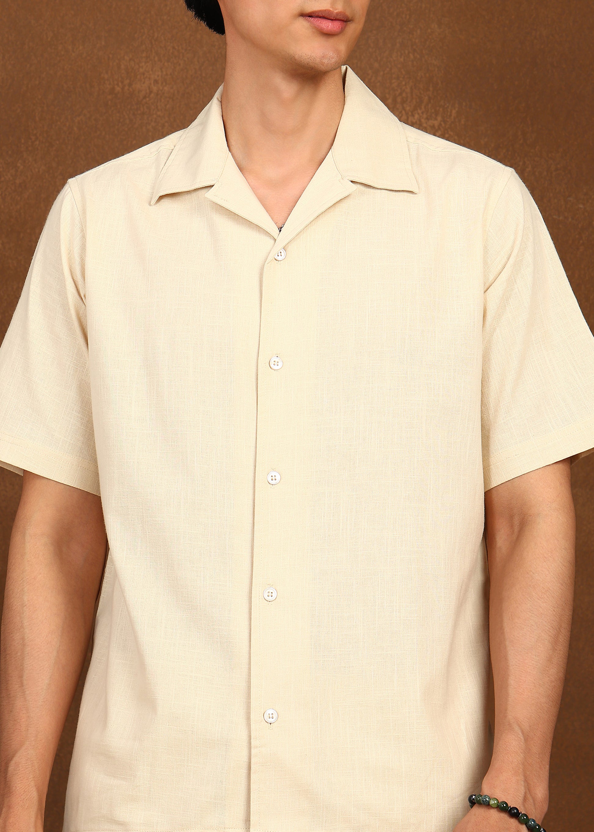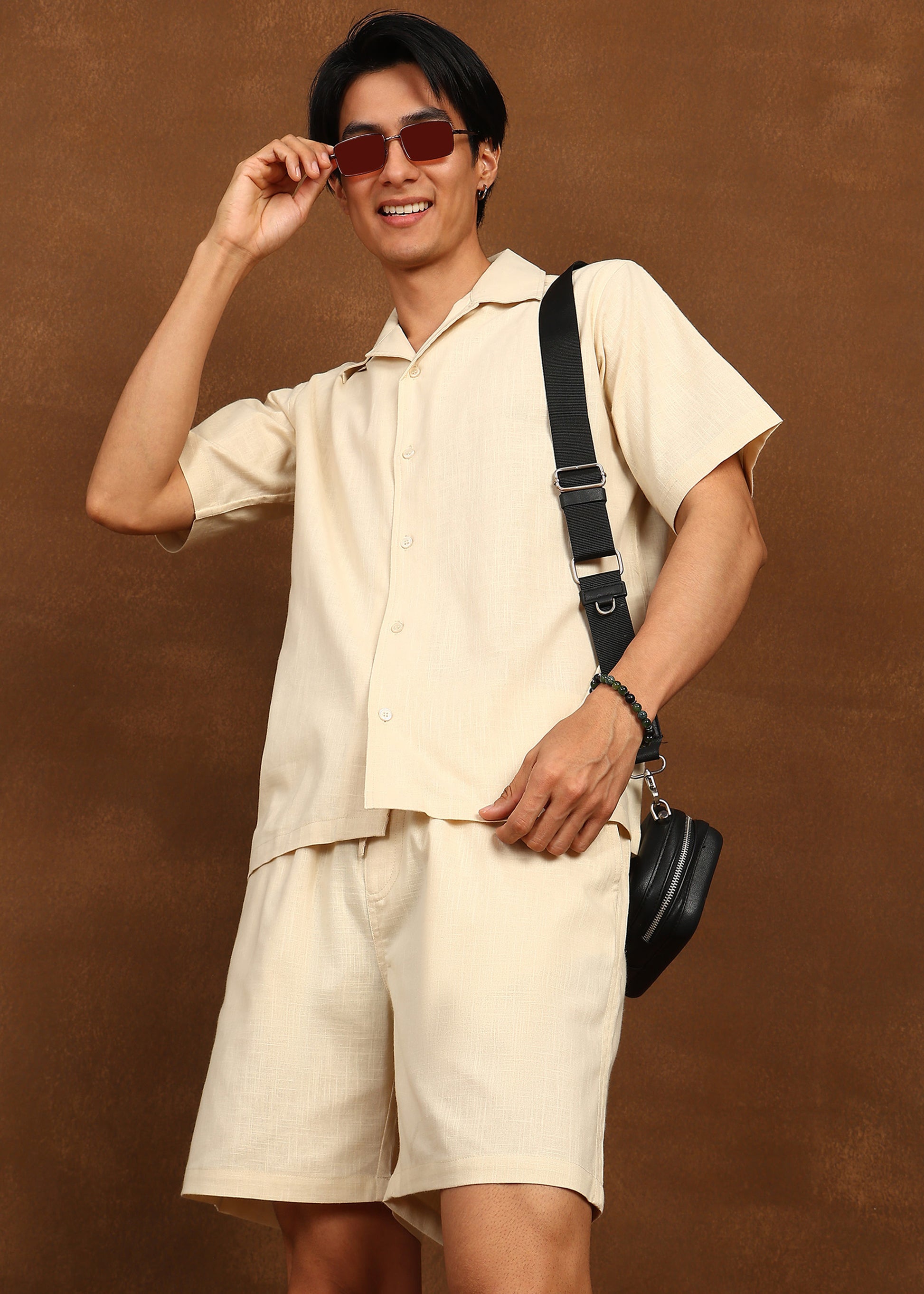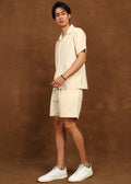 The short-sleeve button-down shirt features clean lines and a breathable weave, paired with matching straight-fit shorts for all-day comfort. Lightweight and versatile, Desert Calm is perfect for summer styling, travel wear, and understated luxury looks.