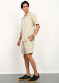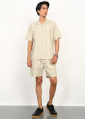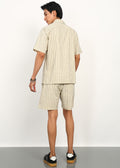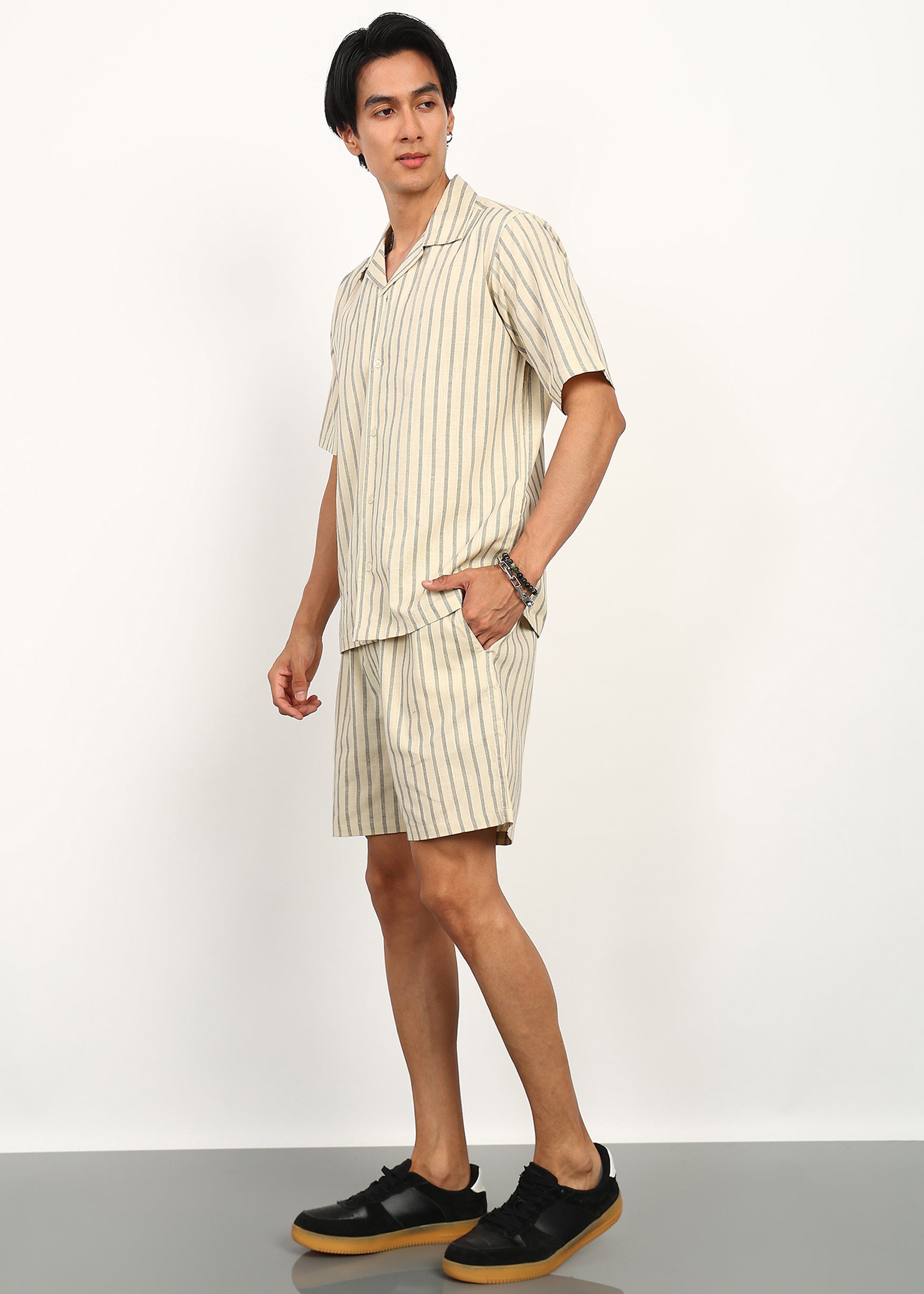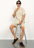 Soft, breathable, and effortlessly refined — the Fabmade Ivory Stripe Ease Co-Ord Set is designed for relaxed days with elevated style. Crafted in a warm ivory base with subtle vertical stripes, this set delivers a clean, airy aesthetic that feels timeless yet modern. The short-sleeve shirt offers a relaxed silhouette, while the matching shorts feature an easy fit that keeps comfort at the forefront.