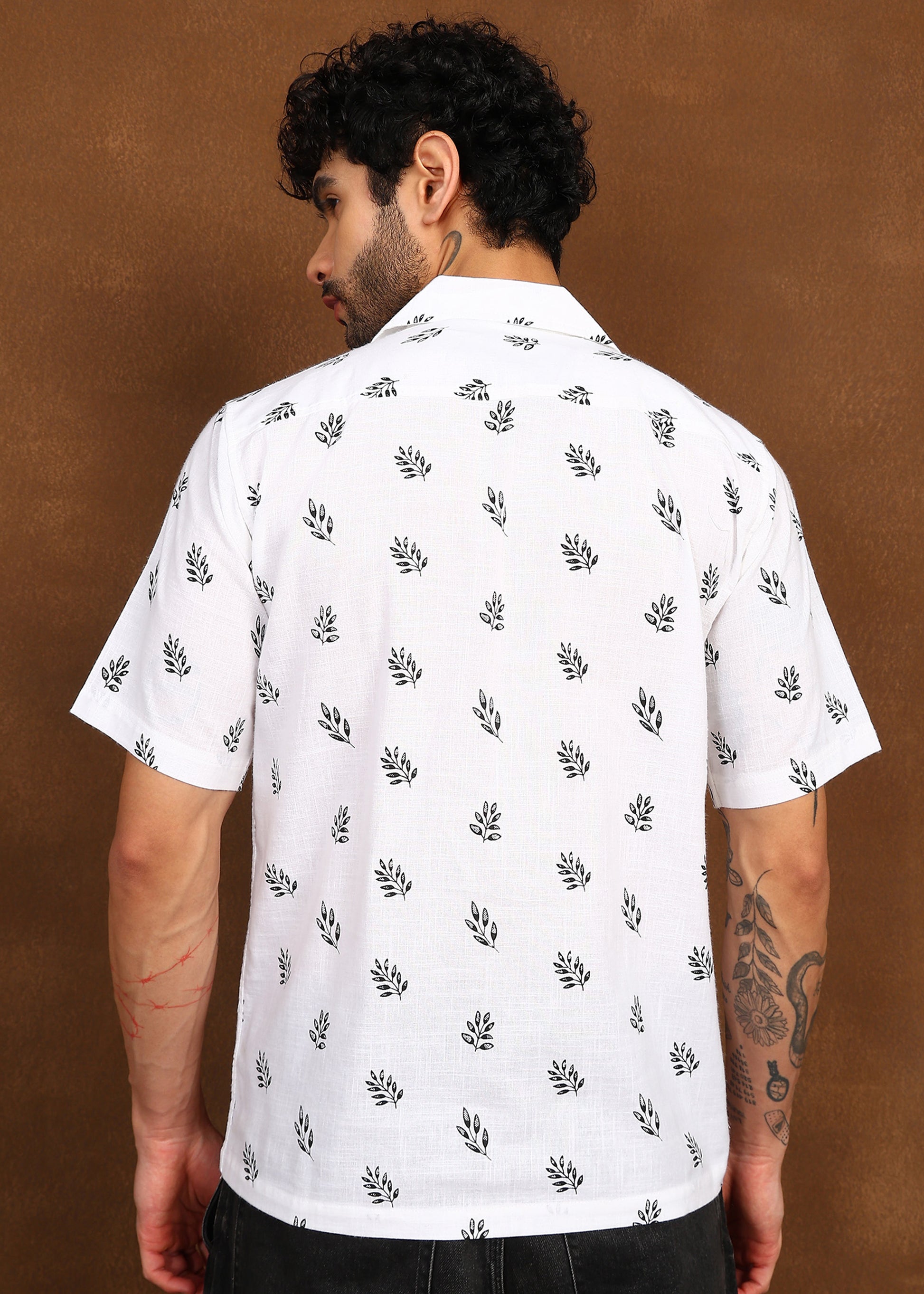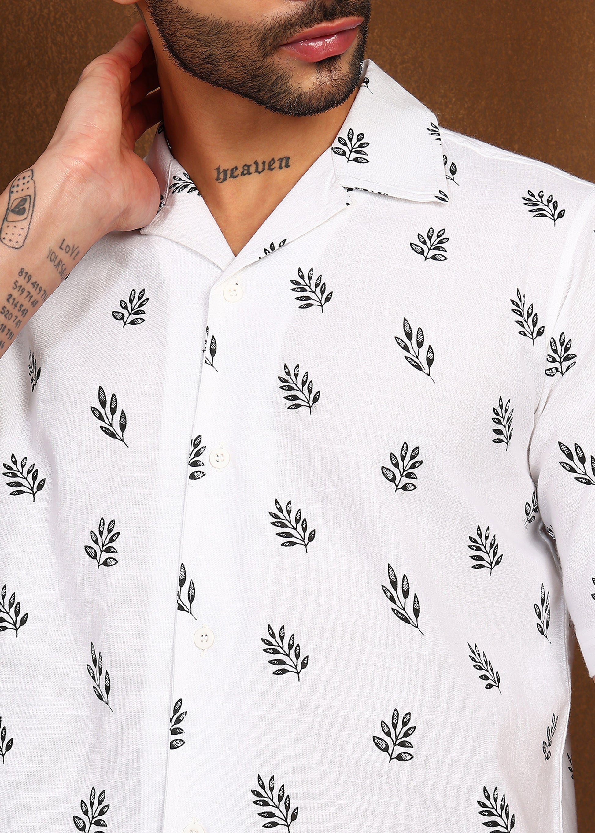 Minimal yet expressive — the Fabmade Leaf Whisper Linen Shirt features a clean white base enhanced with soft leaf motifs for an understated statement. Crafted from lightweight linen, this shirt delivers breathability and comfort while maintaining a crisp, modern silhouette.