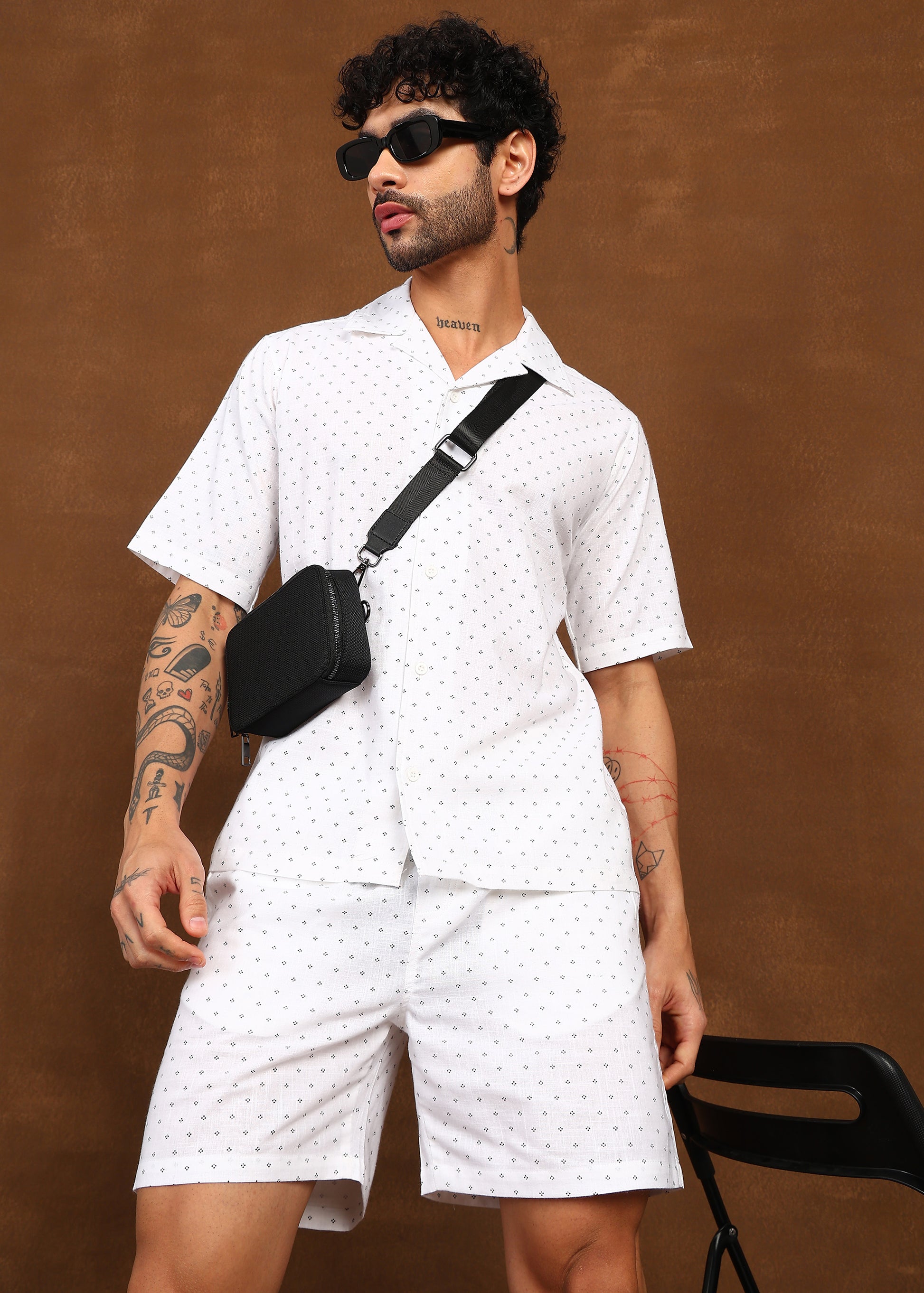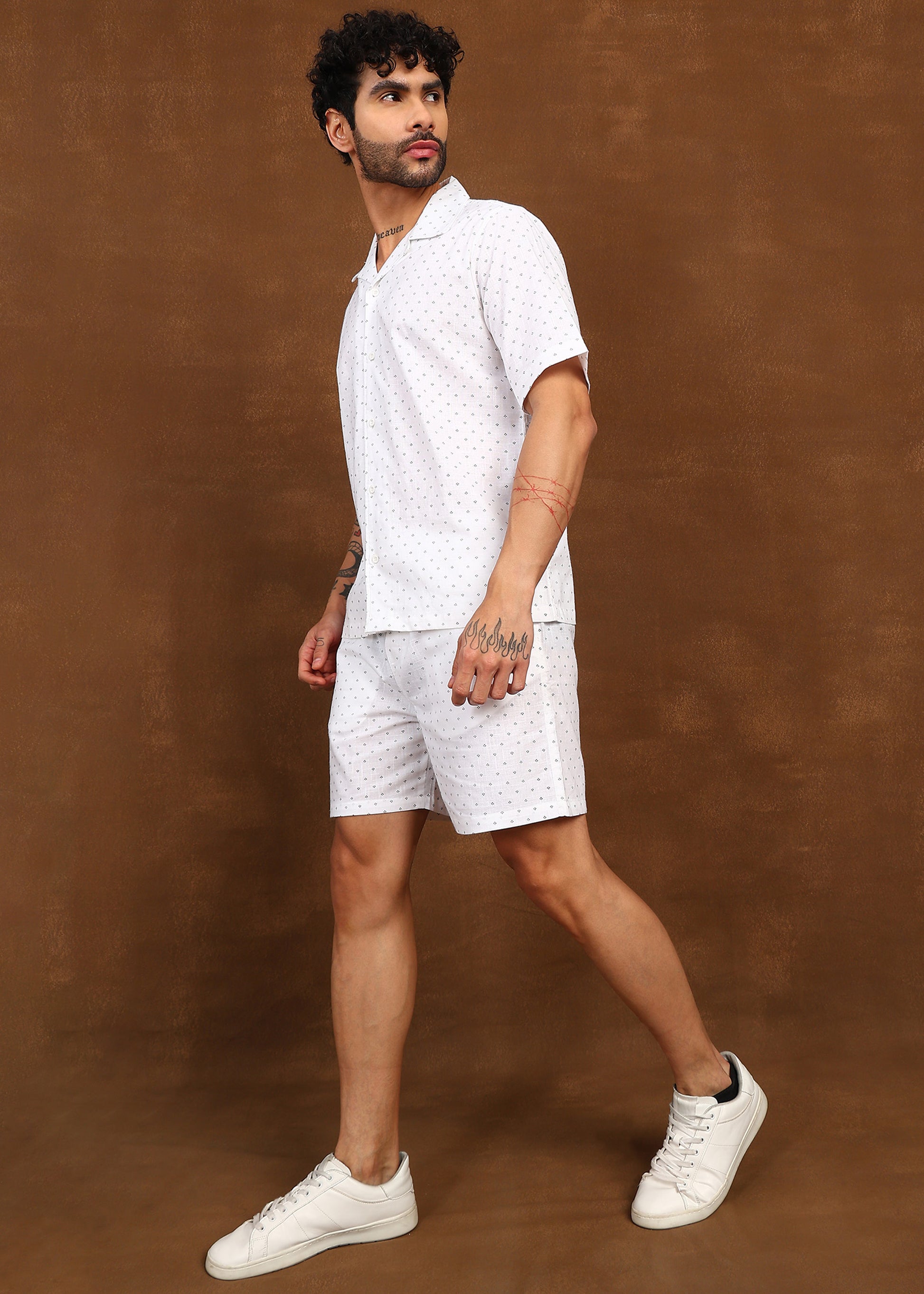 Effortlessly modern and refreshingly minimal, the Fabmade Micro Dot Co-Ord Set is designed for laid-back days with elevated style. Featuring a clean short-sleeve shirt paired with matching relaxed-fit shorts, this set brings together comfort, balance, and contemporary appeal.