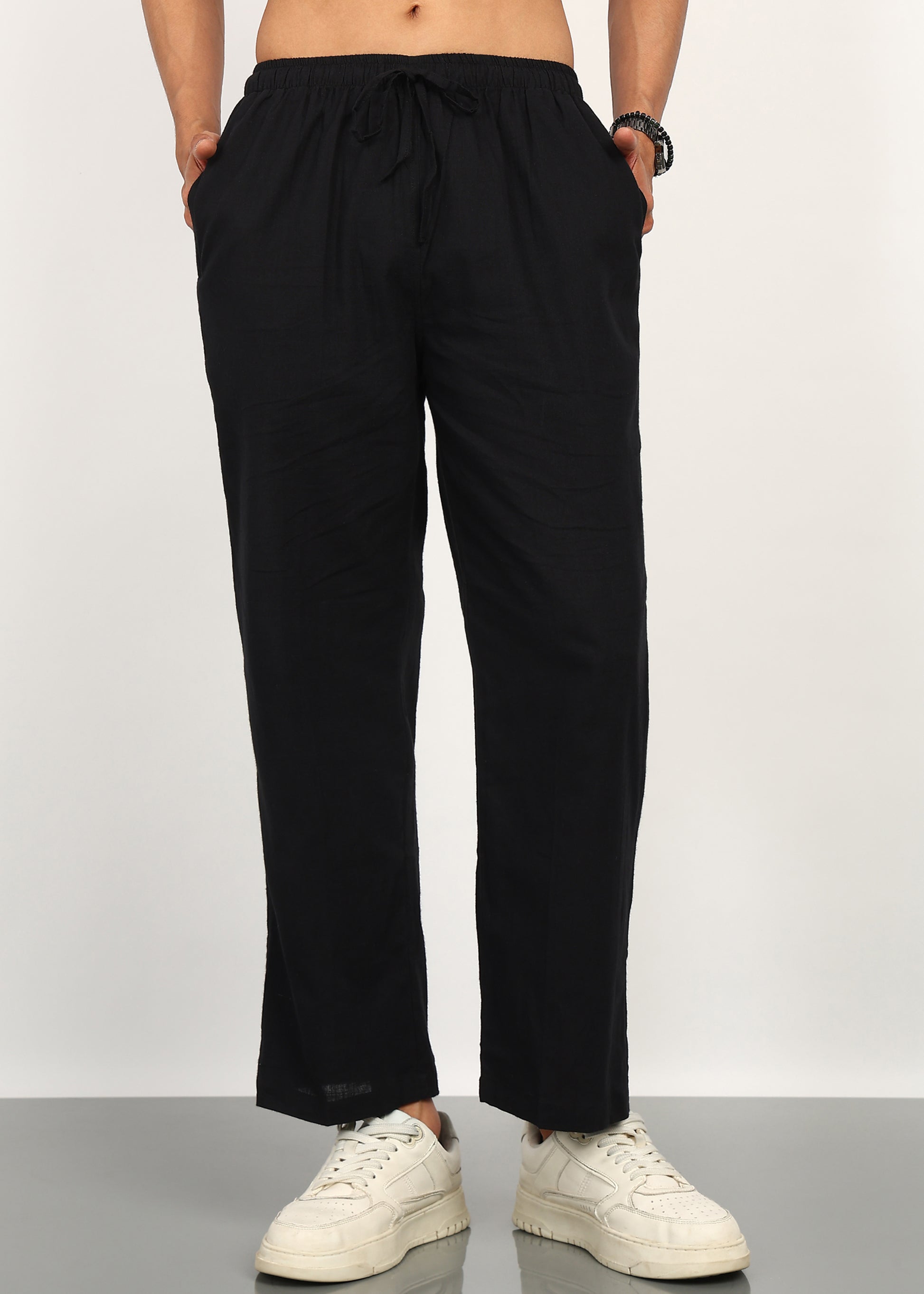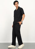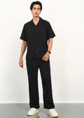 The deep black tone adds a refined edge, making it a versatile essential for warm weather, travel, and casual occasions. Lightweight, airy, and naturally textured, this set delivers comfort without compromising on style.