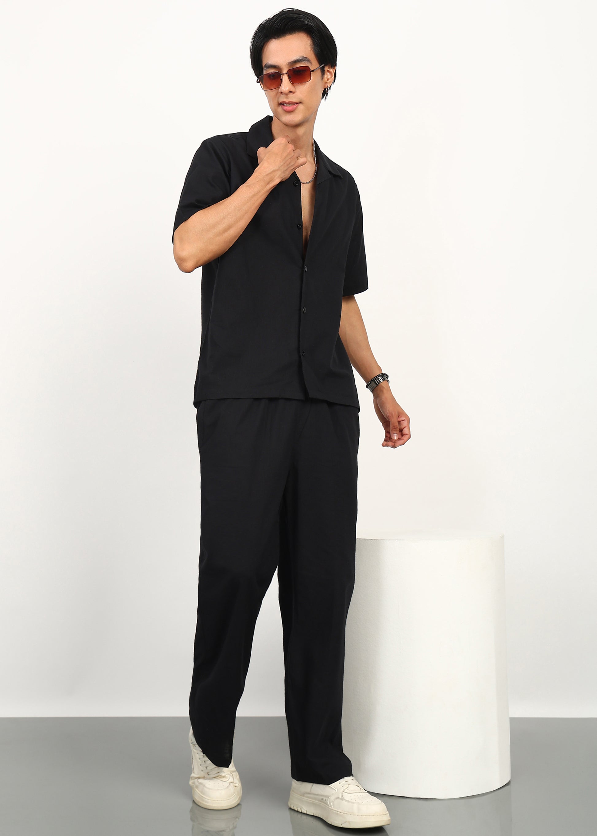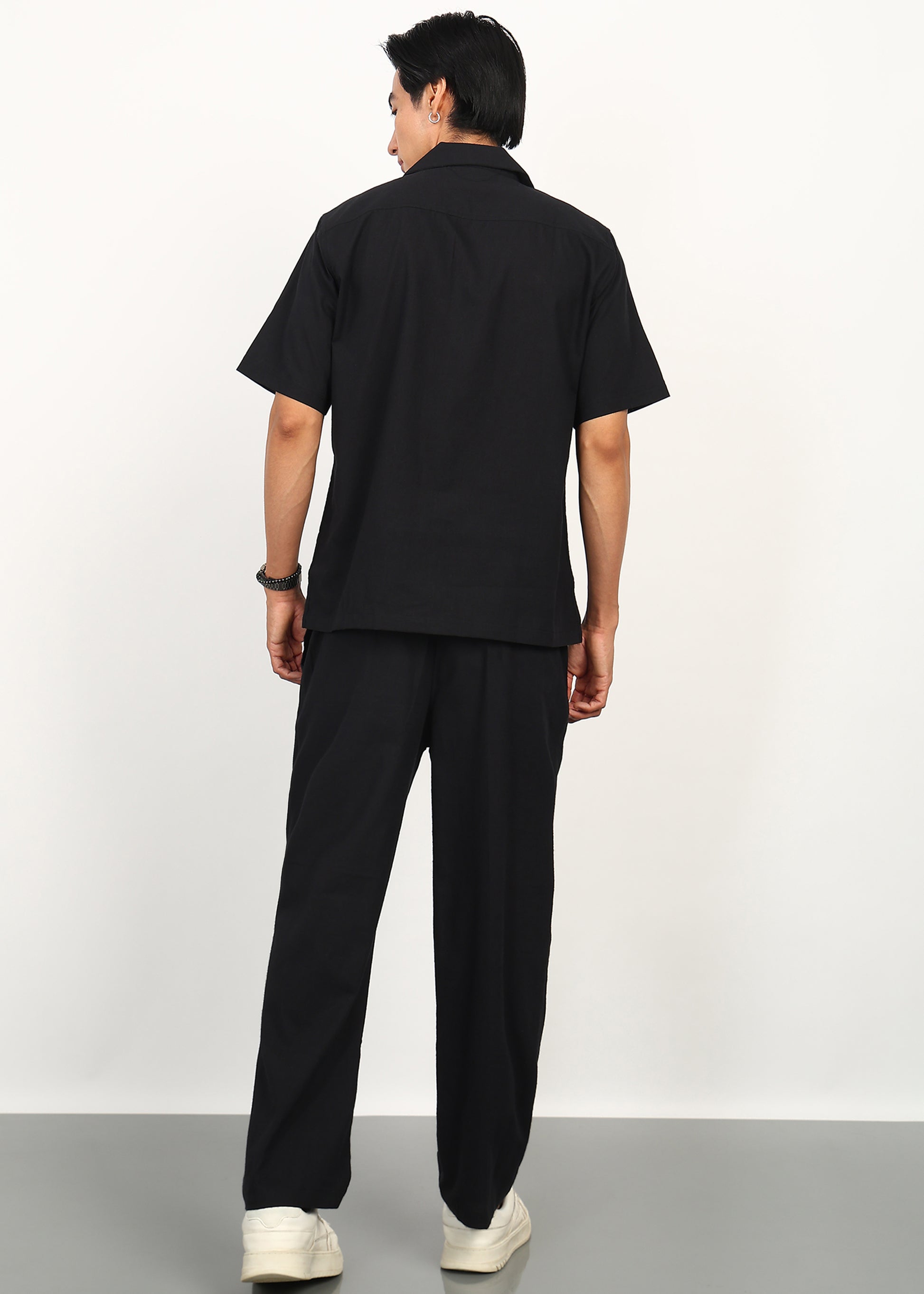 Crafted from premium breathable linen, the Fabmade Eclipse Black Linen Co-Ord Set is designed for effortless style and all-day comfort. The relaxed silhouette, short-sleeve shirt, and straight-fit trousers create a modern, minimal look that works from daytime outings to evening plans.