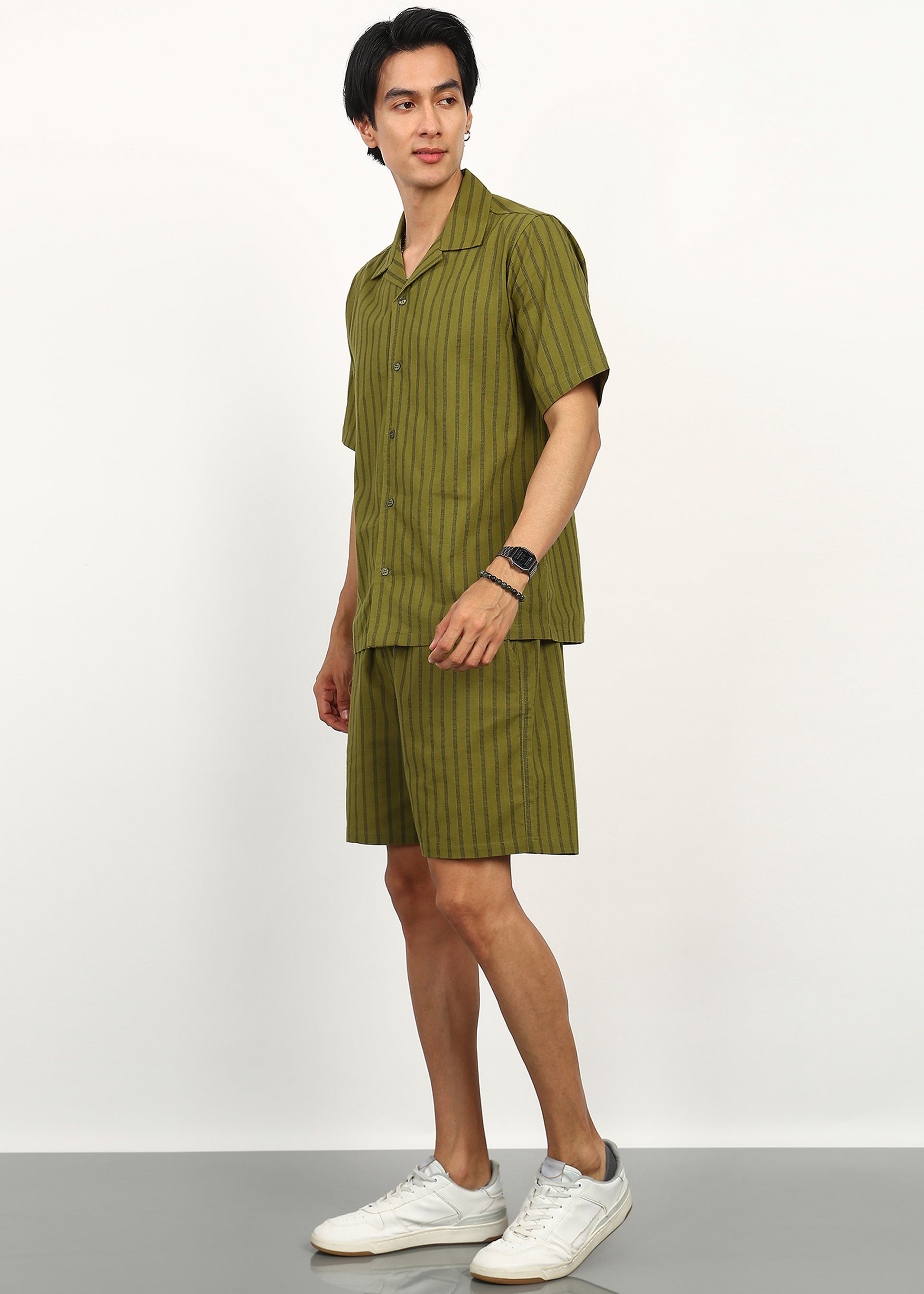 Fresh, effortless, and grounded in nature, the Fabmade Olive Breeze Co-Ord Set is designed for relaxed summer dressing with a refined edge. Crafted in a soothing olive green hue with subtle vertical stripe detailing, this set brings a calm yet confident aesthetic to everyday wear.