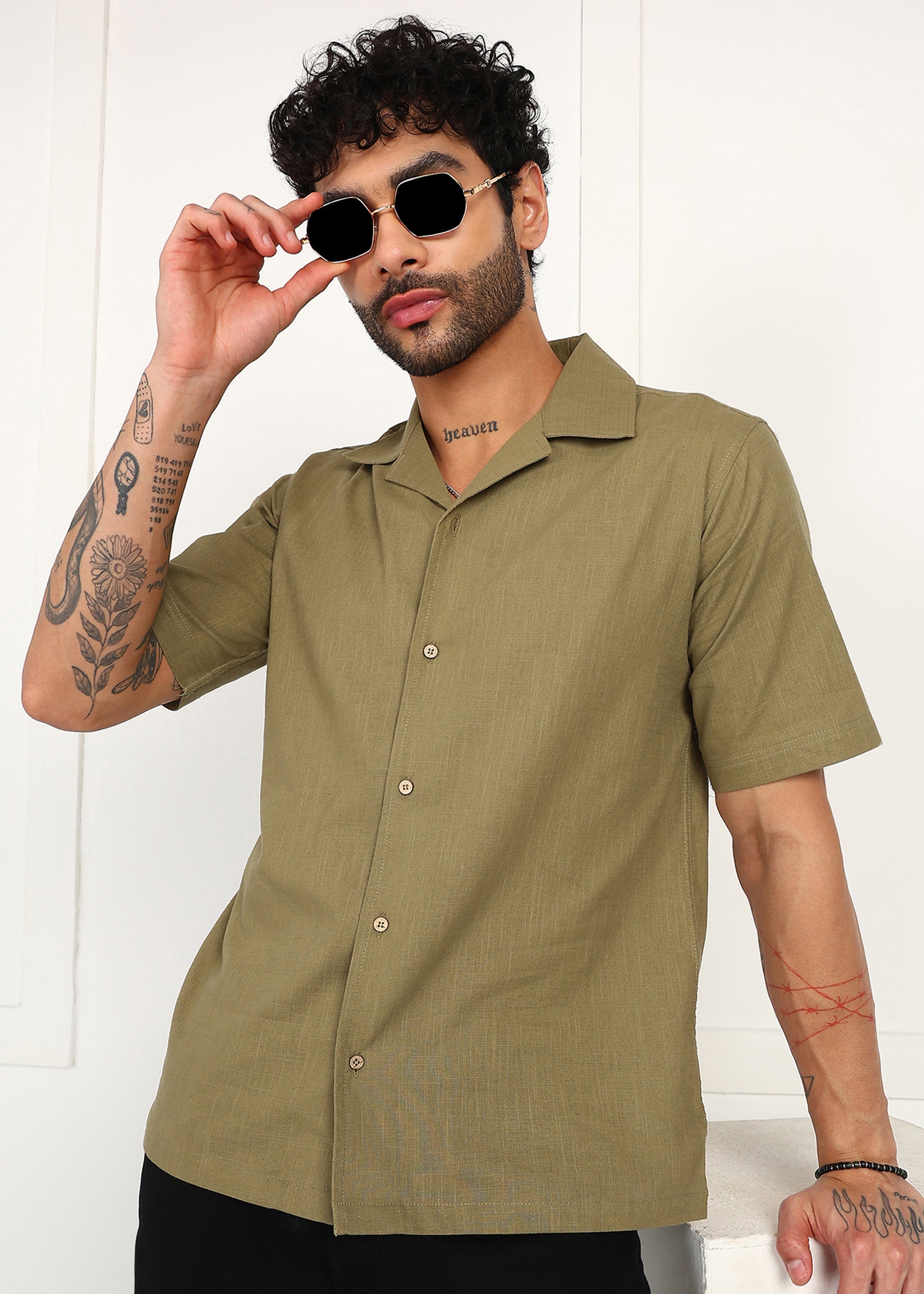 Fabmade Olive Breeze Linen Shirt