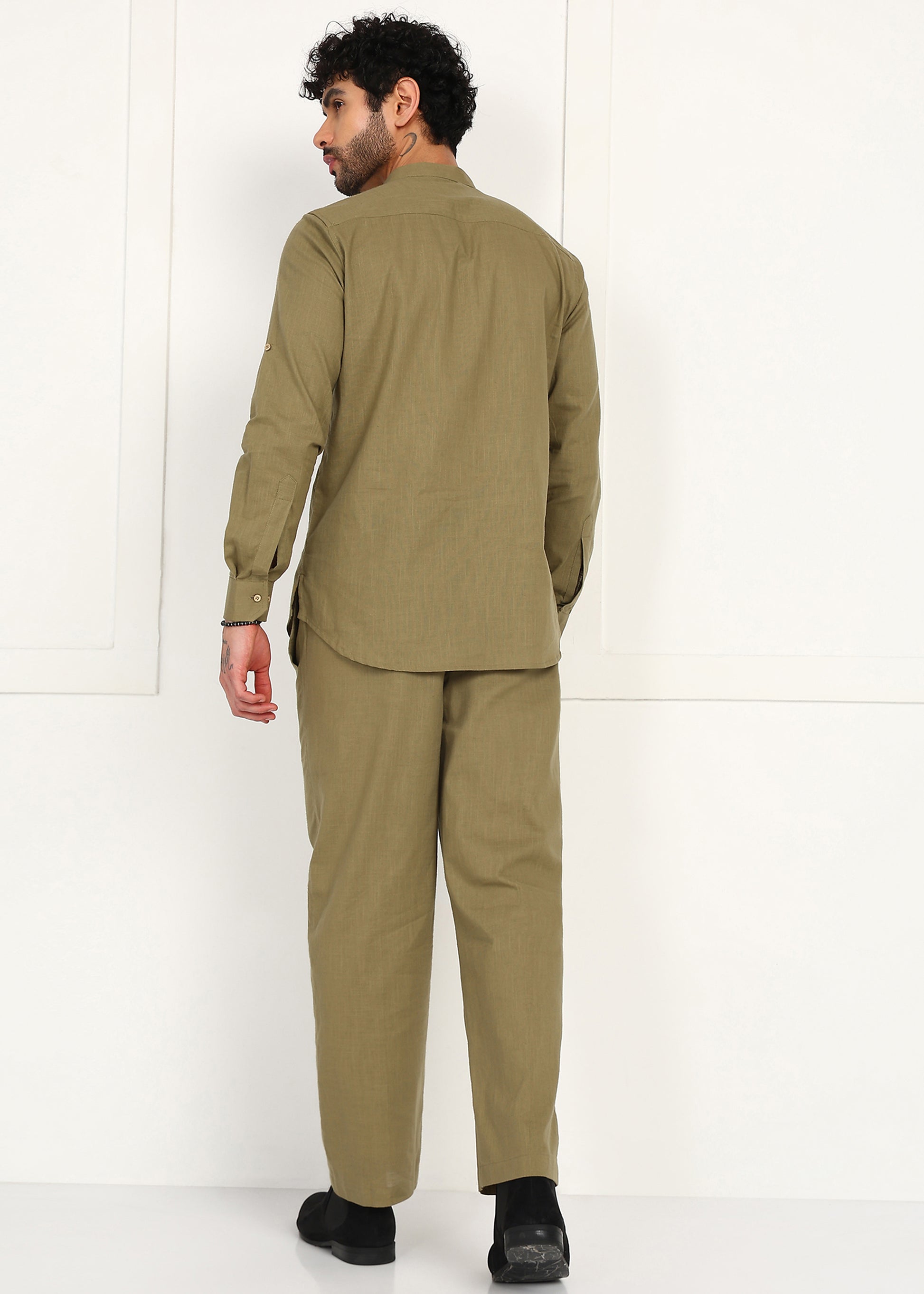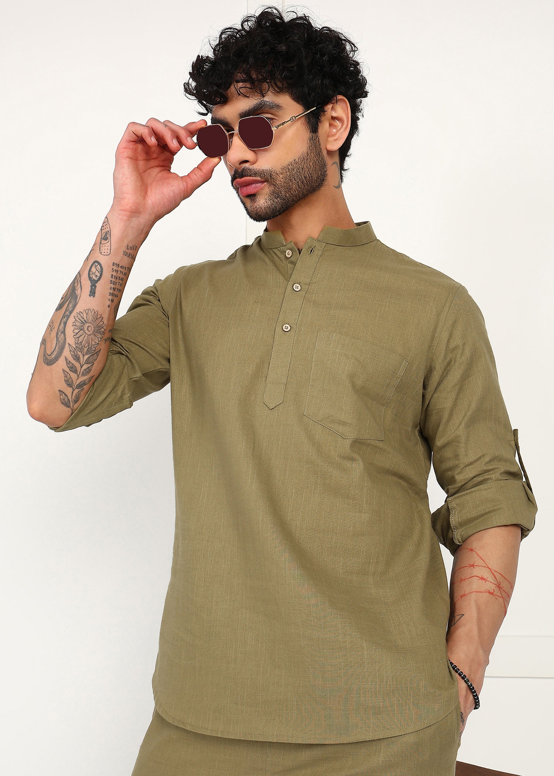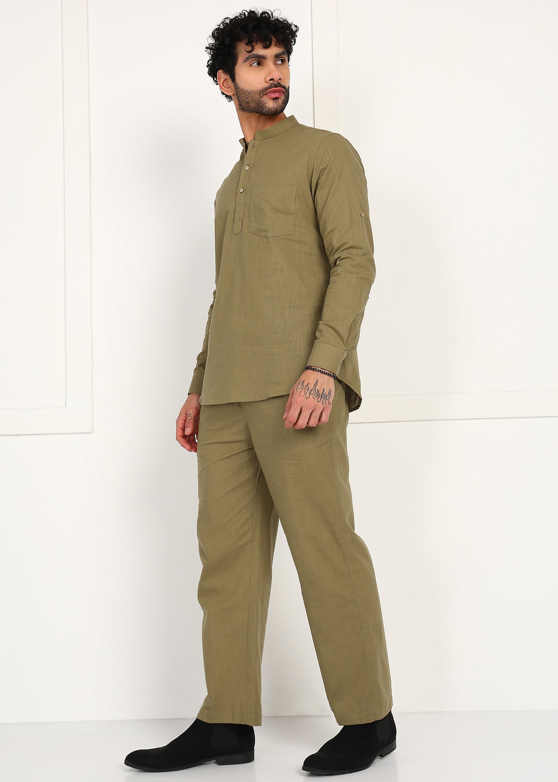 Fabmade Olive Dune Linen Short Kurta Co-Ord Set