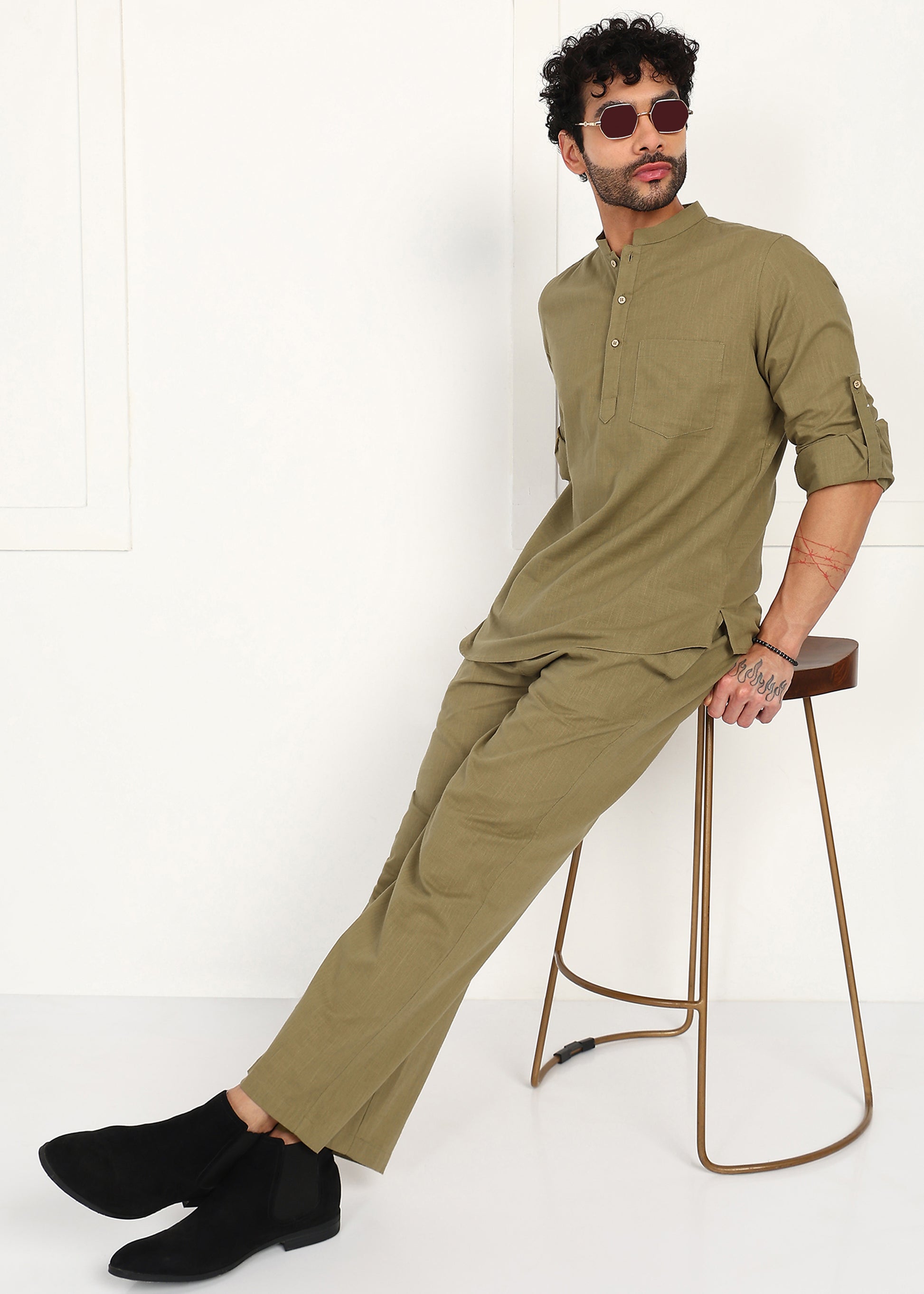 Minimal, grounded, and effortlessly refined — the Fabmade Olive Dune Linen Short Kurta Co-Ord Set is designed for modern men who appreciate comfort with quiet elegance. Crafted from breathable premium linen, this co-ord set features a short kurta paired with relaxed straight-fit trousers in a rich olive tone inspired by natural earth hues.