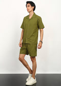 The short-sleeve button-down shirt offers a structured but easy silhouette, while the matching shorts feature a comfortable fit that keeps movement light and breathable. Ideal for warm days, vacations, casual outings, or laid-back resort styling, this co-ord set is your go-to for understated statement dressing.