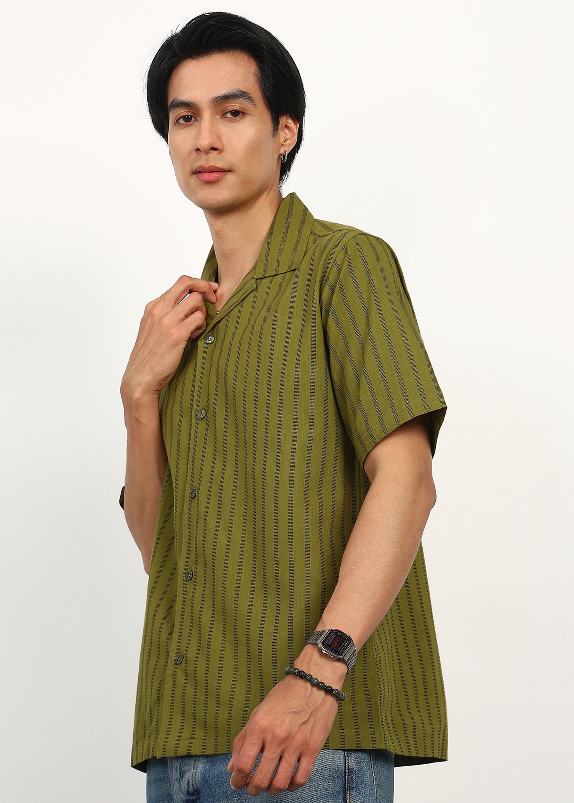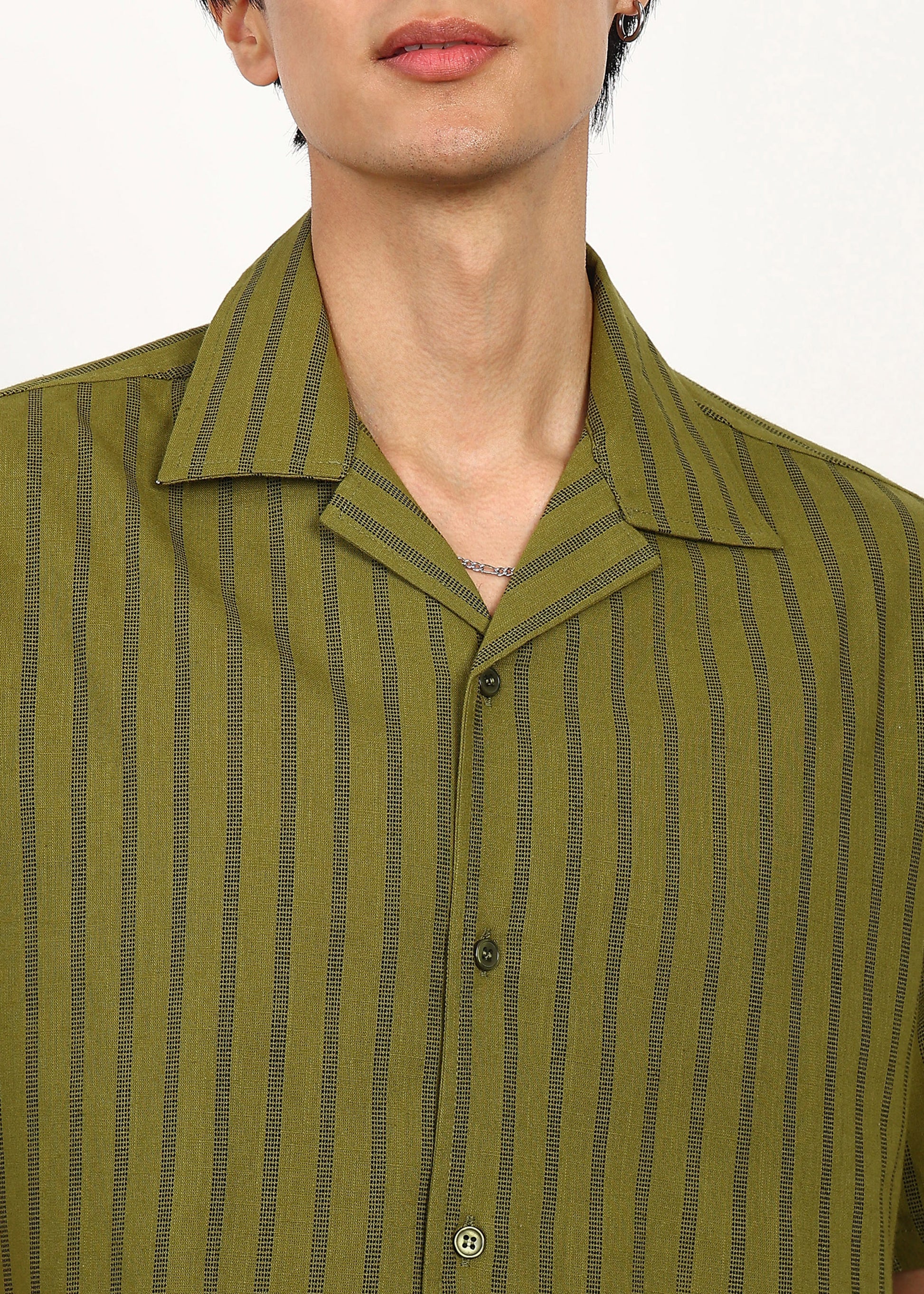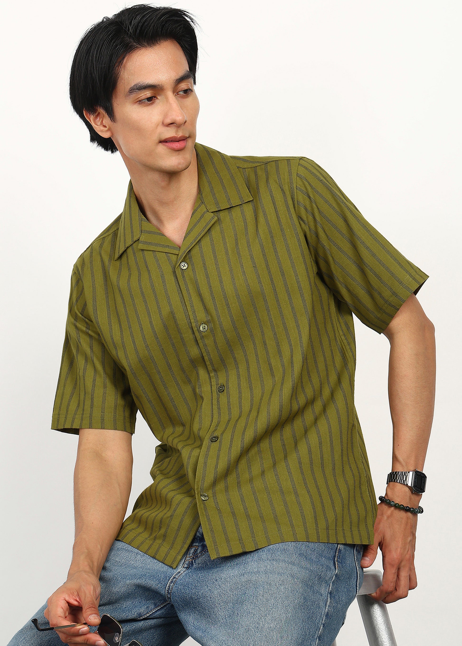 Effortlessly modern with a grounded, earthy tone — the Fabmade Olive Rhythm Shirt is designed for those who prefer subtle texture and refined simplicity. Featuring a rich olive base accented with fine vertical stripes, this shirt adds depth and movement while keeping the look clean and versatile.