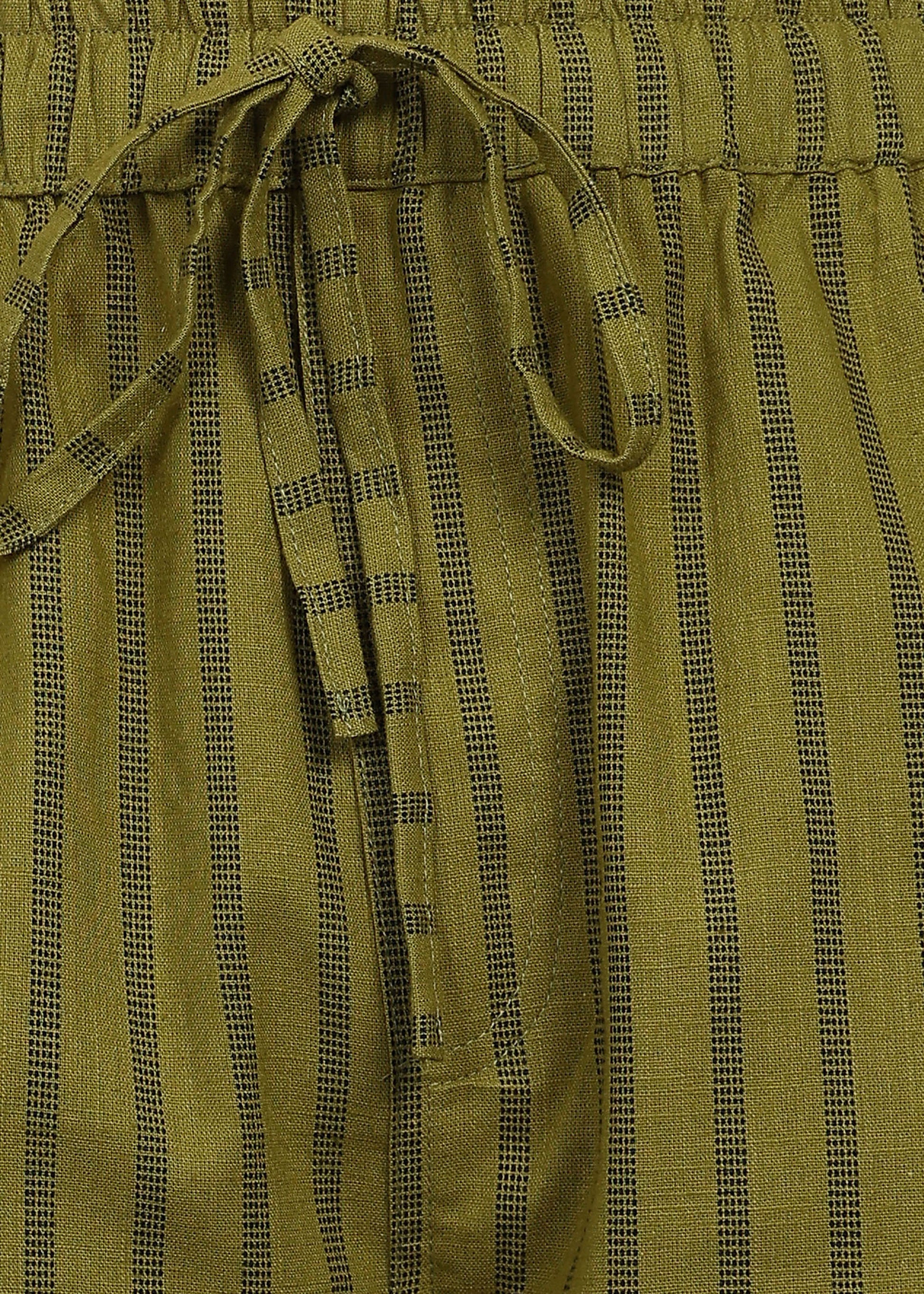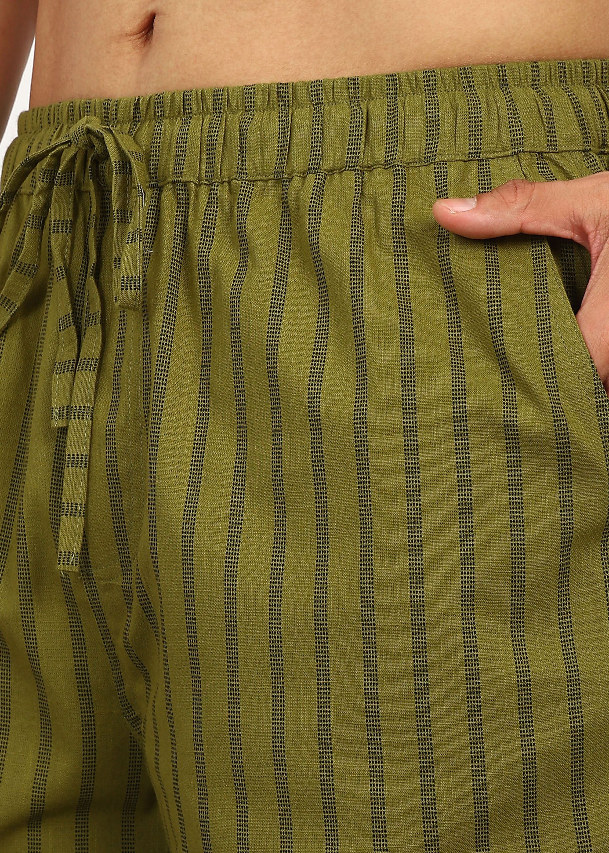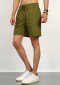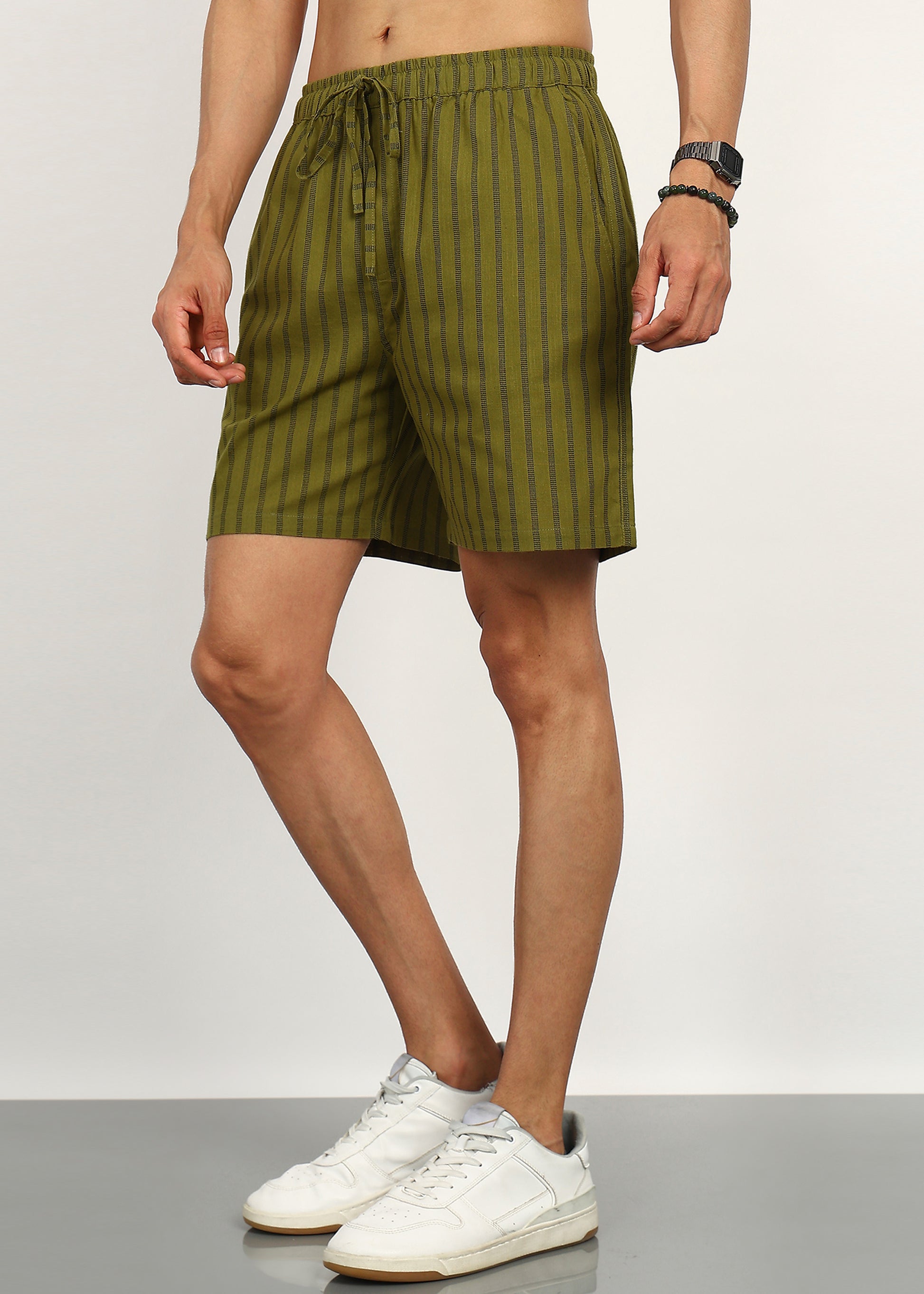 Clean lines meet effortless comfort in the Fabmade Olive Rhythm Shorts. Designed in a rich olive green tone with subtle vertical stripes, these shorts bring a refined yet relaxed vibe to warm-weather dressing. The elasticated waistband with adjustable drawstring ensures a comfortable, flexible fit, while the breathable fabric keeps things light and airy all day long.