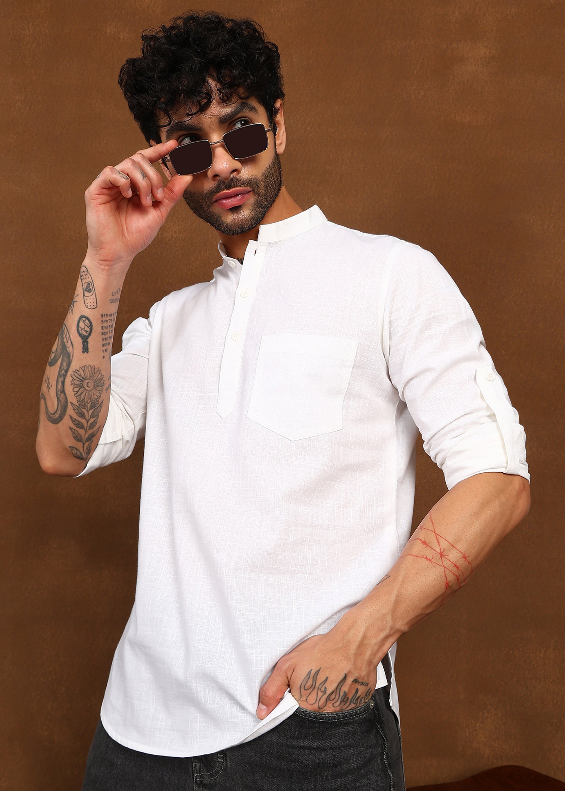 Clean, breathable, and timeless — the Fabmade Pure Ivory Linen Short Kurta is designed for effortless elegance with a refined ethnic touch. Crafted from premium linen fabric, this kurta offers a lightweight, airy feel that keeps you comfortable throughout the day.