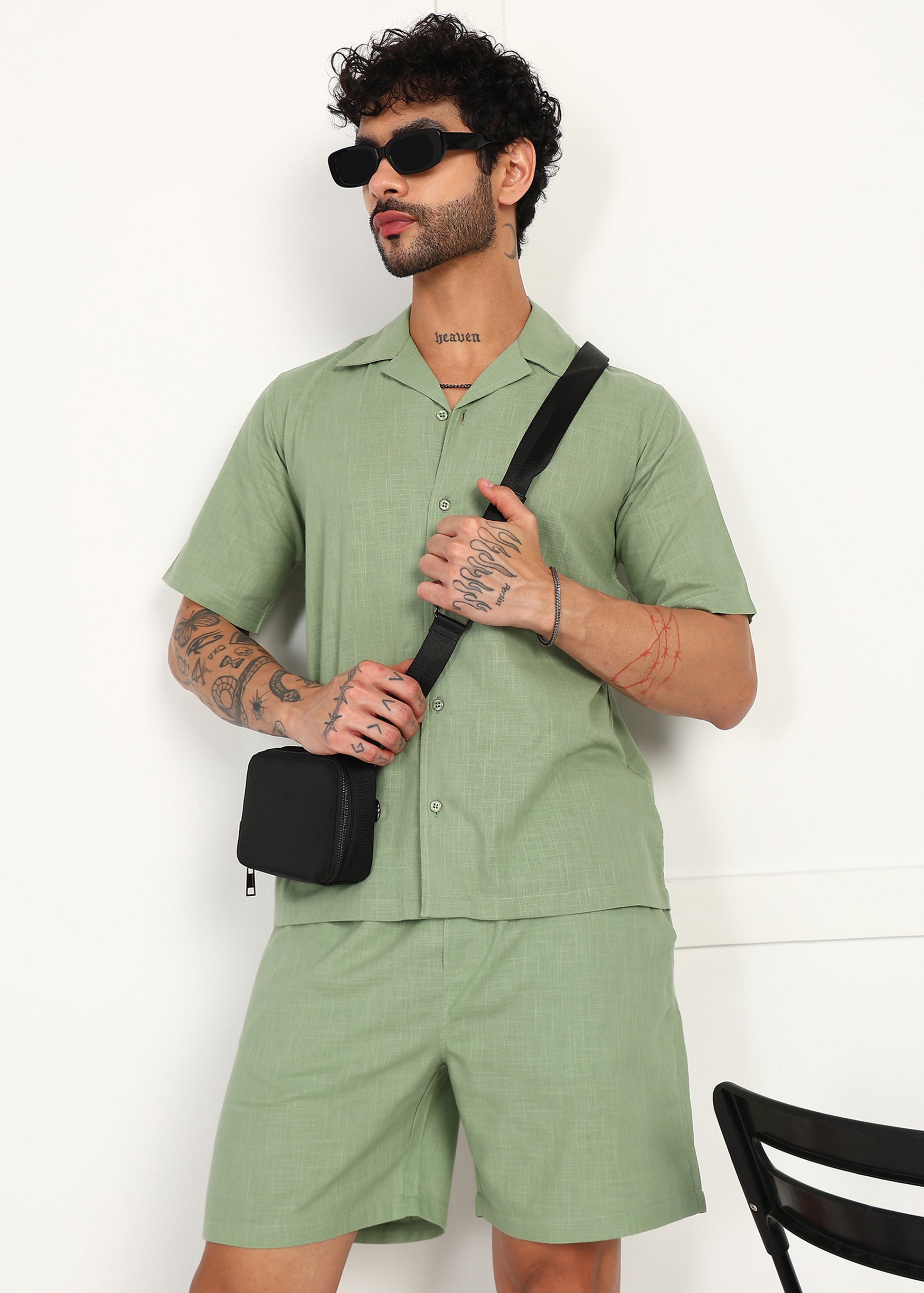 Step into effortless summer styling with the Fabmade Sage Linen Co-Ord Set. Designed with a relaxed silhouette and crafted from breathable linen fabric, this set blends comfort with modern minimalism. The short-sleeve shirt paired with matching linen shorts creates a polished yet laid-back look, perfect for warm days and casual outings.