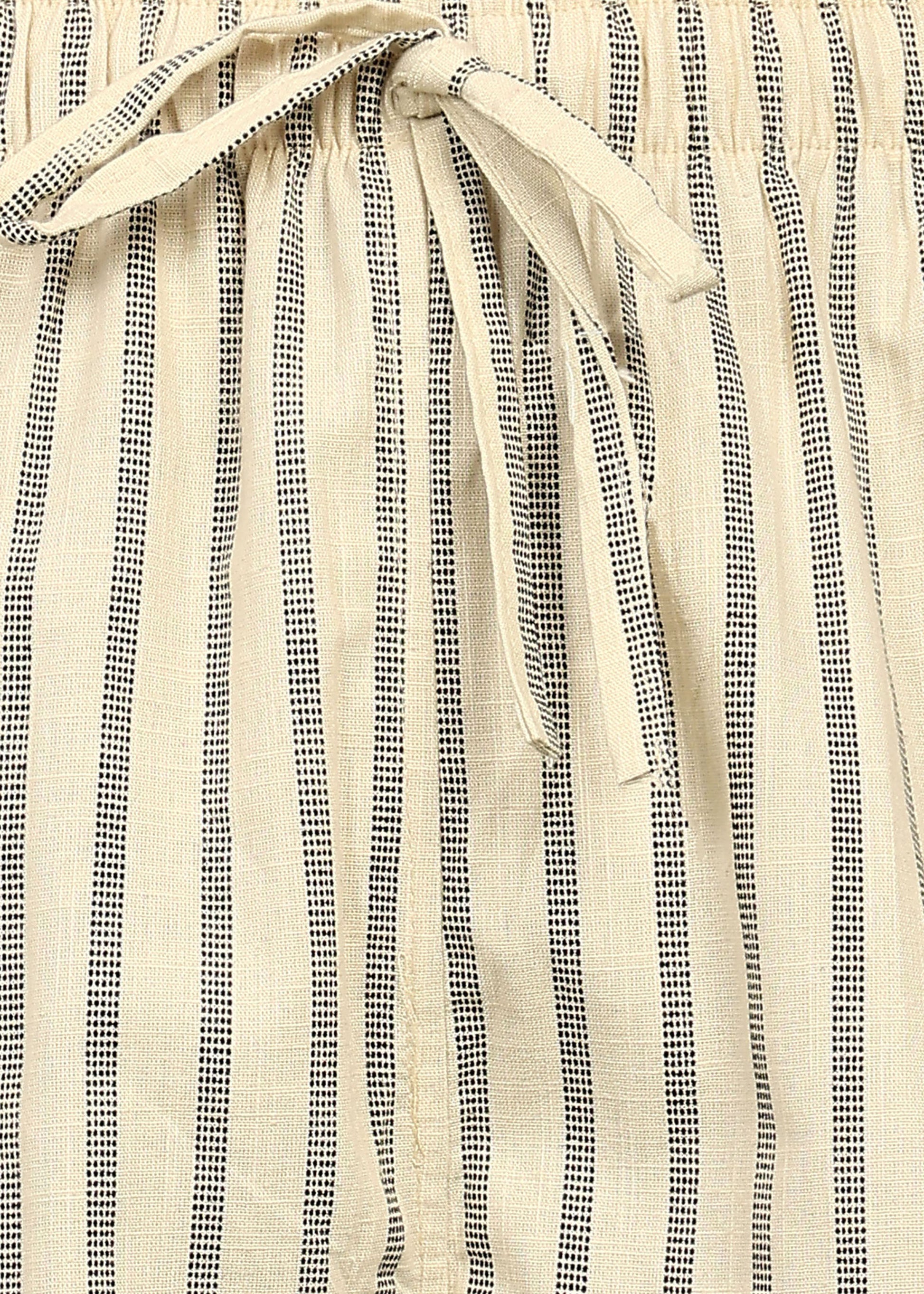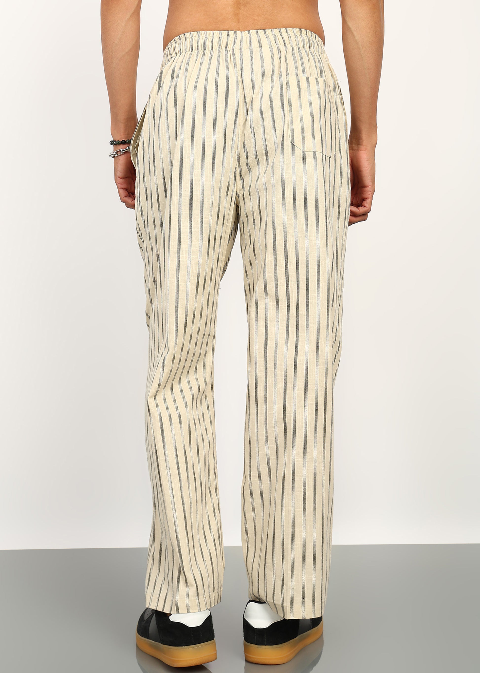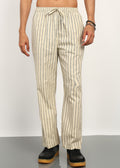 Relaxed, breathable, and effortlessly refined — the Fabmade Sandline Stripe Linen Trousers are crafted from premium linen designed for comfort in warm weather. Featuring subtle vertical stripes on a soft beige base, these trousers offer a relaxed straight fit with an elasticated waistband and drawstring for easy movement and all-day wear.