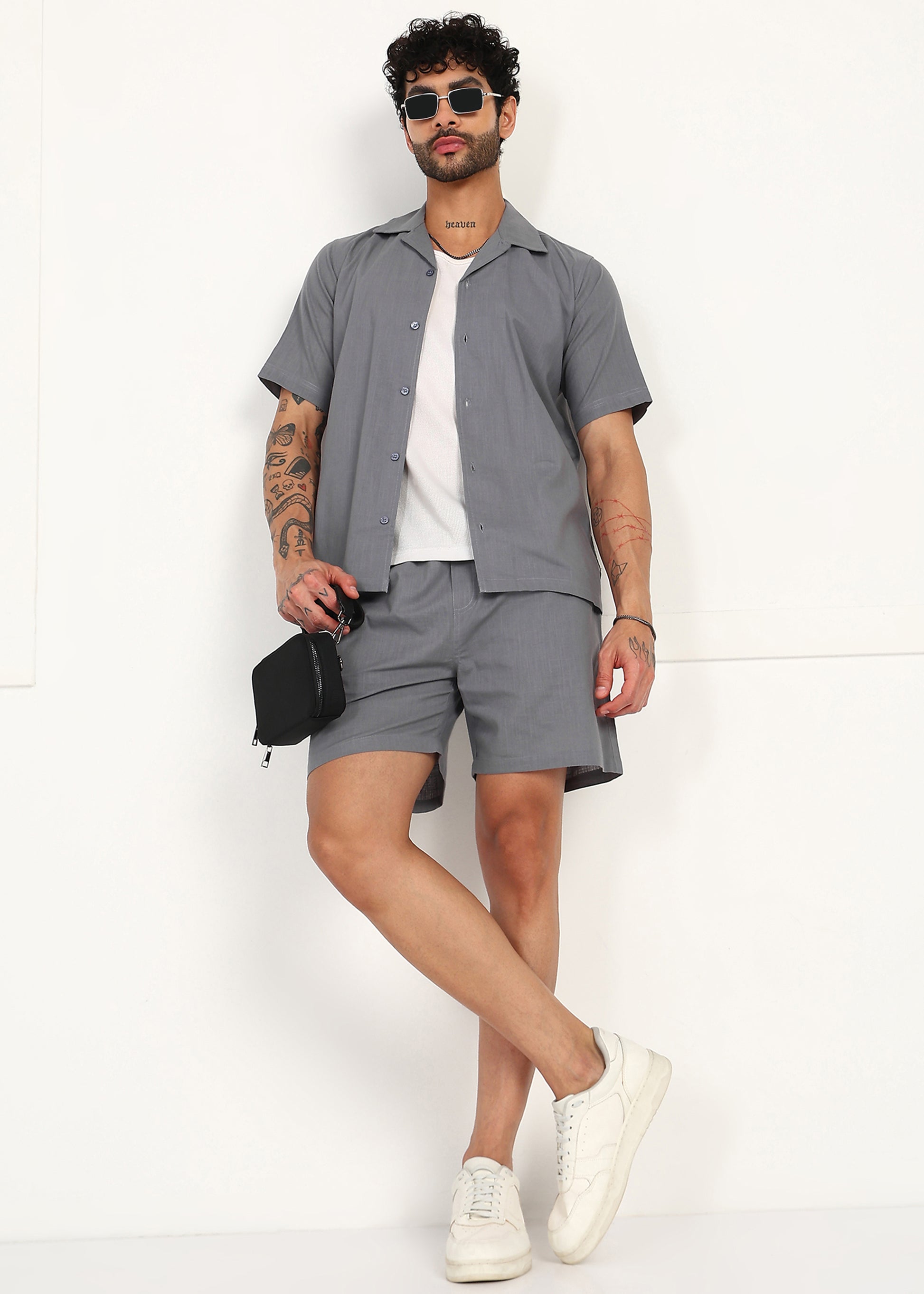 Minimal, modern, and effortlessly refined — the Fabmade Slate Ease Linen Co-Ord Set is designed for men who appreciate understated style. Crafted from breathable linen fabric, this set features a smooth grey tone that delivers a calm, contemporary aesthetic perfect for summer wear.