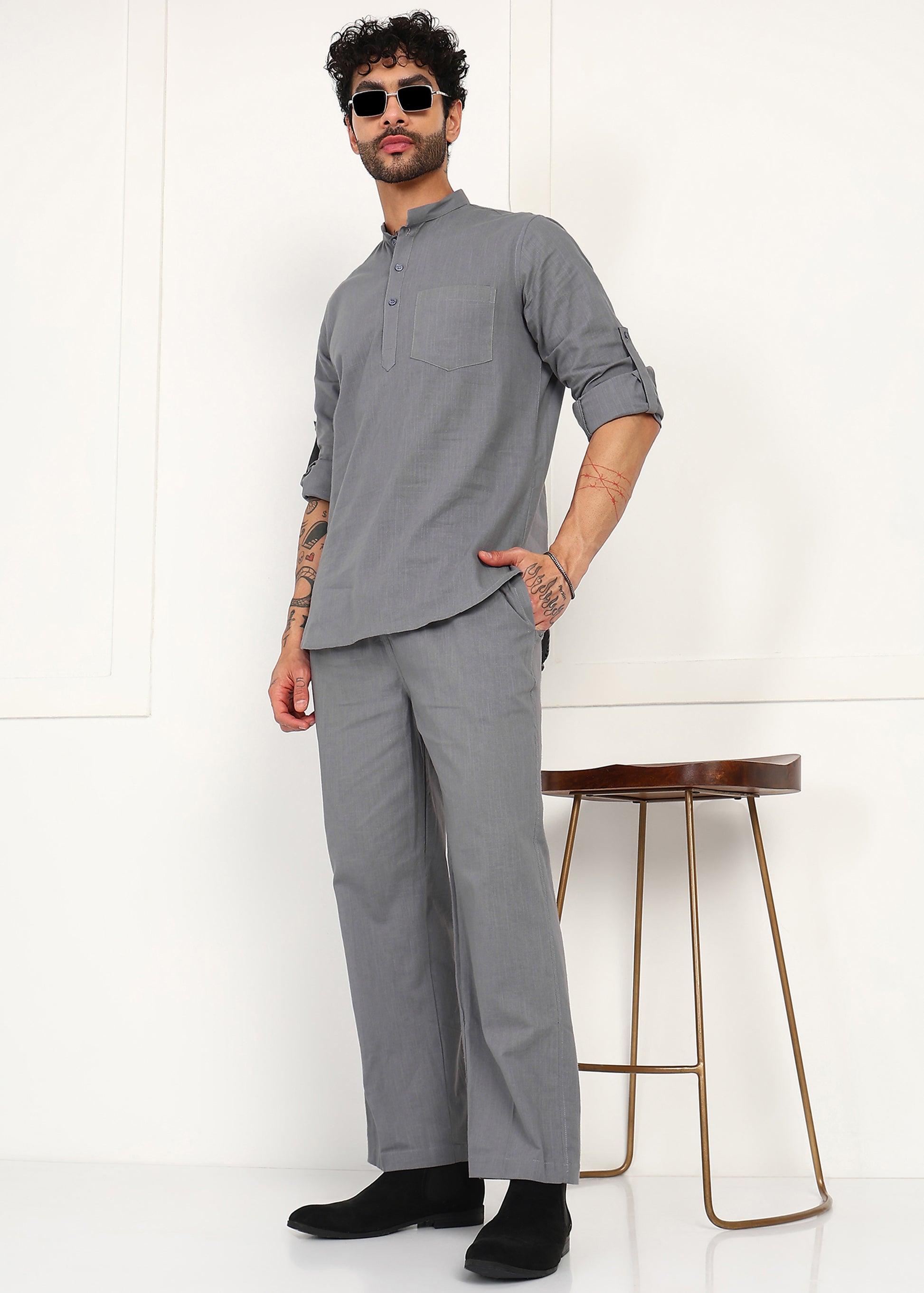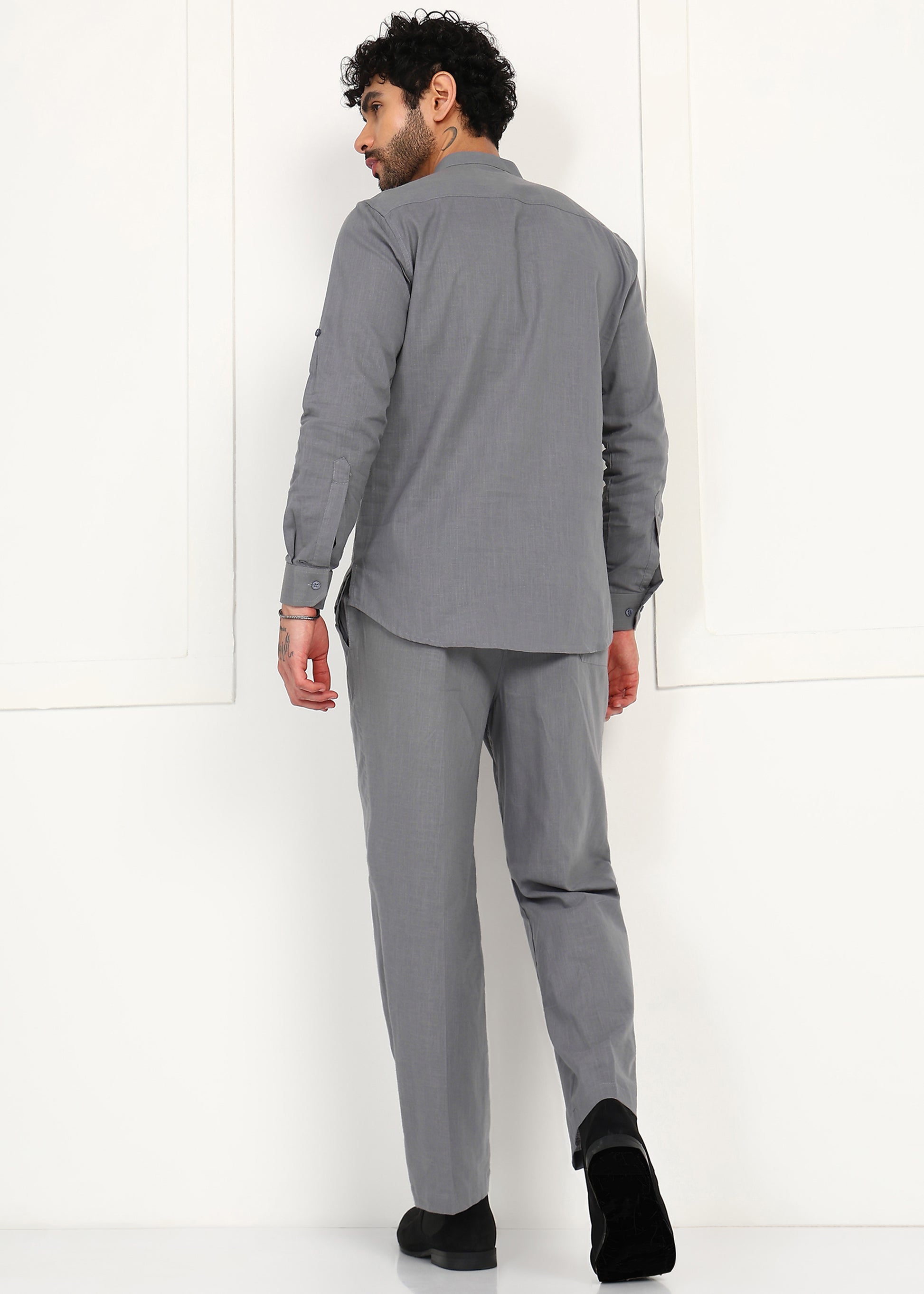 Fabmade Slate Grey Linen Short Kurta Co-Ord Set