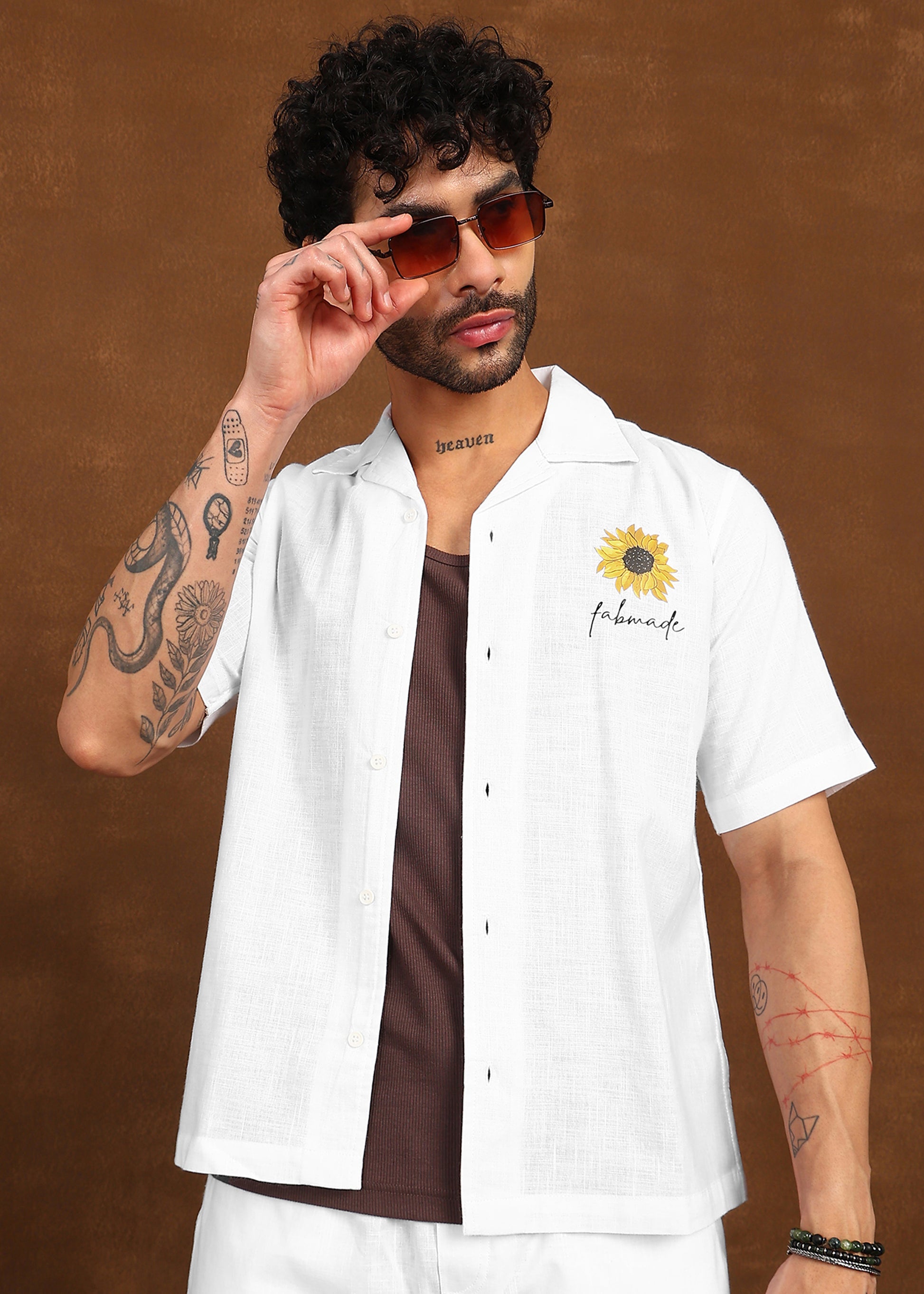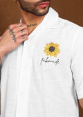 Fresh, minimal, and effortlessly uplifting, the Fabmade Sunbloom Ivory Shirt brings a touch of warmth to classic summer dressing. Crafted in a crisp ivory base, this shirt features a subtle sunflower embroidery with Fabmade signature on the chest—adding character without overpowering the look.
