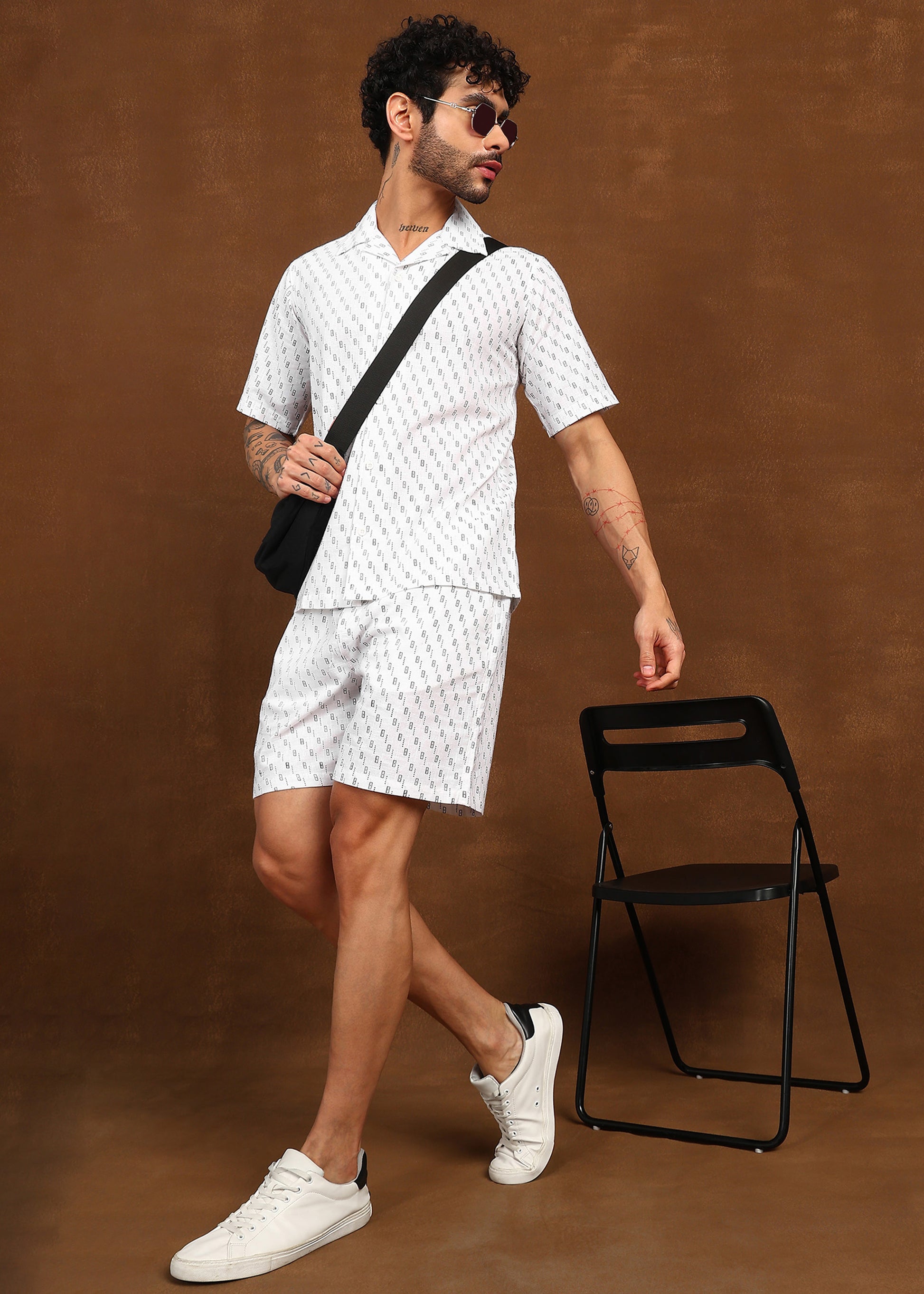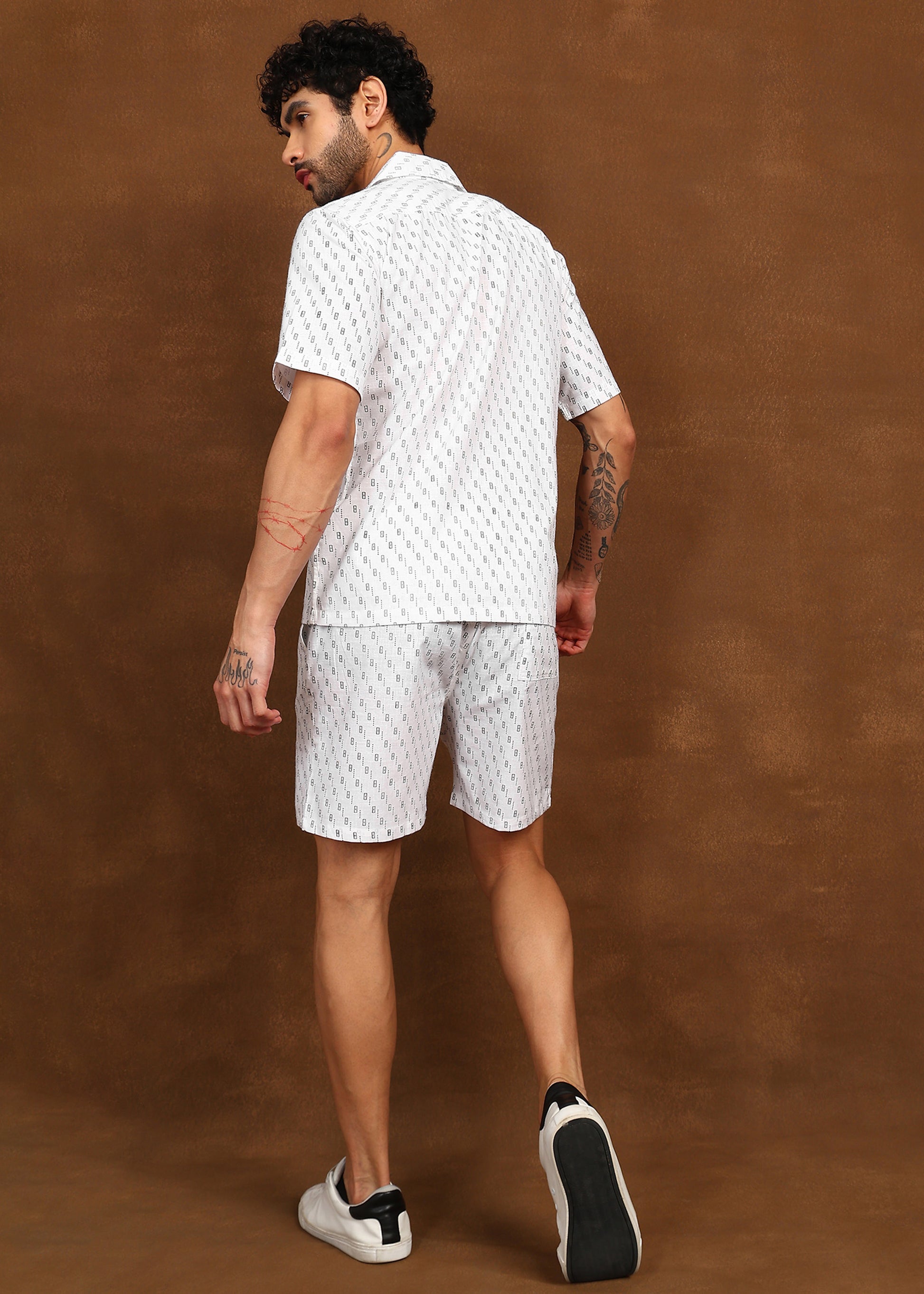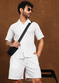 The short-sleeve shirt comes with a relaxed open collar and clean button front, while the matching shorts offer an easy, comfortable fit for all-day wear. Designed for warm weather, this co-ord set delivers a refined yet laid-back aesthetic, perfect for casual outings, vacations, and weekend styling.