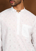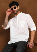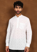 The mandarin collar and minimal button placket keep the silhouette sharp and modern, while the subtle embroidered detailing adds depth and character. Designed for warm days and relaxed occasions, this kurta blends classic ethnic roots with a contemporary, minimal aesthetic.