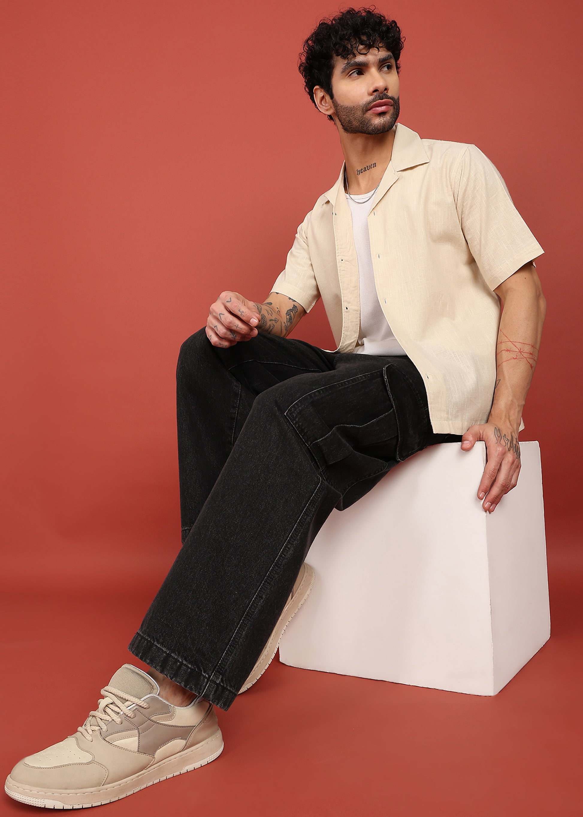 Elevate your everyday style with the Ivory Bloom Back-Print Shirt, designed for men who appreciate understated elegance with a creative edge. Crafted in a soft, breathable fabric, this shirt features a clean solid front paired with a bold floral back print that adds character without overpowering the look. The relaxed Cuban collar and short sleeves make it perfect for warm days, casual outings, and statement styling. Effortlessly versatile, it pairs well with denim, trousers, or shorts for a refined yet modern vibe.