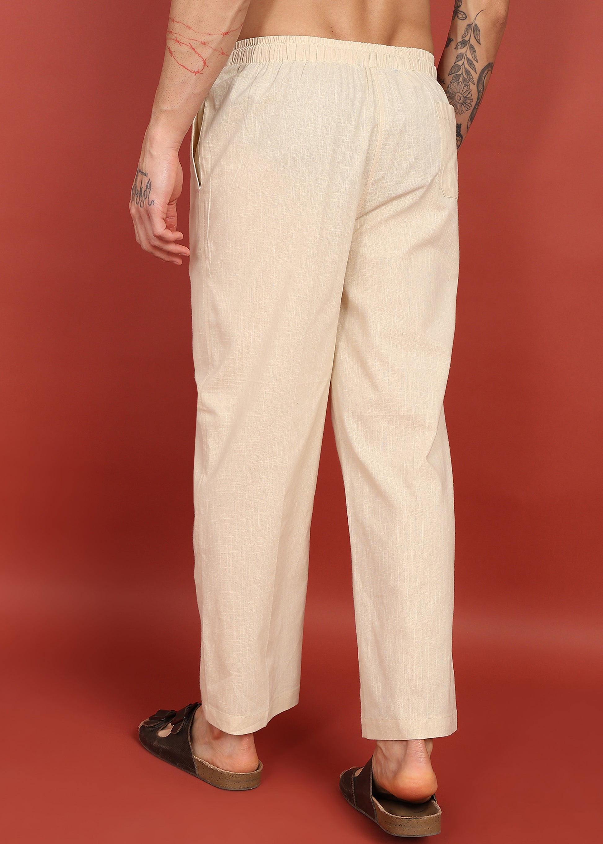Step into everyday comfort with the Ivory Comfort Linen Pyjama. Designed with a relaxed straight fit and elasticated waistband with adjustable drawstring, this pyjama offers effortless wear and breathable comfort. Crafted from lightweight fabric with a soft natural texture, it’s perfect for pairing with kurtas, short kurtas, or shirts. Ideal for festive wear, casual ethnic looks, or elevated lounge styling.