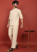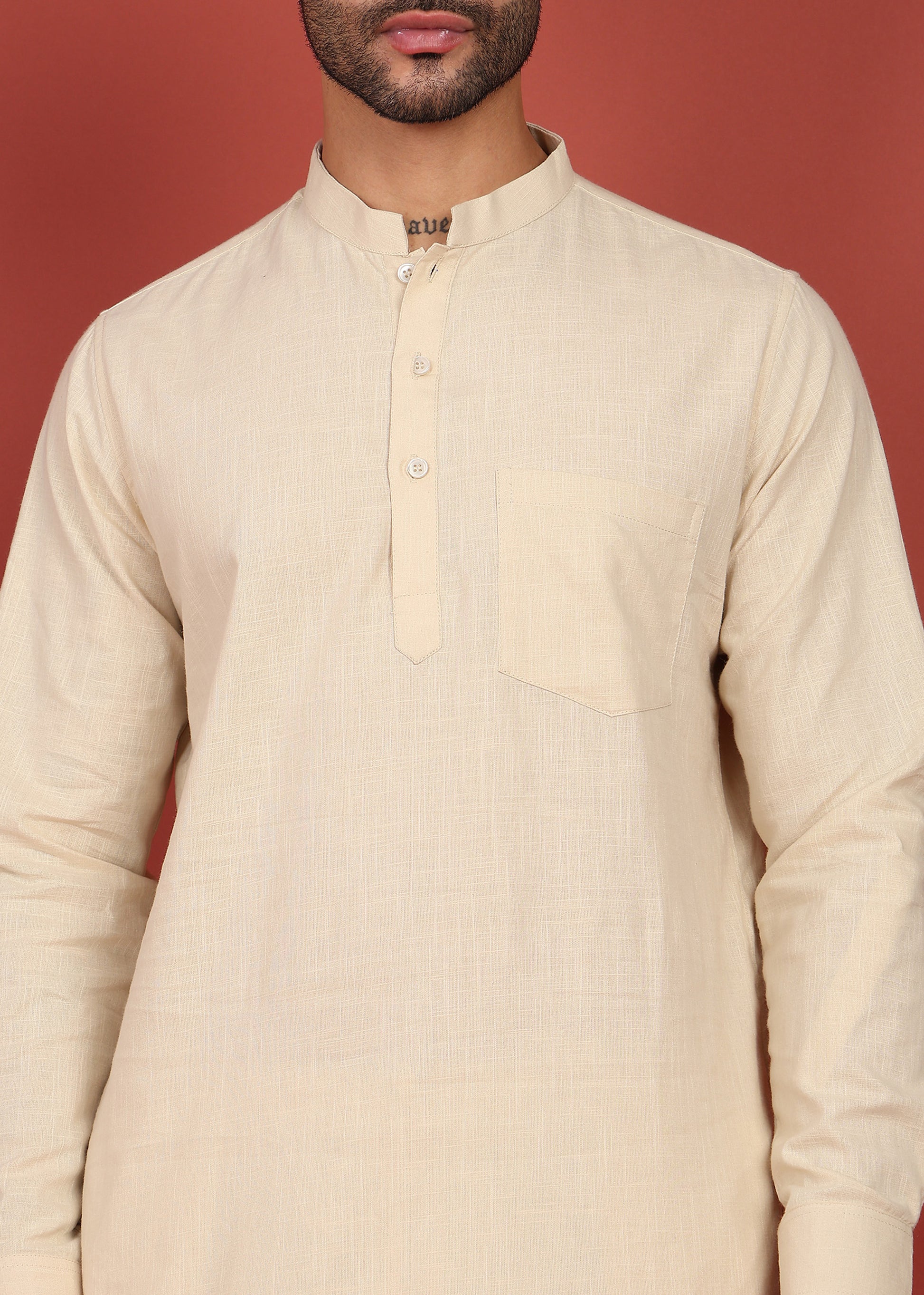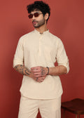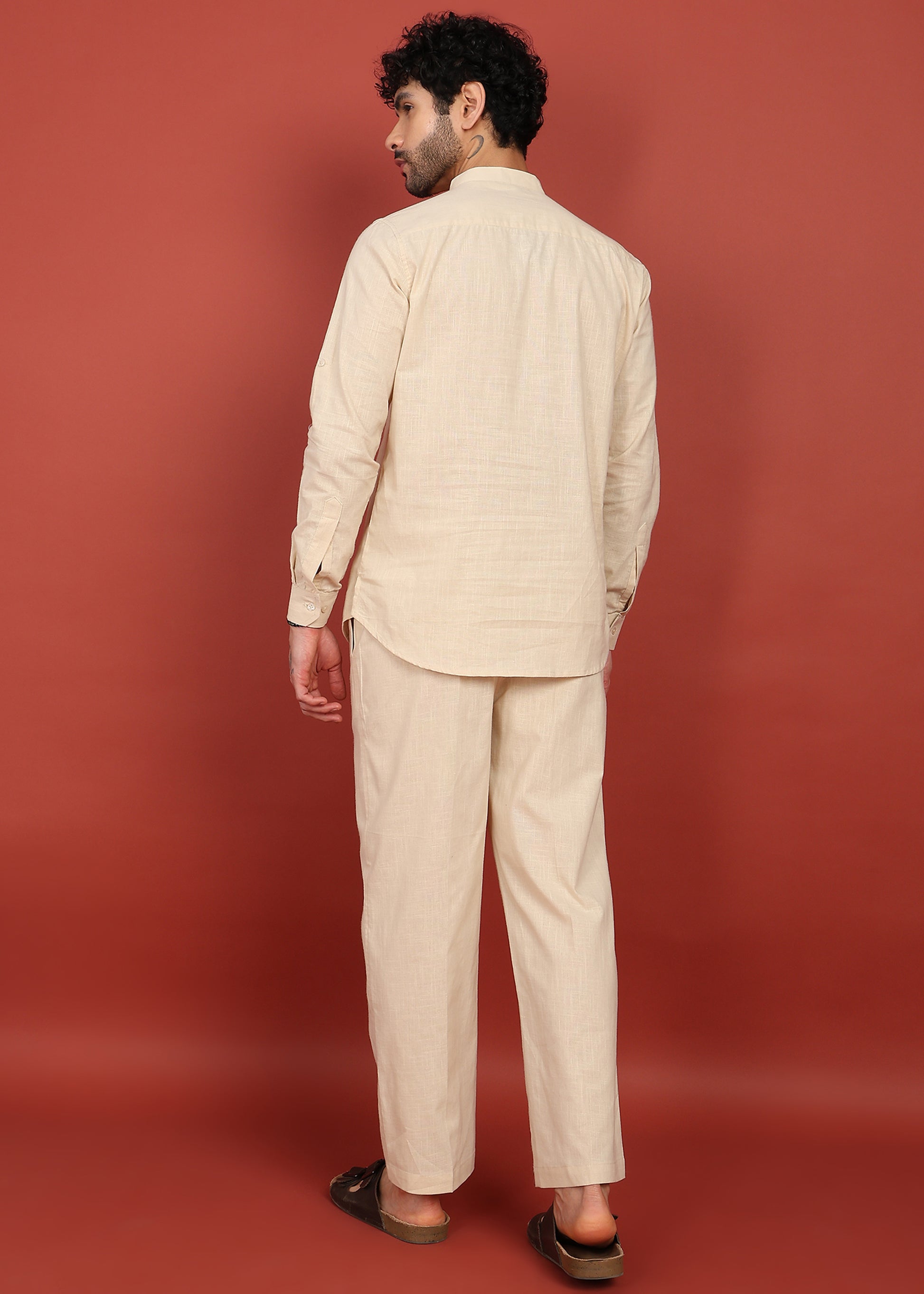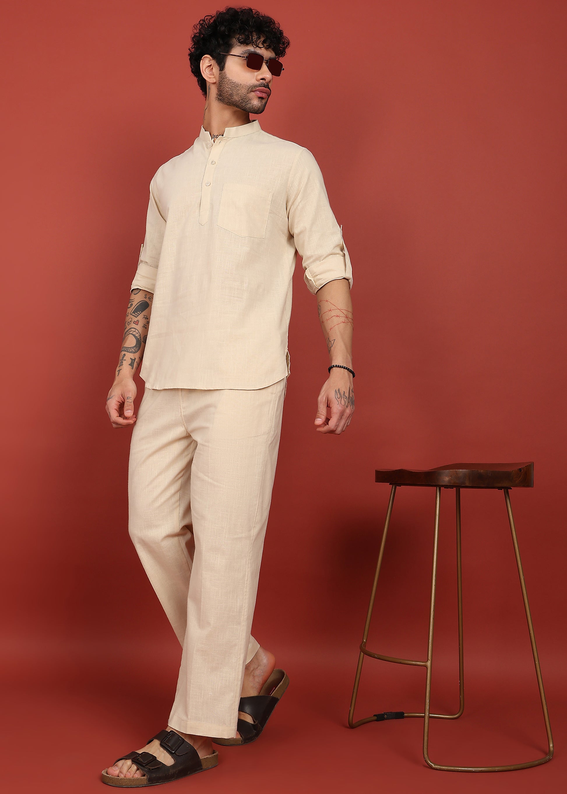 Redefine effortless elegance with the Ivory Ease Short Kurta Co-ord Set. Designed in a soothing ivory tone, this coordinated set features a minimalist short kurta paired with relaxed straight-fit bottoms for a clean and contemporary silhouette. Crafted from breathable, lightweight fabric, it ensures all-day comfort while maintaining a refined look. Ideal for festive gatherings, casual ethnic wear, or elevated everyday styling, this set blends traditional charm with modern simplicity.