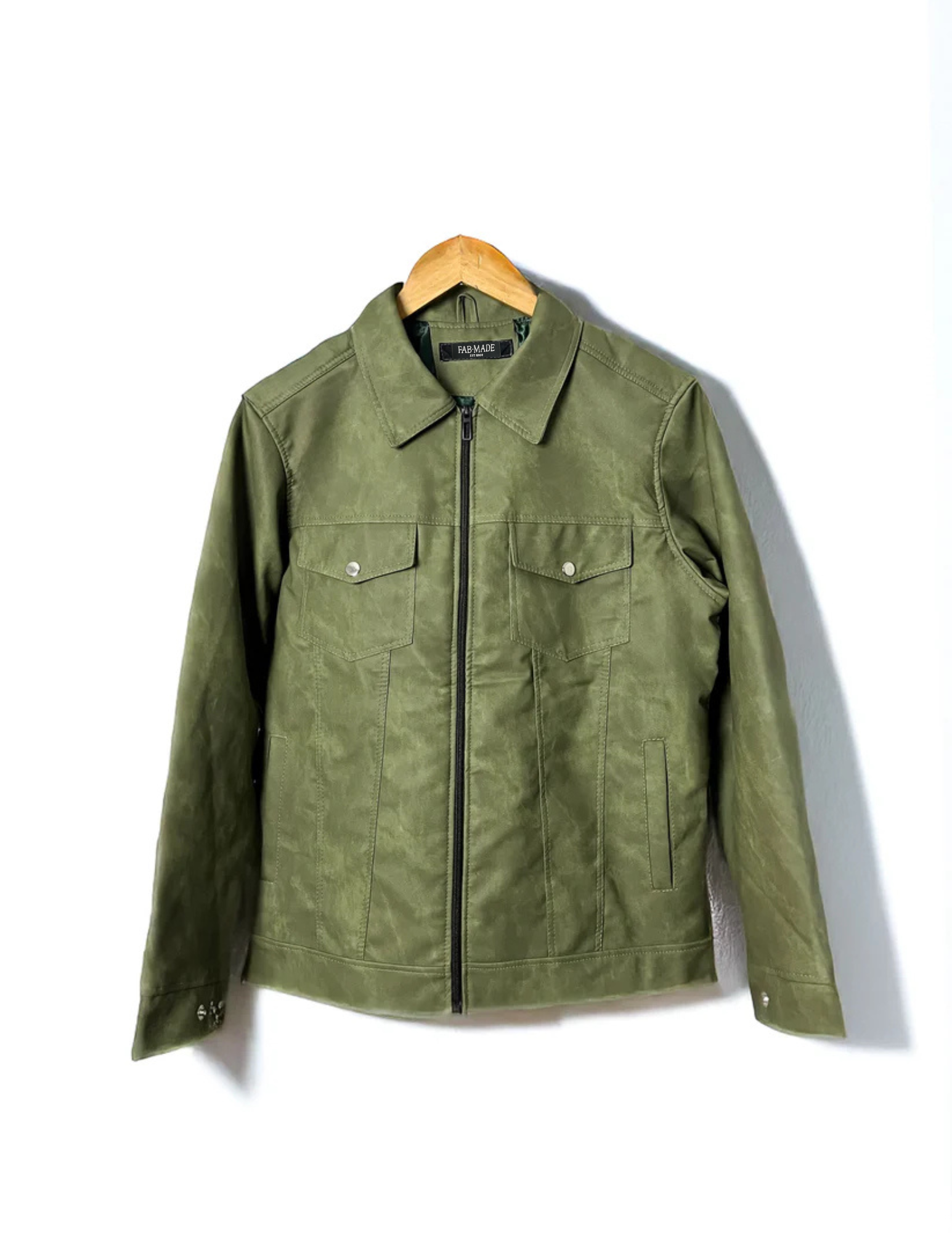 Channel the bold, rebellious spirit of Riverdale with this iconic leather shacket in Olivewood. Crafted in high-quality faux or genuine leather, it features biker-style staples like a sharp lapel collar, bold contrast details, and sleek zip closure. Whether you're repping Jughead’s grit or Archie’s cool edge, this piece delivers serious drama and style. #FabMade #RiverdaleEdition #DesiDrip #ShacketSwag"