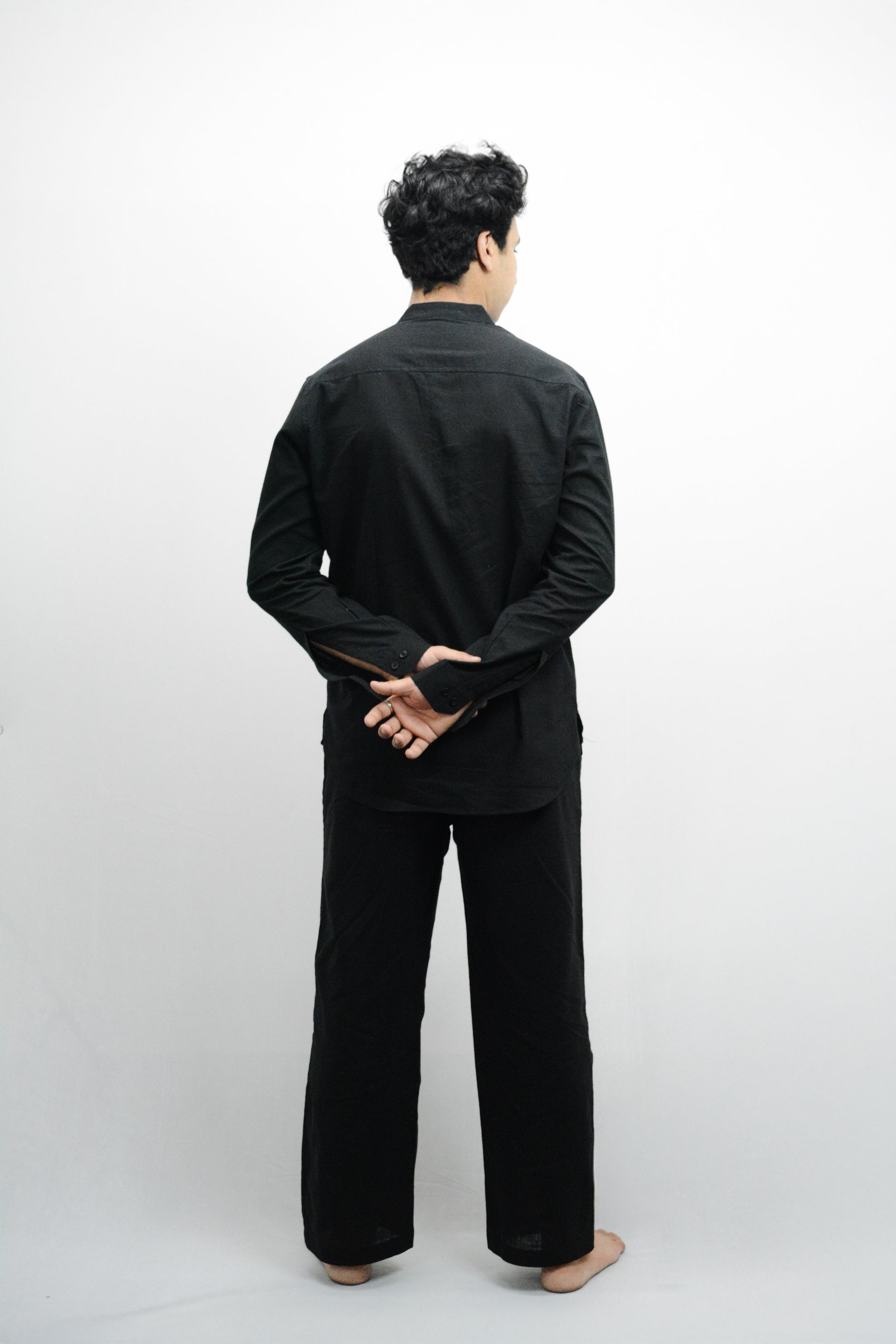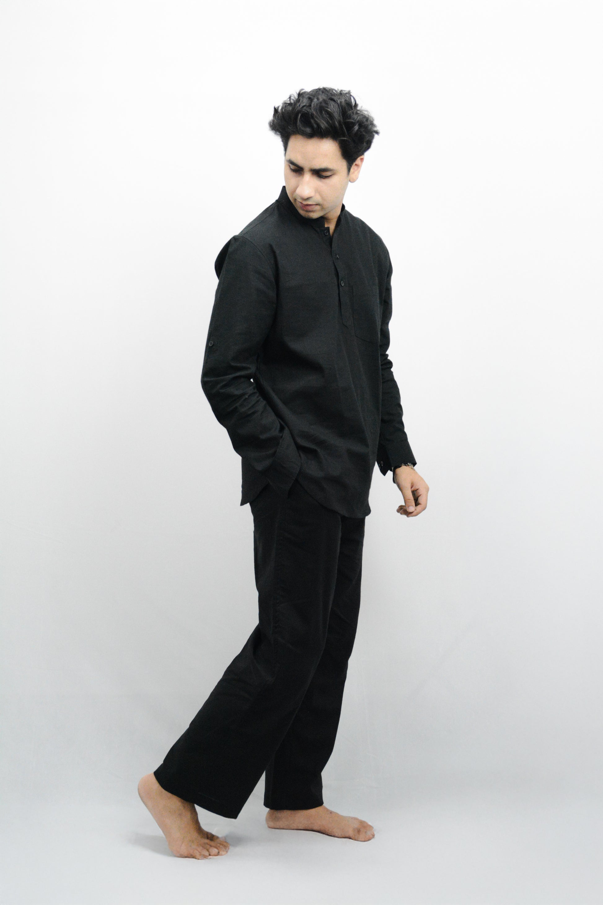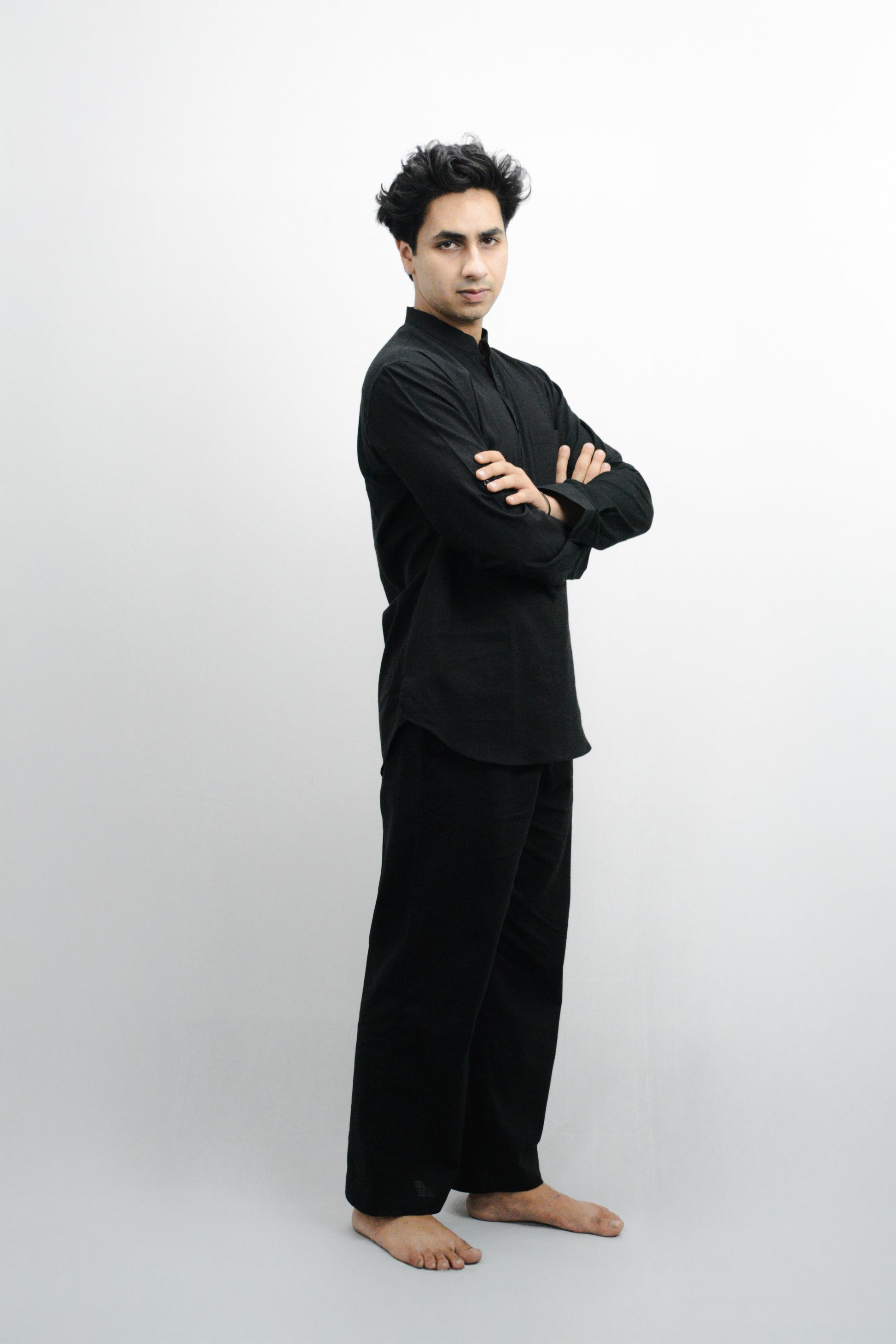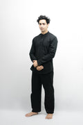 A go-to outfit for your daily routine. This black cotton co-ord set is soft, breathable, and made for all-day comfort. It includes a full sleeve shirt with a collar and regular fit pants with two handy pockets. Perfect for daily wear, casual workdays, travel, or just relaxing.