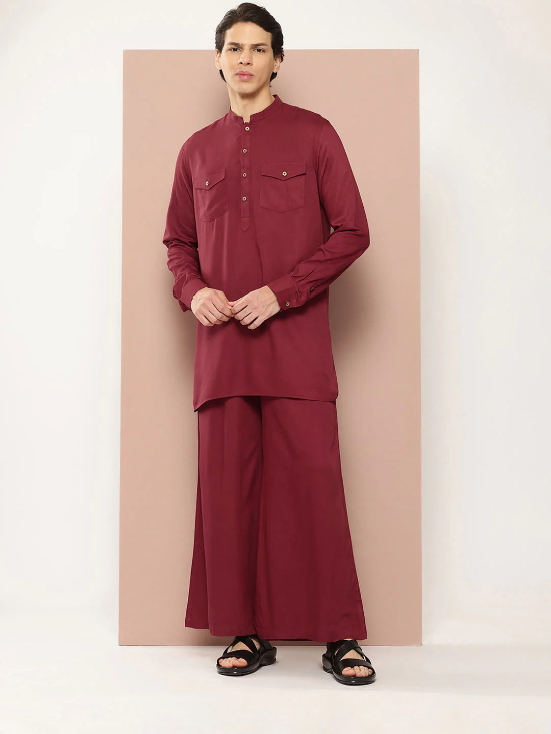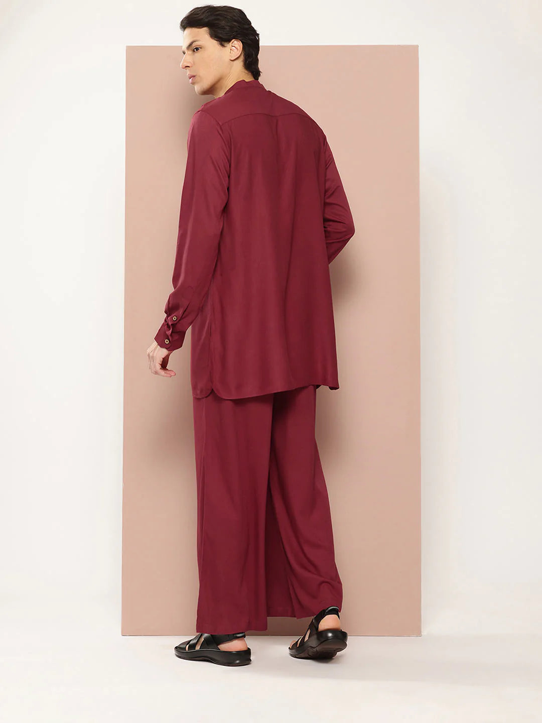 🍷 Men’s Maroon Rayon Co-ord Set – Bold, Soft & Comfortable