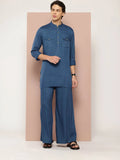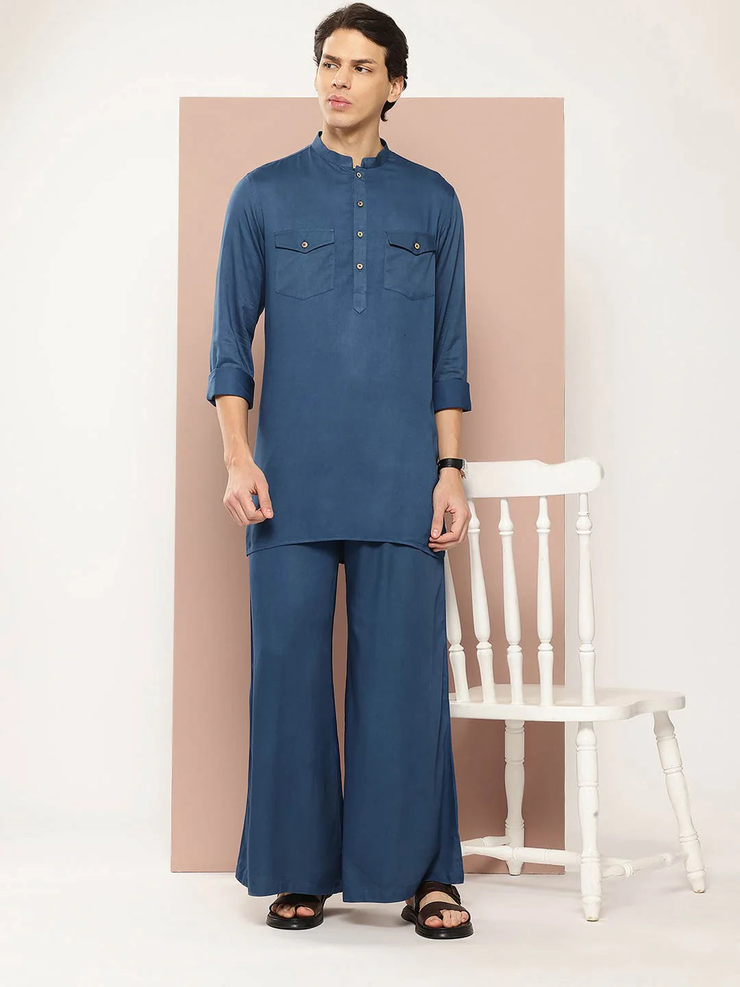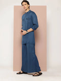 Meet your new go-to set. This navy blue co-ord brings together clean design and easy comfort in a premium rayon fabric that moves with you. Featuring a full-sleeve shirt with a collar neck and regular fit pants with just the right amount of room, it’s made for everything from slow mornings to spontaneous evenings out.