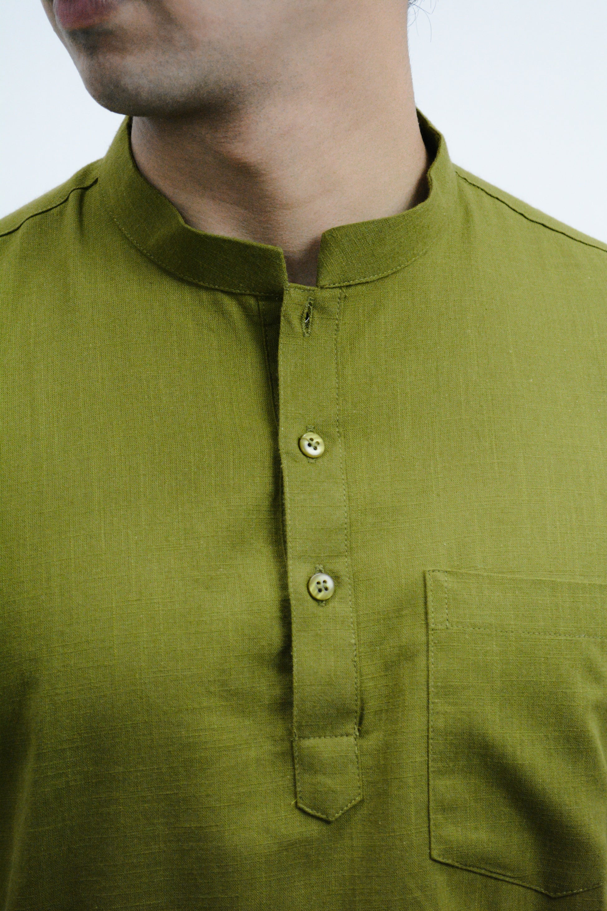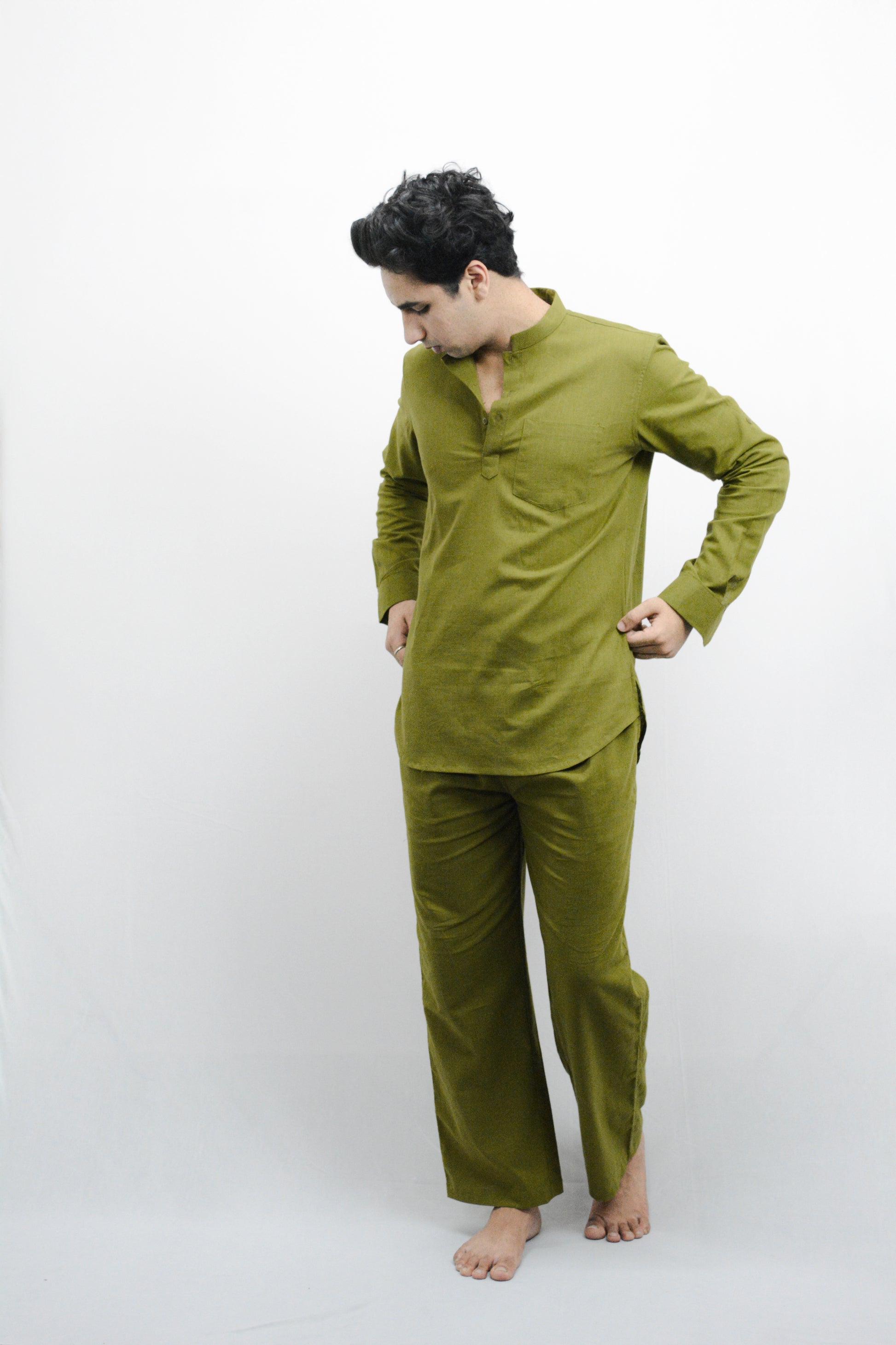 Men’s Cotton Solid Co-ord Set – Olive Green