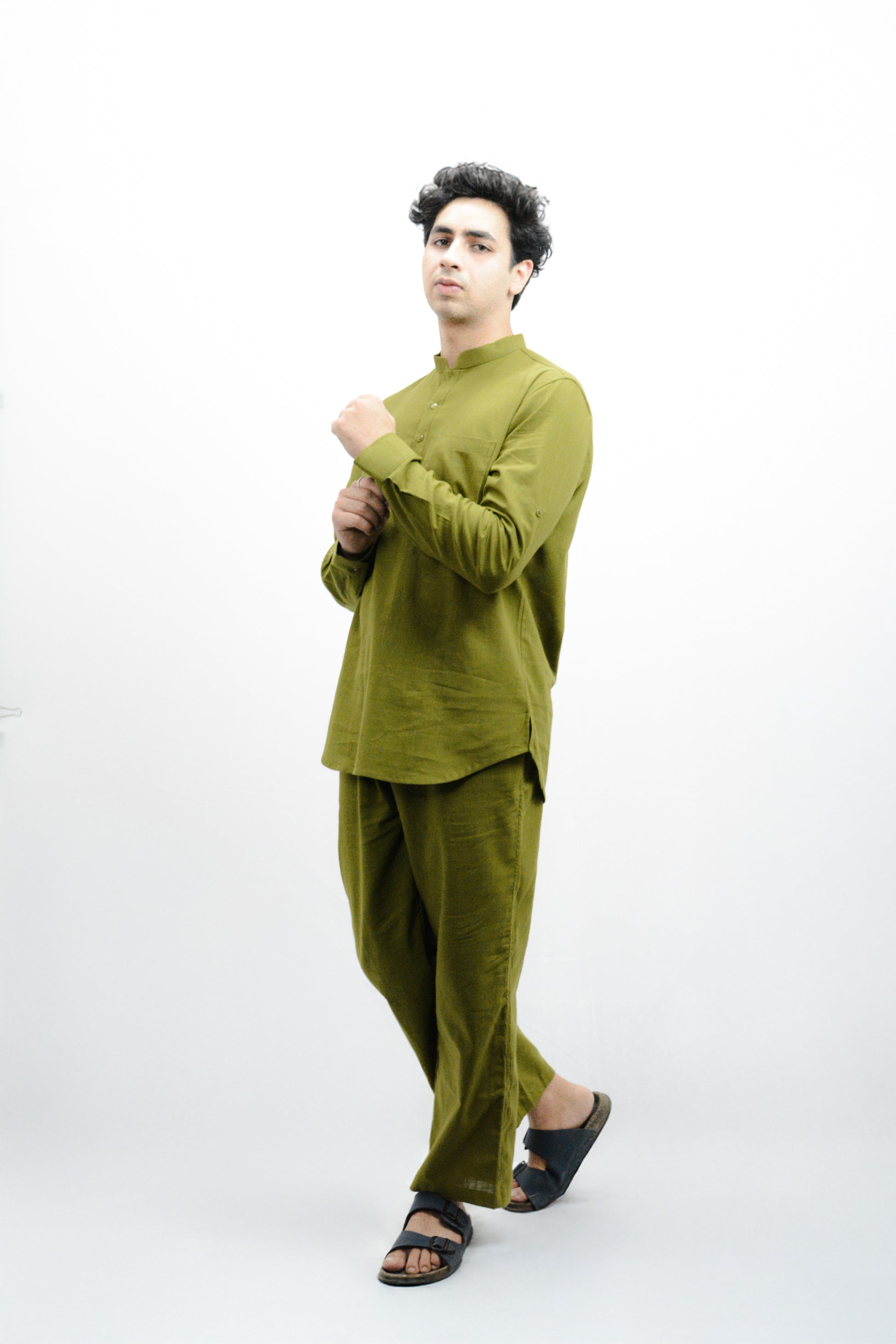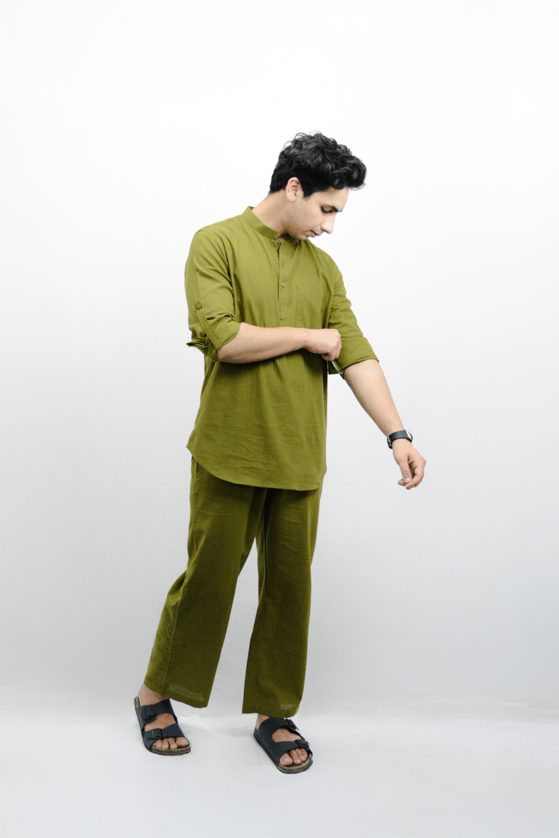 Stay effortlessly stylish every day with this Men’s Olive Green Cotton Co-ord Set. Designed for daily wear, this versatile outfit combines comfort and simplicity with a modern edge. Made from soft, breathable 100% cotton, it features a solid olive green color that complements any skin tone and works well for both casual and semi-casual occasions.