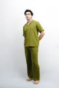 Men’s Cotton V Solid Co-ord Set – Olive Green