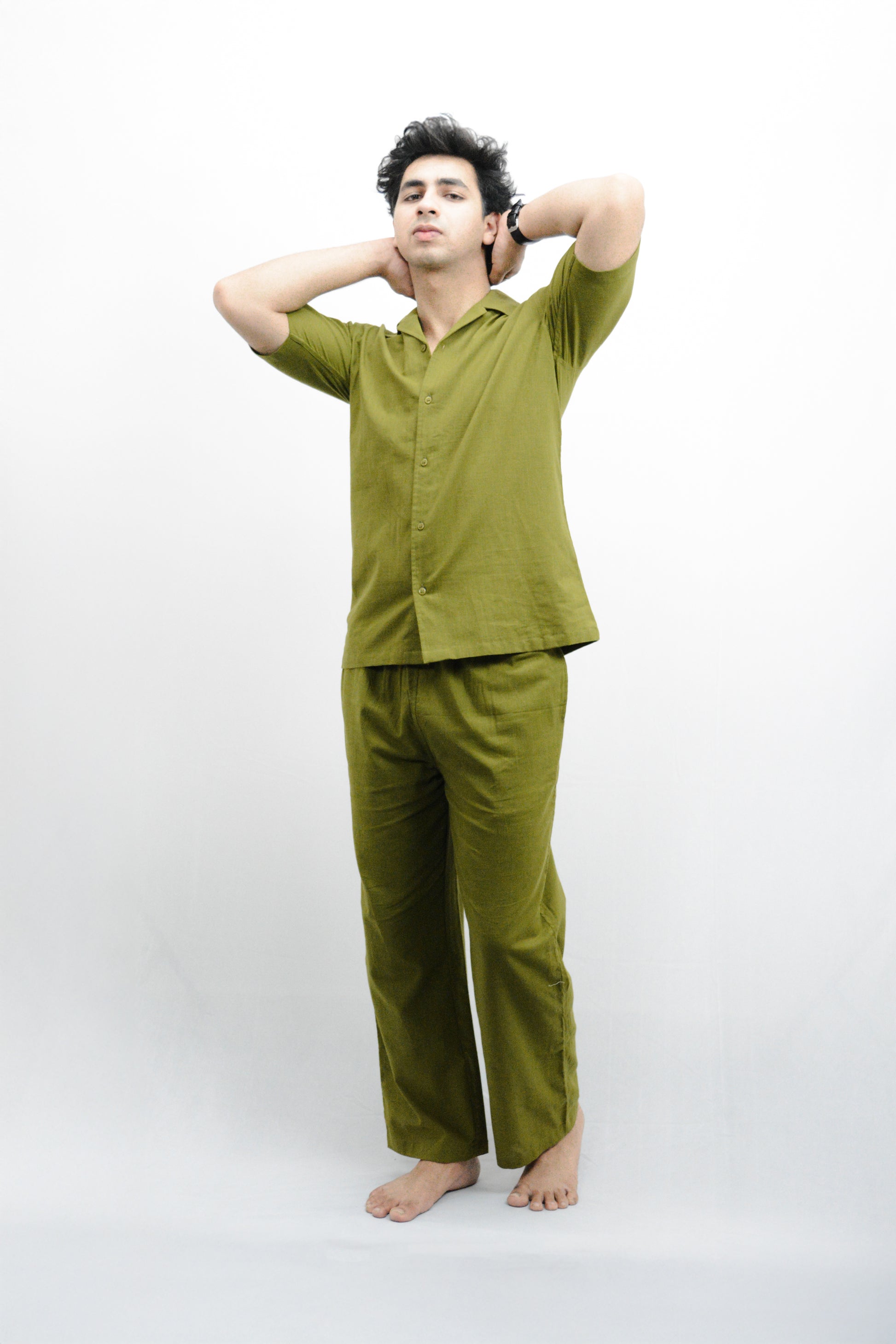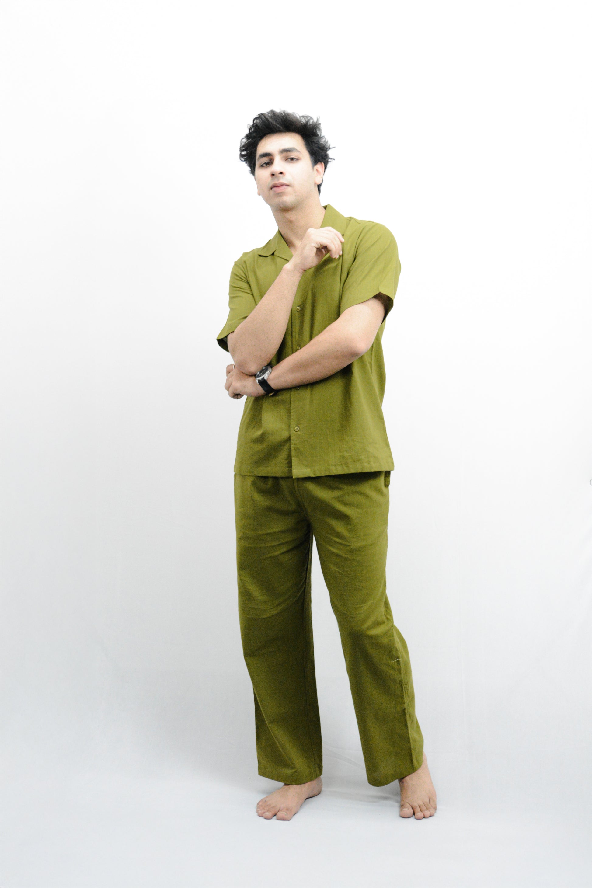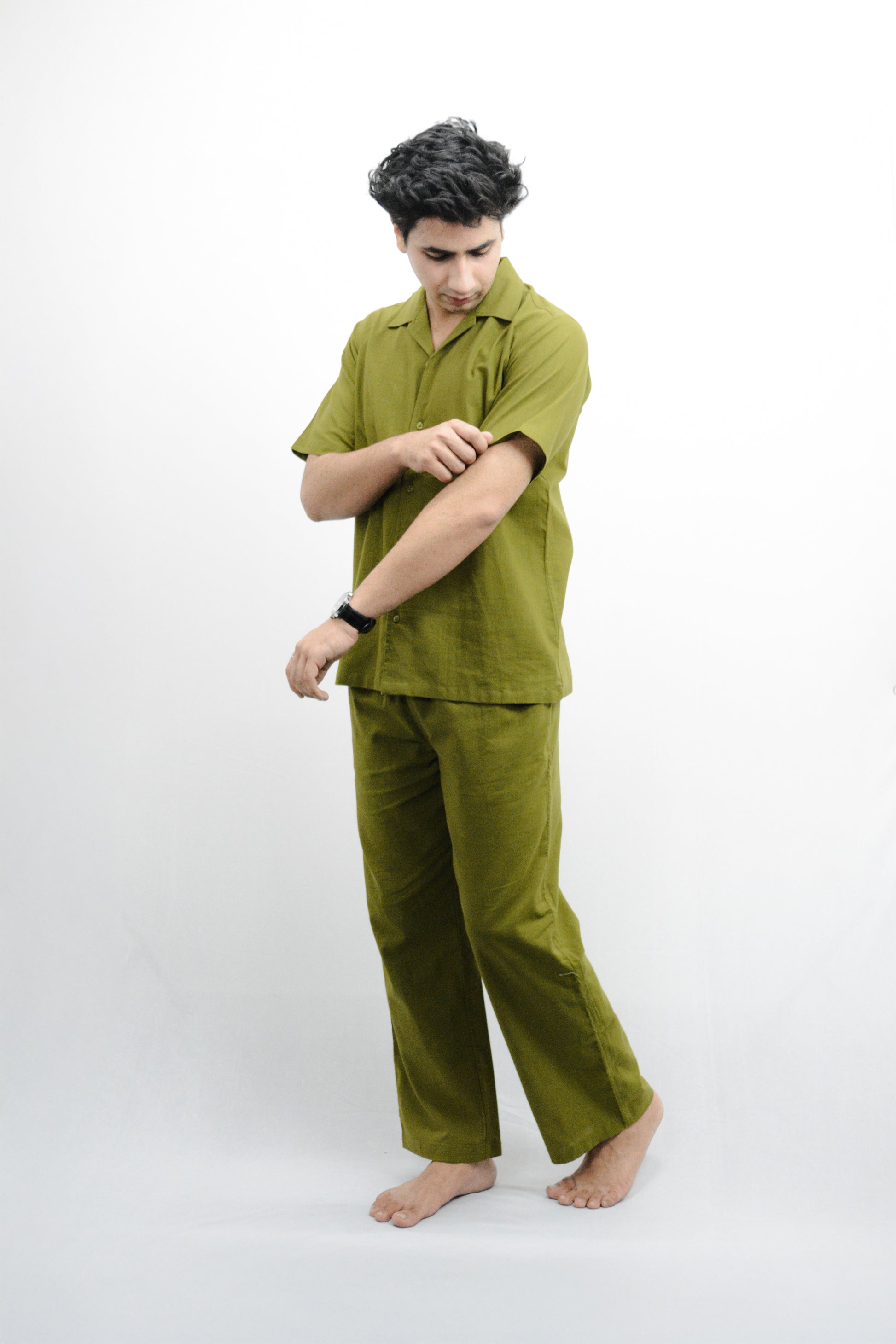 Stay effortlessly stylish every day with this Men’s Olive Green Cotton Co-ord Set. Designed for daily wear, this versatile outfit combines comfort and simplicity with a modern edge. Made from soft, breathable 100% cotton, it features a solid olive green color that complements any skin tone and works well for both casual and semi-casual occasions.