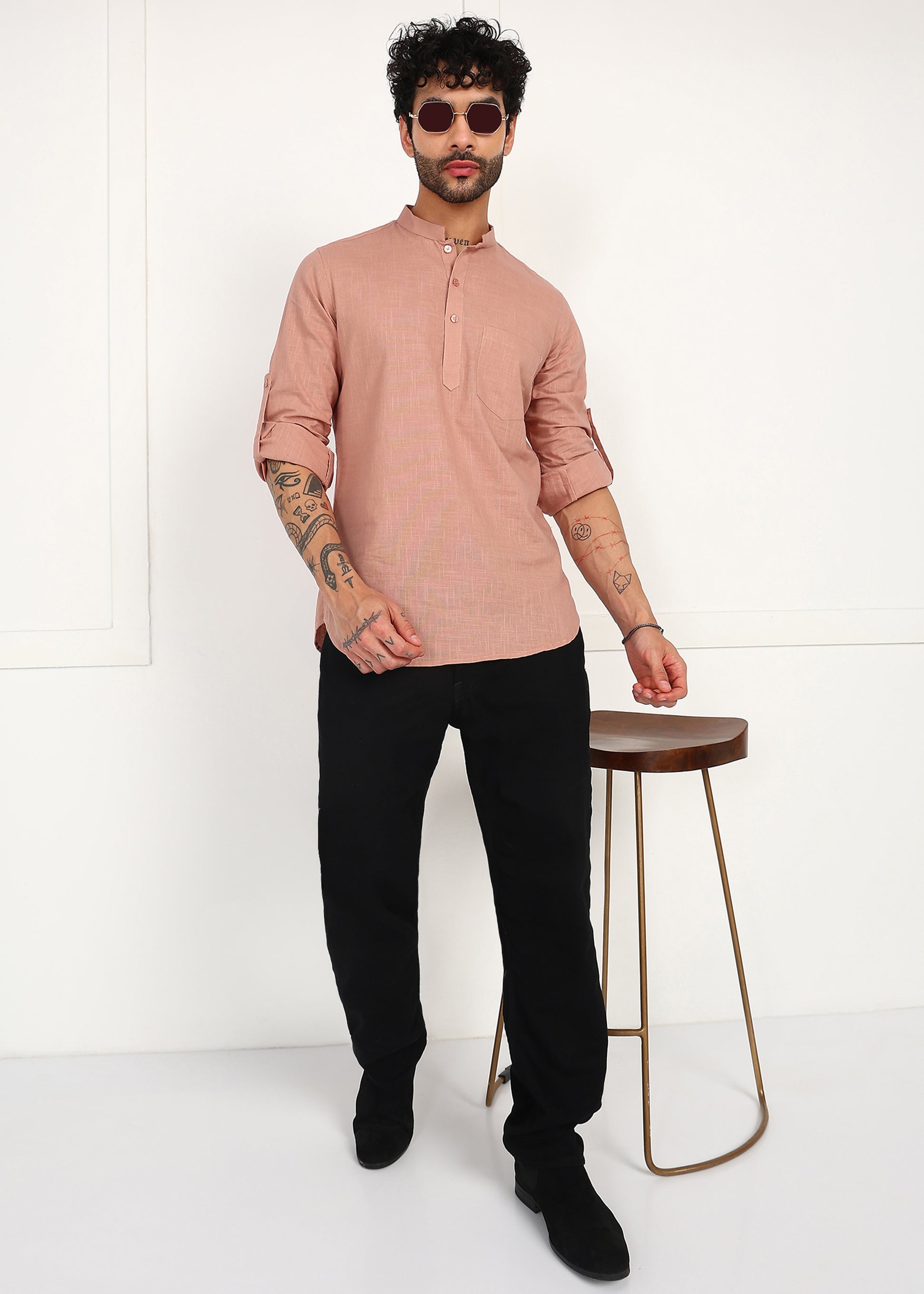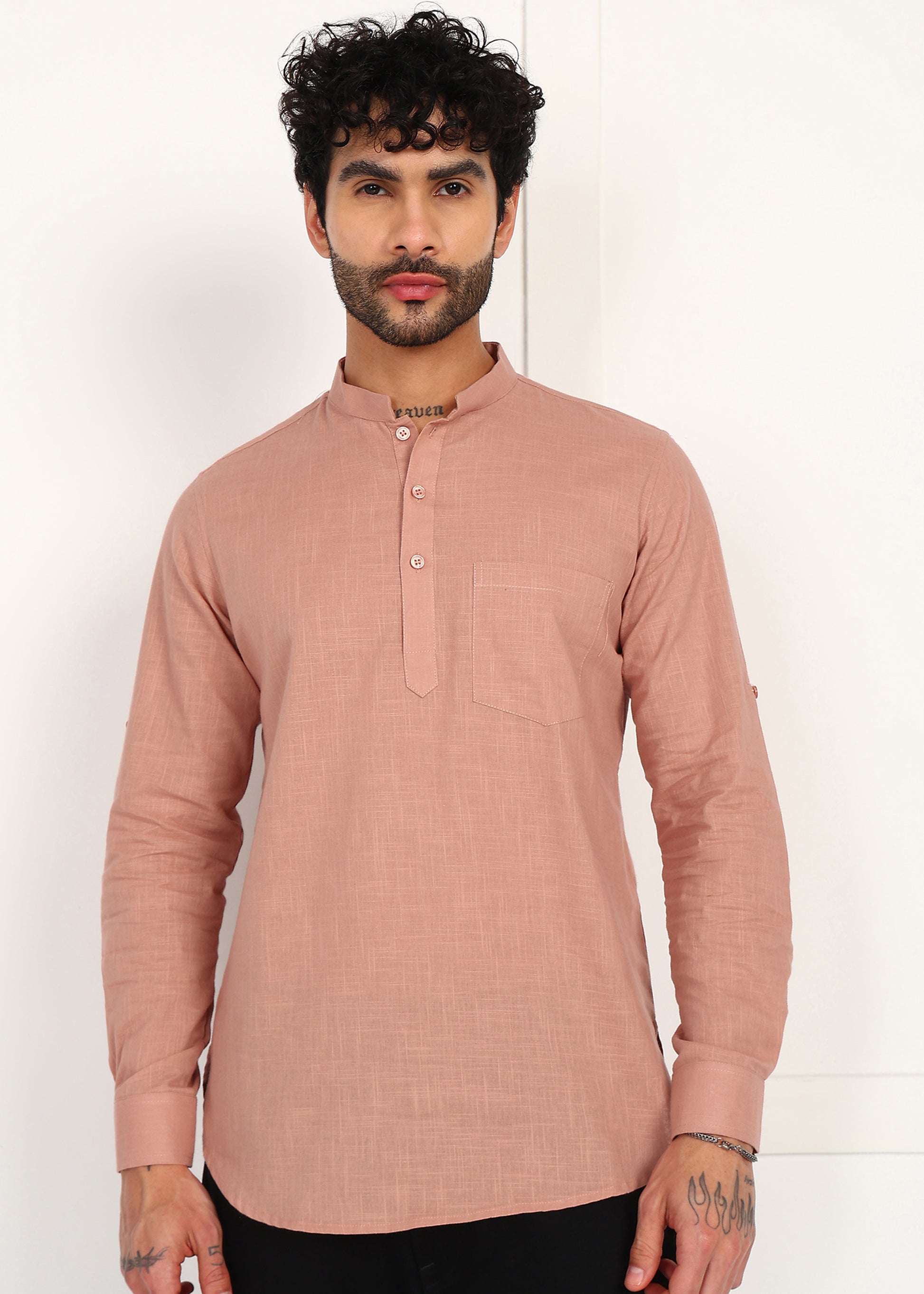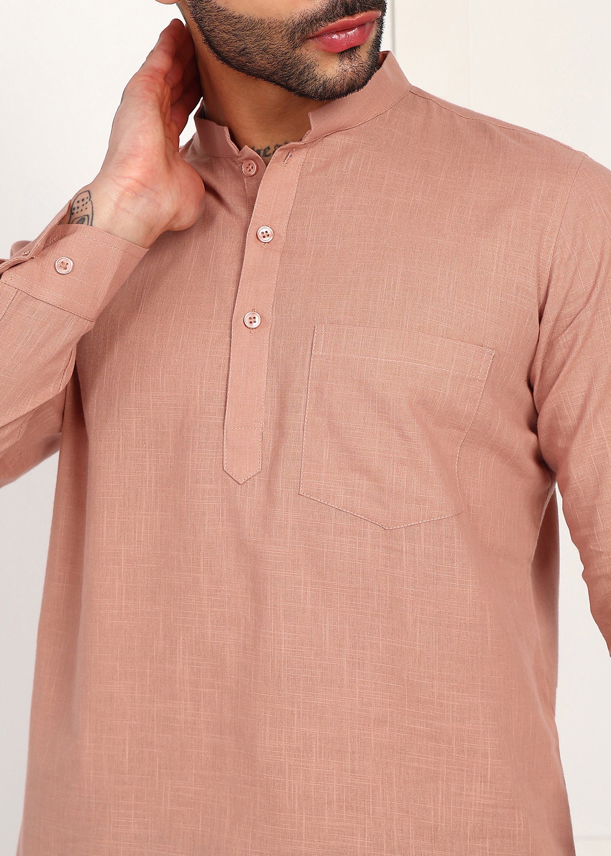 Men’s Peach Linen Short Kurta