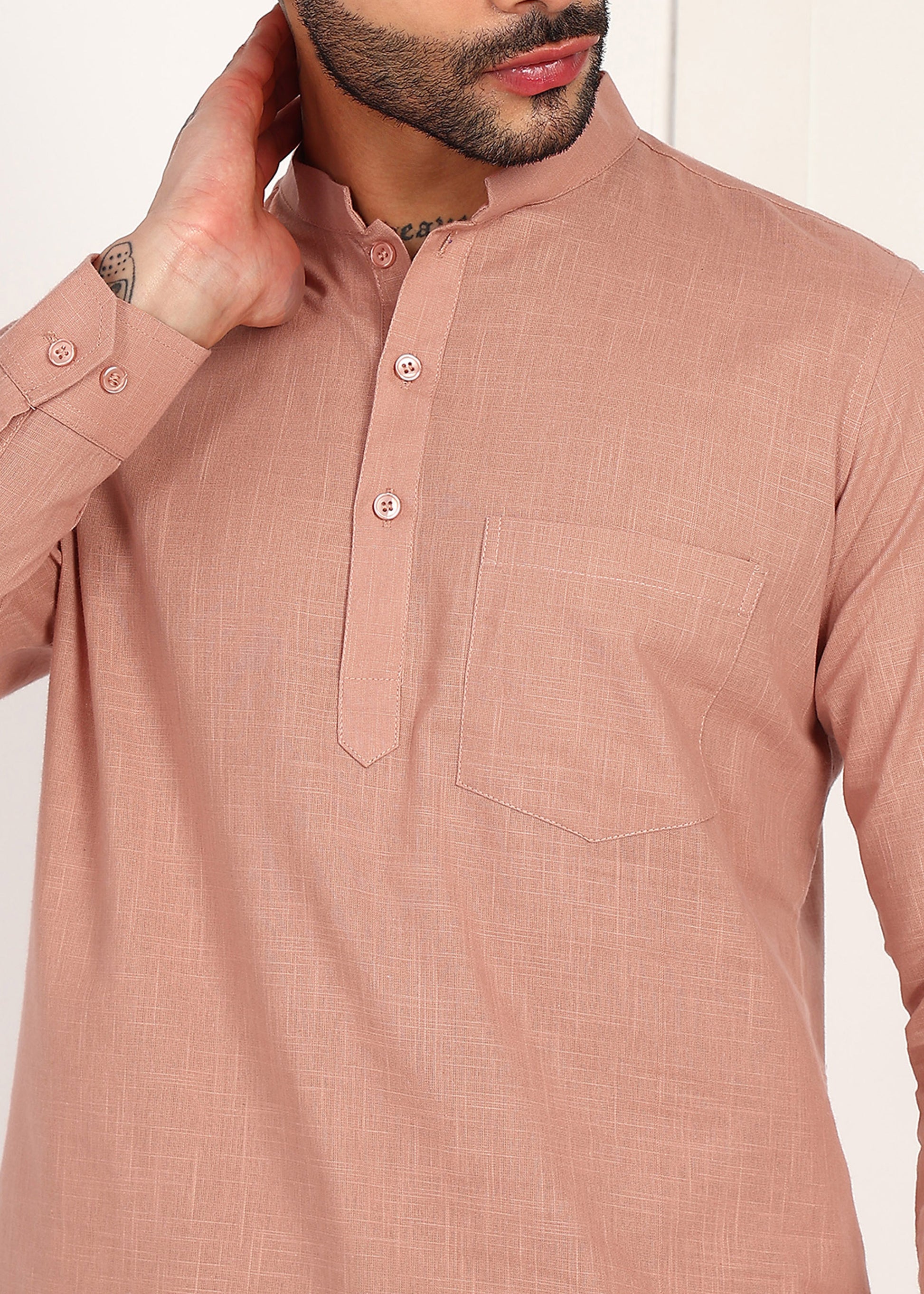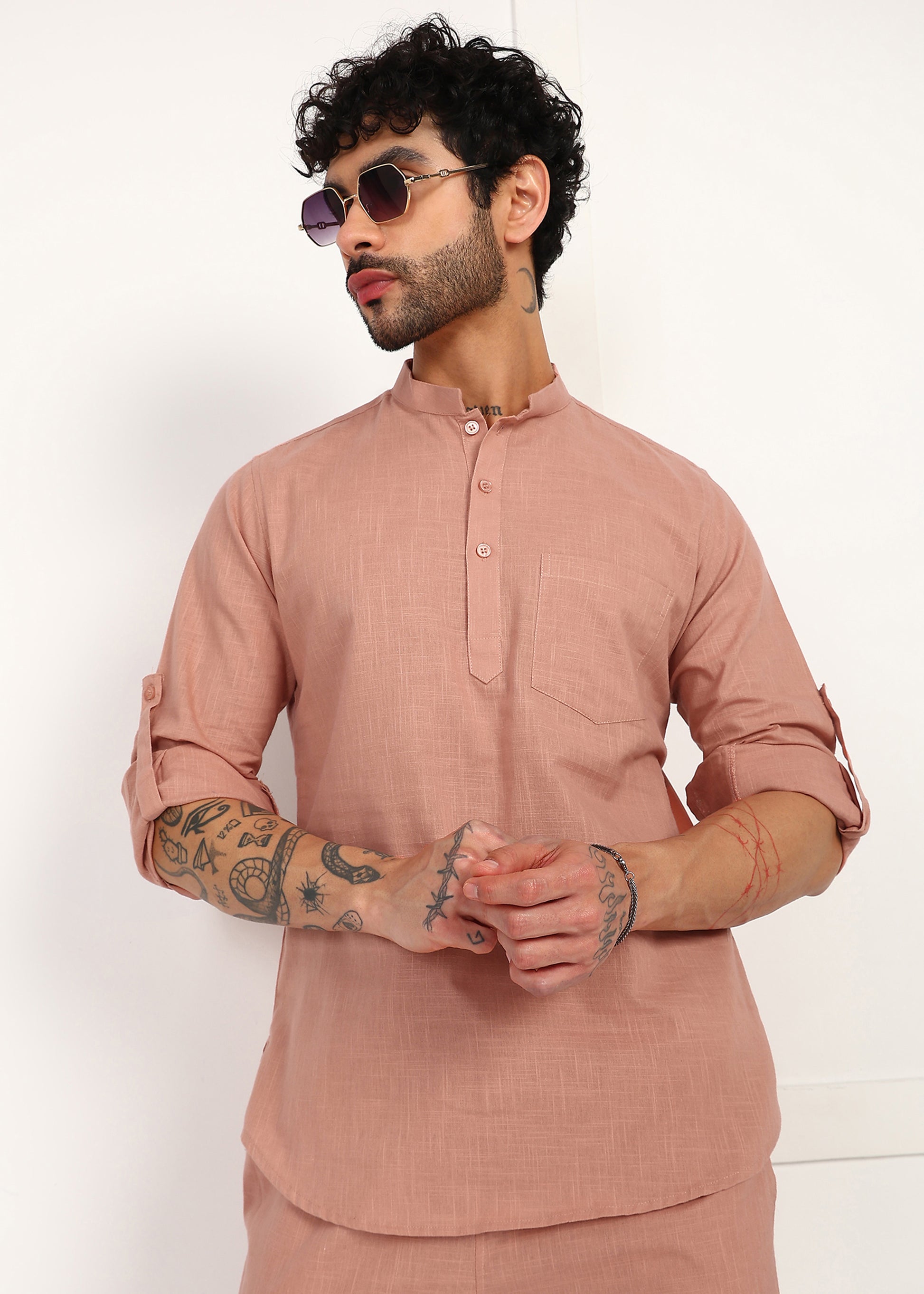 Elevate your everyday ethnic style with this Men’s Peach Linen Short Kurta Set, designed for modern comfort and effortless elegance. Crafted from lightweight, breathable linen fabric, this set is perfect for warm weather, festive days, and relaxed gatherings.