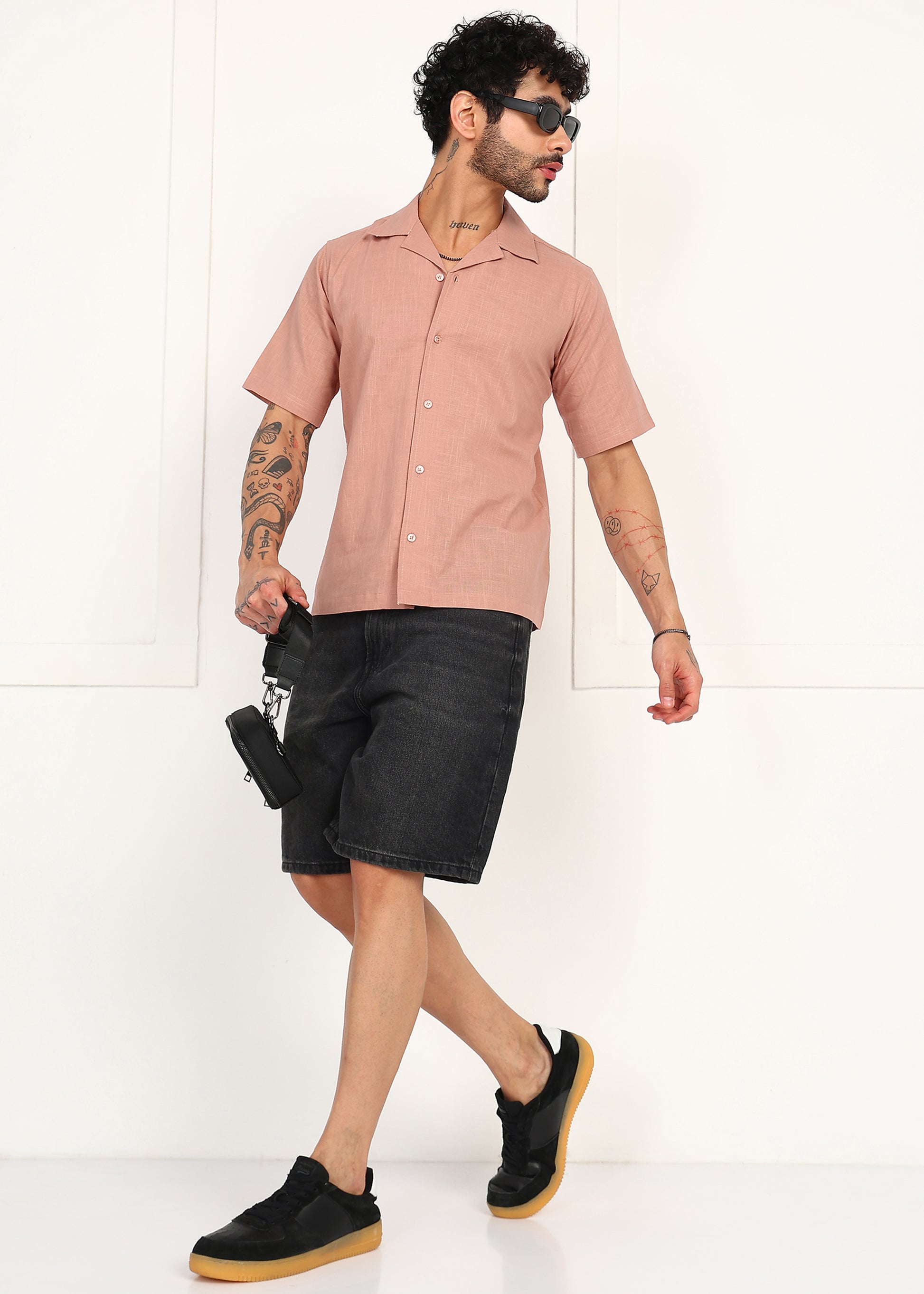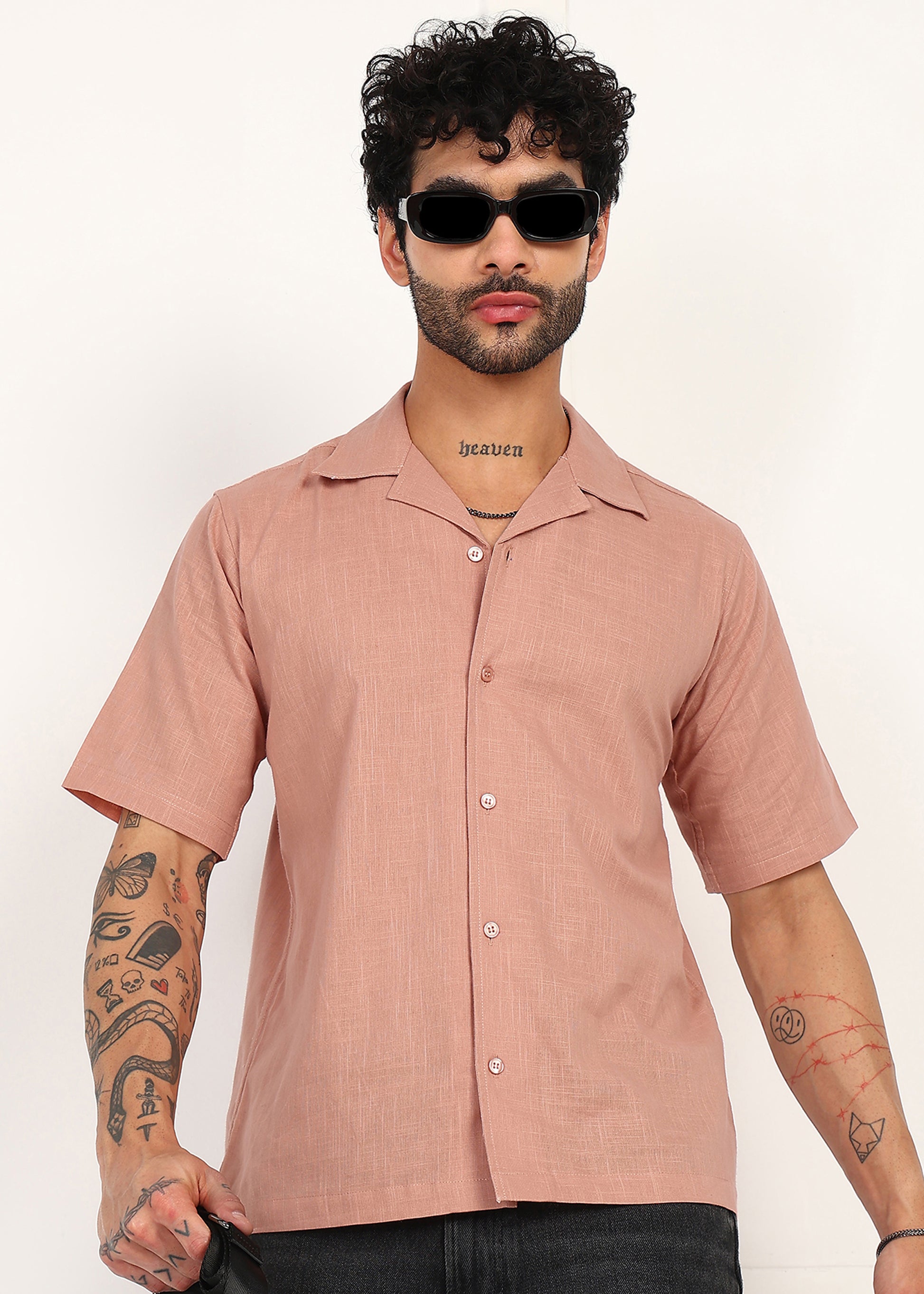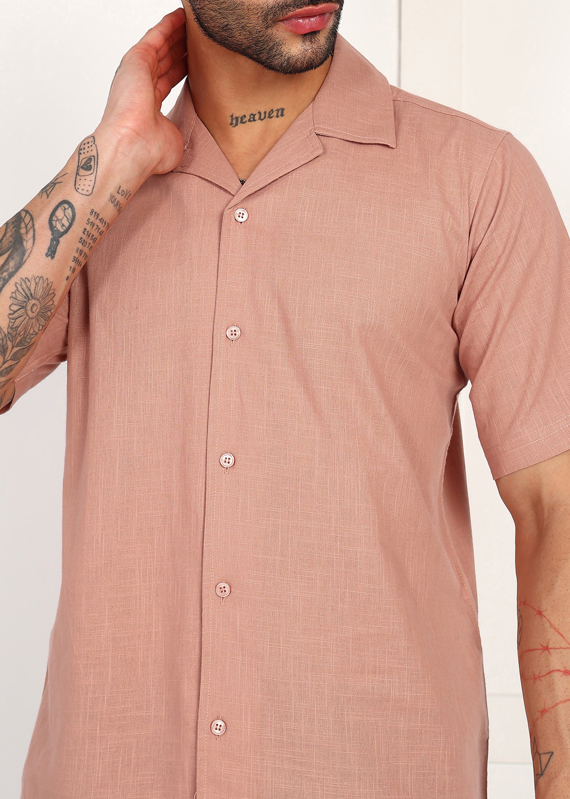 Elevate your everyday style with this men’s peach linen short-sleeve shirt, designed for effortless comfort and modern appeal. Crafted from breathable, lightweight linen fabric, this shirt offers a soft texture and airy feel—perfect for warm-weather wear.