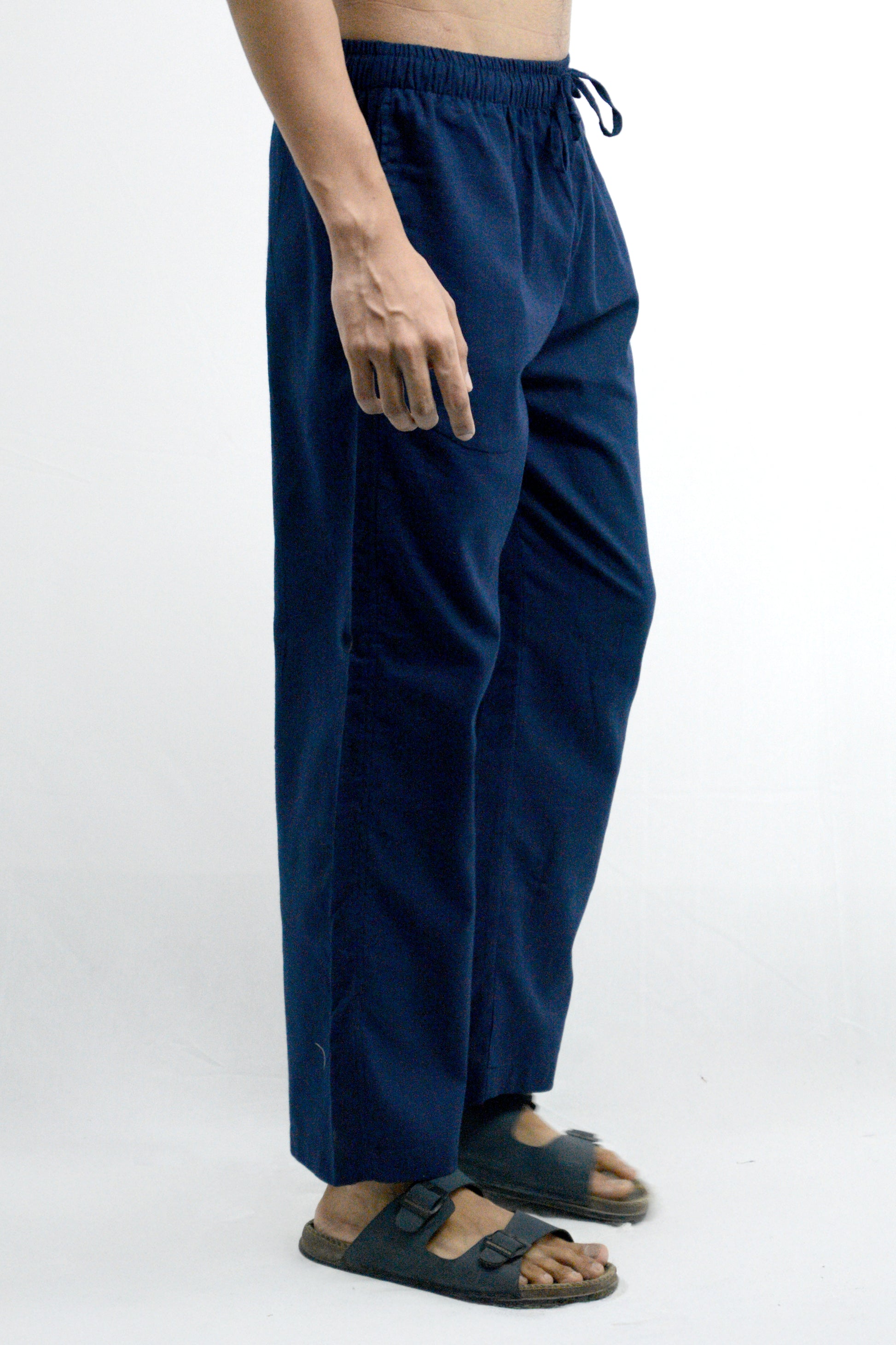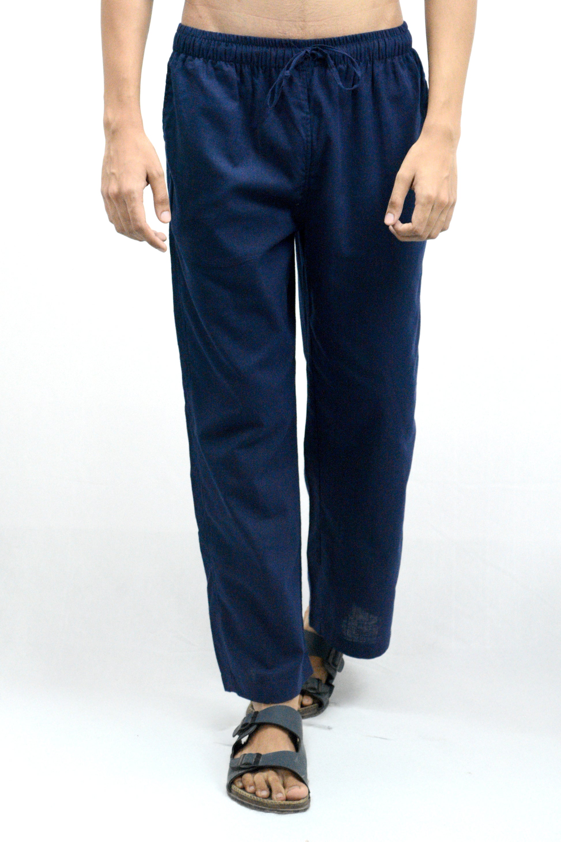 Men's Cotton Linen Navy Blue Losse - Fit Pyjama