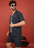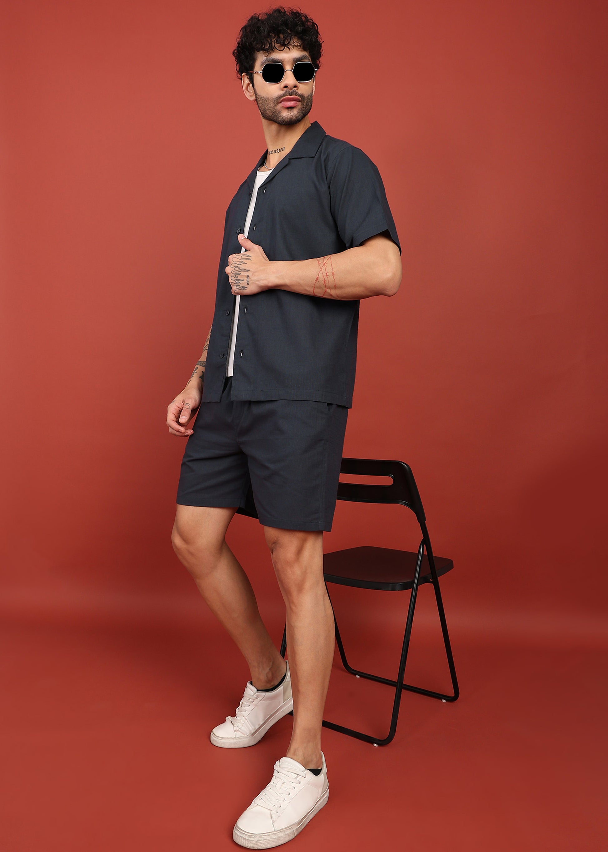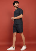 Minimal, sharp, and effortlessly stylish — the Midnight Black Cuban Collar Co-Ord Set is designed for modern men who prefer clean silhouettes. Featuring a relaxed Cuban collar shirt paired with matching tailored shorts, this set delivers comfort with a refined edge. Crafted from lightweight, breathable fabric, it’s ideal for summer days, evening outings, vacations, and casual gatherings.