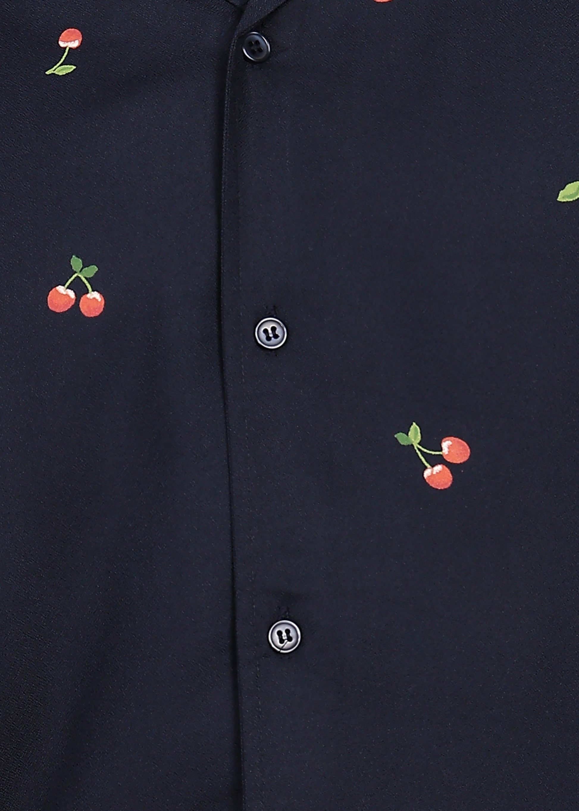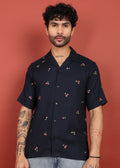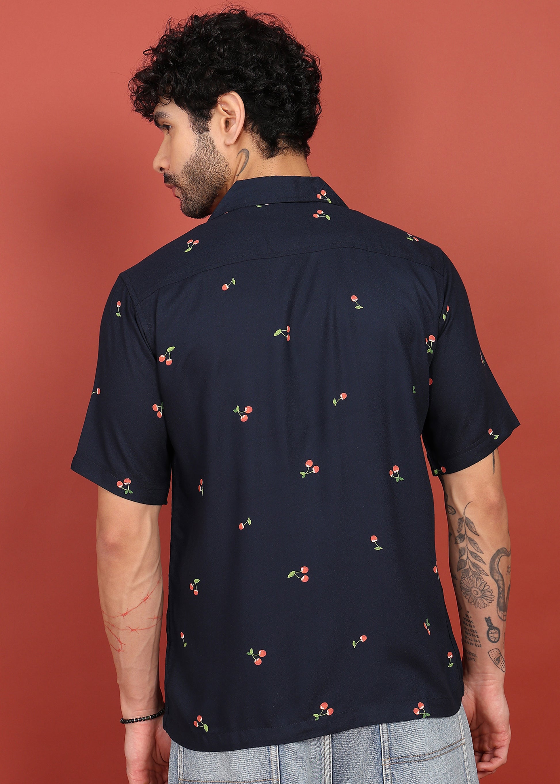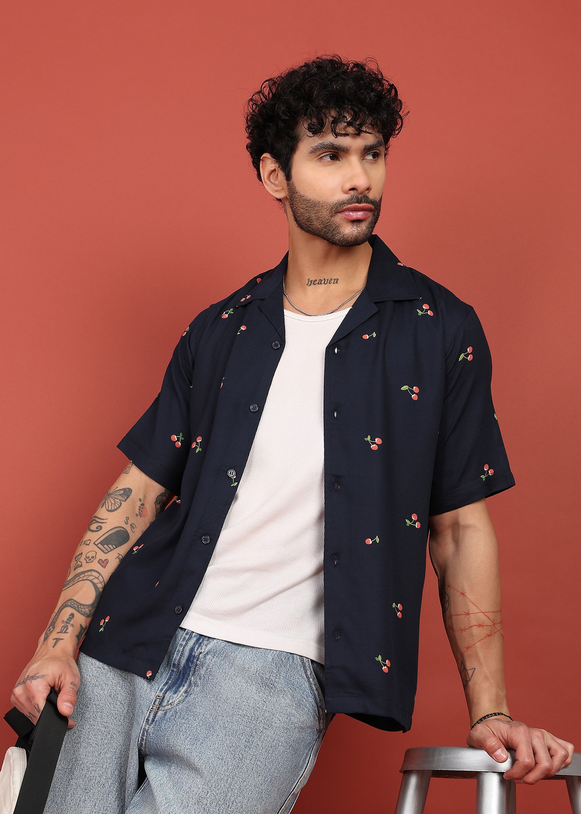 Make a bold yet refined statement with the Midnight Cherry Printed Cuban Collar Shirt. Designed on a deep navy base with subtle cherry motifs, this shirt brings a playful edge to classic summer styling. The Cuban collar adds a relaxed resort vibe, while the lightweight, breathable fabric ensures all-day comfort.