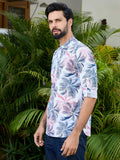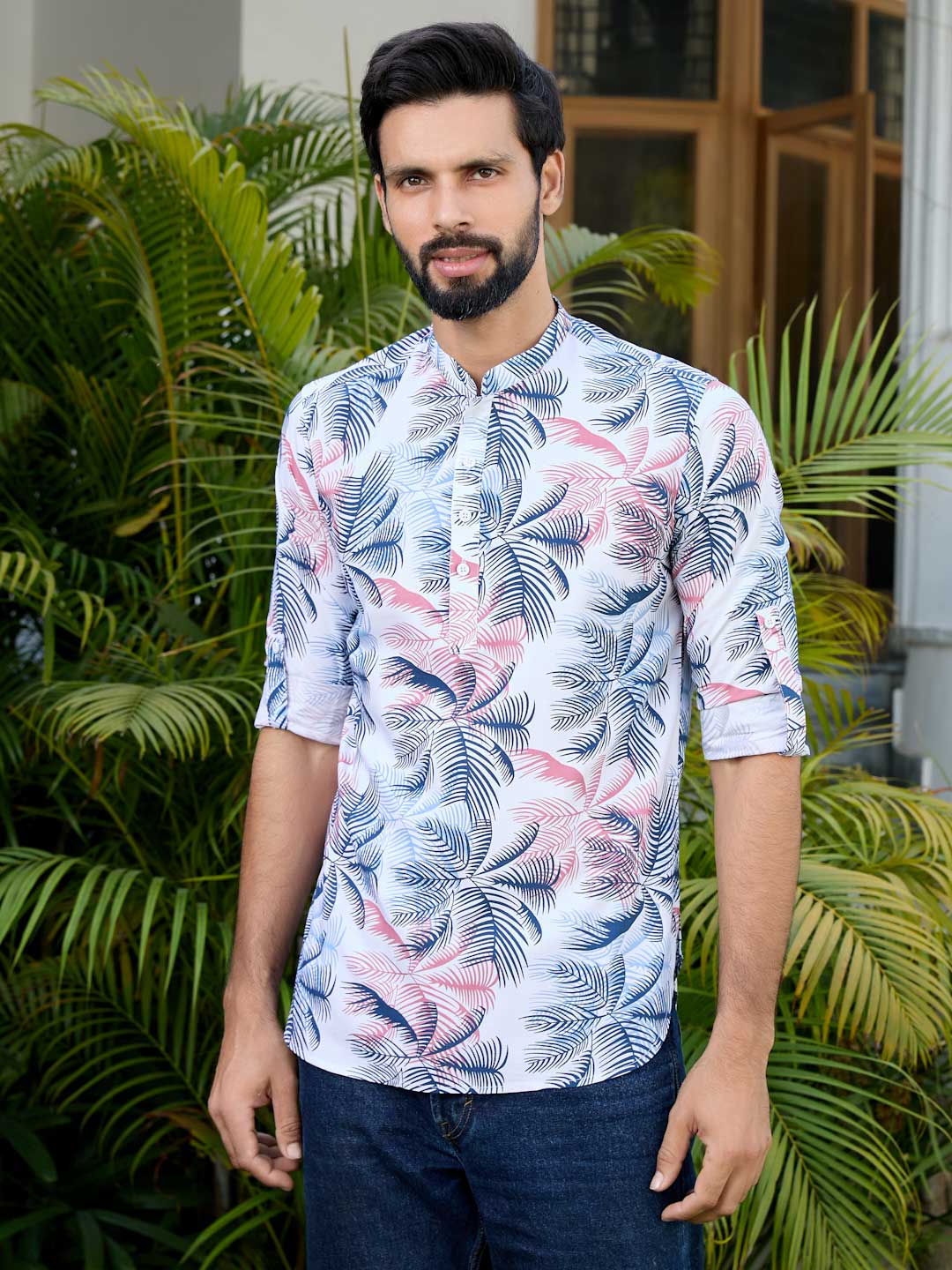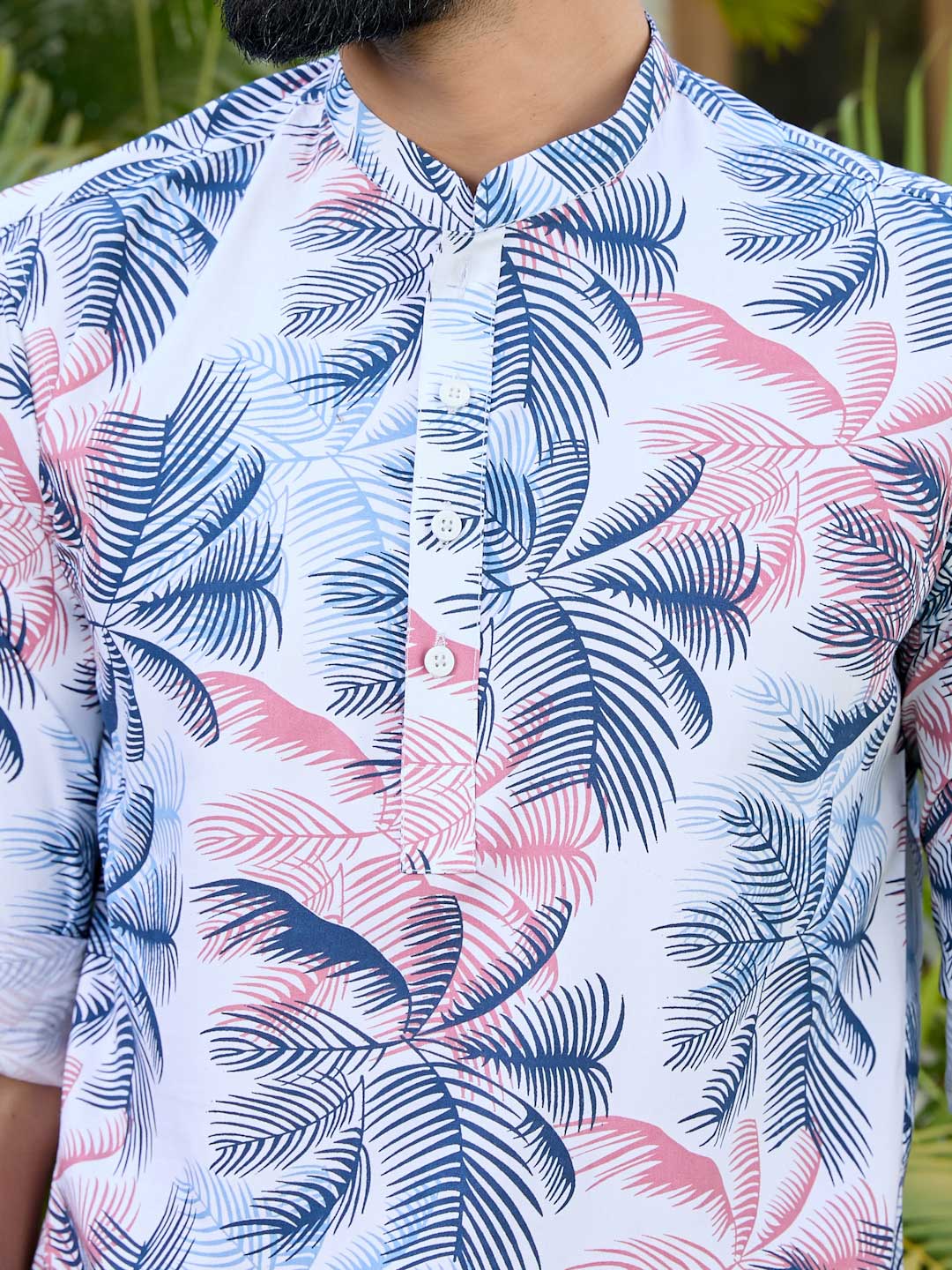 Navy Tropical Printed Rayon Short Kurta